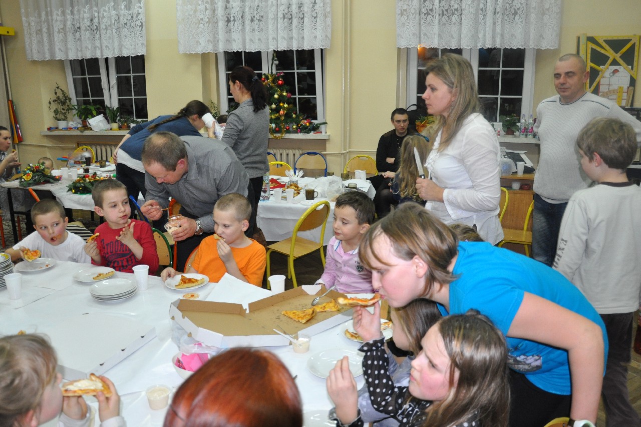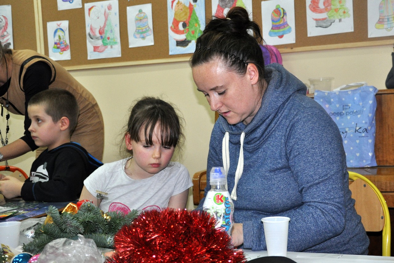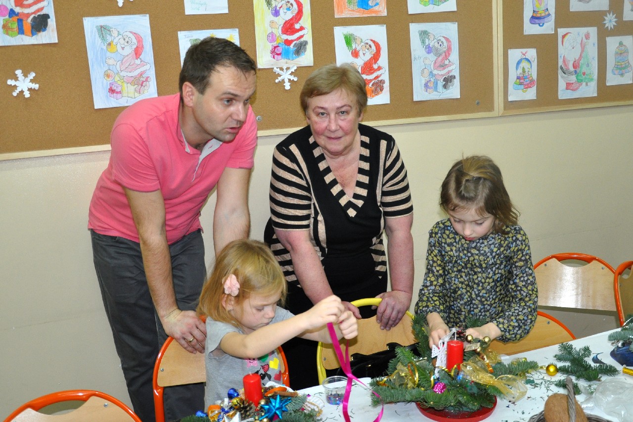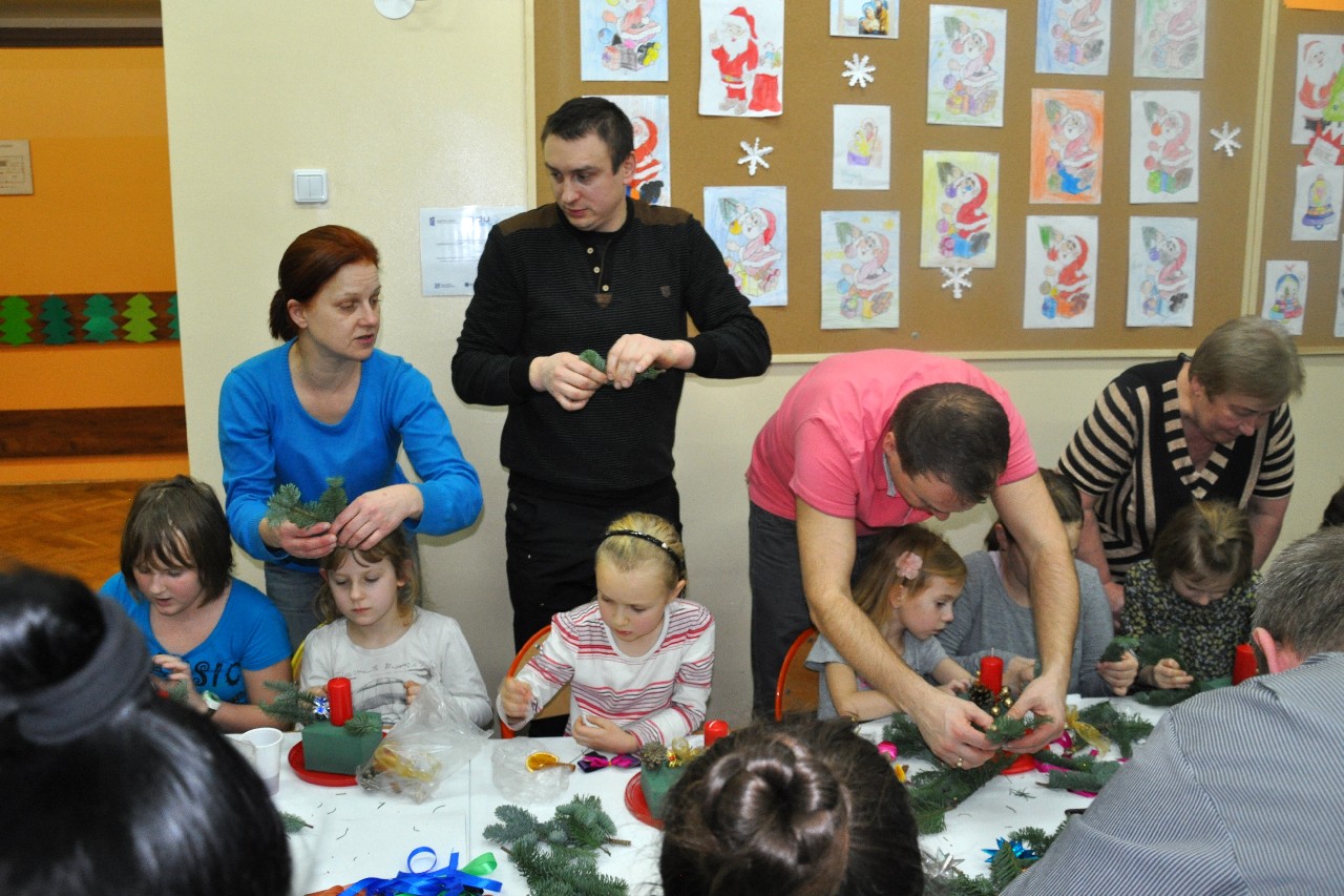 Dzieci wspólnie z rodzicami wykonały śliczne, pachnące stroiki, które potem przystrajały świąteczne stoły. Ozdabiały też lukrem pachnące pierniczki, malowały rajskie ptaki na choinkę. Wspólna praca dostarczyła wszystkim mnóstwo radości i zabawy; świetnie bawili się i „duzi i mali”. Tego wieczoru po raz pierwszy mieliśmy przyjemność posłuchać kolęd w wykonaniu ucznia Witka Sobczaka, który pięknie grał na keyboardzie. Spotkanie upłynęło w radosnej i przyjemnej atmosferze. Dziękujemy wszystkim rodzicom, którzy przyczynili się do tego, aby ten wieczór był magiczny i wyjątkowy… dziękujemy za Państwa obecność.