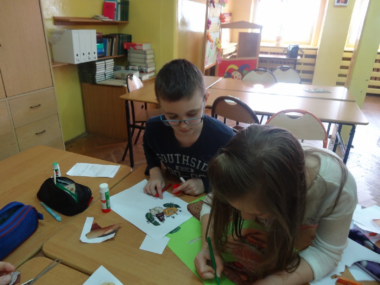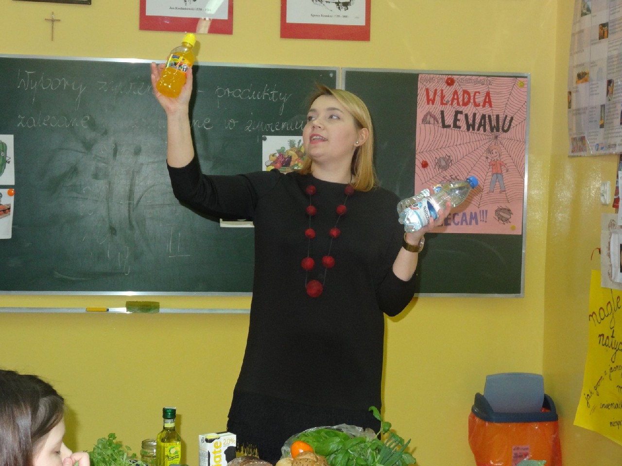 Na początku zajęć pani zadała nam mnóstwo pytań na temat składników pokarmowych. Oczywiście na każde z nich staraliśmy się odpowiedzieć jak najlepiej. Dietetyczka była mile zaskoczona naszą znaczną wiedzą dotyczącą odżywiania. Następnie prowadząca rozdała nam krótką ankietę, dotyczącą naszych nawyków żywieniowych. Zawierała ona pytania typu: Jakie jest twoje ulubione śniadanie? Co najczęściej pijesz? Później podzieleni zostaliśmy na cztery grupy o nazwach: sole mineralne, cukry, tłuszcze i białka. Zadaniem każdego zespołu było wybranie pożywienia, w którym zawarta jest największa ilość składnika pokarmowego znajdującego się w nazwie jego grupy. Ćwiczenie to okazało się świetną zabawą i nauką. W dalszej części spotkania dowiedzieliśmy się, jaka jest różnica w zawartości cukru pomiędzy zdrowymi, naturalnymi płatkami a ich niezdrowymi , sztucznymi odpowiednikami. Okazało się, że rozbieżność jest bardzo duża. Wszyscy również bardzo się zdziwili, gdy okazało się, że jeden baton zawiera dziesięć łyżeczek cukru. Podobna sytuacja miała miejsce, kiedy zaczęliśmy porównywać trzy różne jogurty. Następnie – po krótkiej przerwie – pani dietetyk rozdała nam kartki, pisaki i inne materiały, za pomocą których tworzyliśmy plakaty na temat: Zachęć swoich kolegów do zdrowego odżywiania. Po wykonaniu zadania każdy zespół zaprezentował swoją pracę. Plakaty były różnorodne, ale spełniały swoją rolę i w sugestywny sposób nakłaniały do prawidłowego odżywiania. Potem przyszedł czas na zadawanie pytań, na które prowadząca spotkanie odpowiadała bardzo precyzyjnie. Na zakończenie otrzymaliśmy zadanie domowe –mieliśmy rozwiązać quiz podsumowujący naszą wiedzę. Na pożegnanie każdy uczeń otrzymał zdrowe, soczyste i pachnące jabłko.