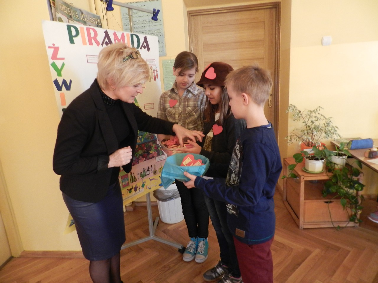 WALENTYNKI przypadają 14 lutego, w naszej szkole obchodziliśmy je 13 lutego w piątek. Samorząd szkolny wymyślił na ten dzień różne atrakcje. Przygotowali oni ponad sto czerwonych serc z napisem” WALENTYNKI 2015”.Uczniowie klasy V d rozdawali je nauczycielom i uczniom. Zorganizowali też podczas przerw dyskotekę. Odbywała się ona na korytarzu, wszyscy się świetnie bawili. Przedstawiciele samorządu i uczniowie przynieśli do szkoły upieczone ciastka w kształcie serc. Częstowali nimi kadrę nauczycielską i siebie nawzajem. Prawie wszyscy uczestnicy WALENTYNEK mieli przypięte do ubrania czerwone serca. Atmosfera tego dnia była wspaniała, było dużo śmiechu i radości. Był to SUPER dzień.