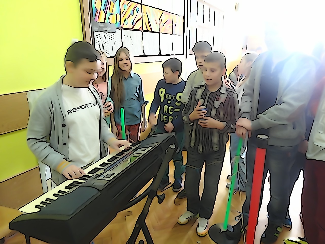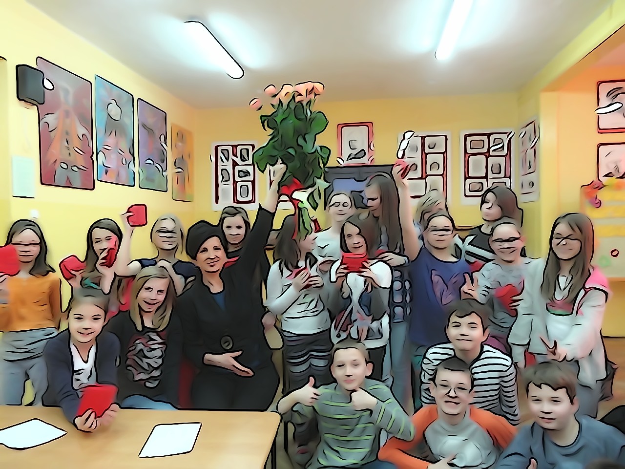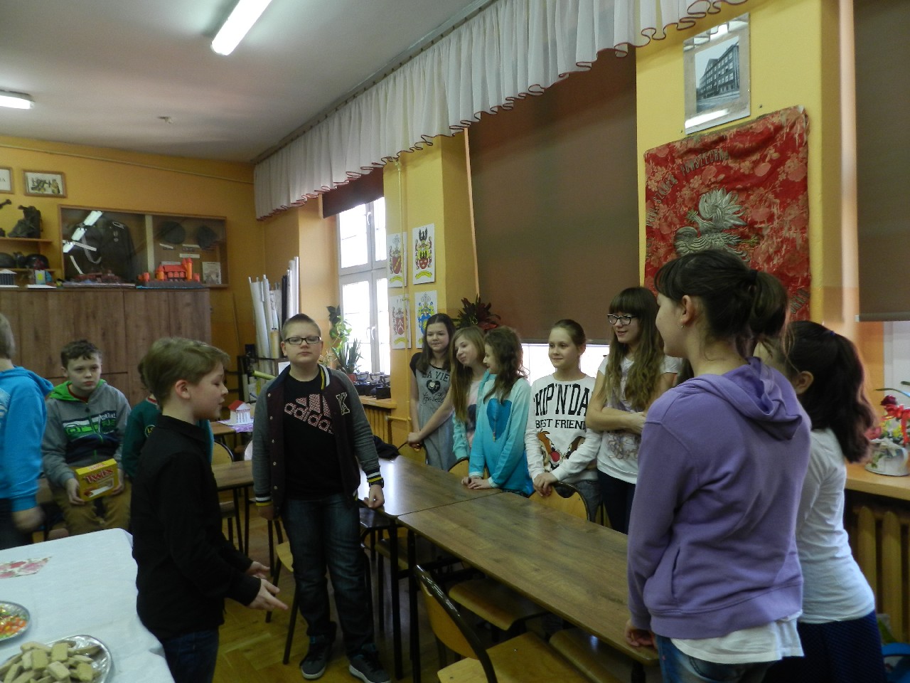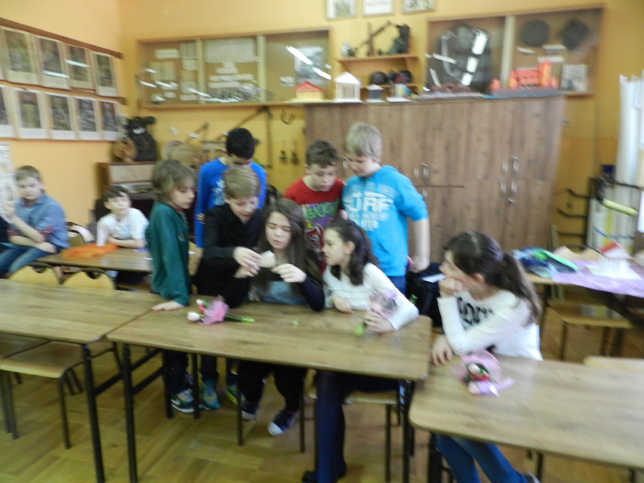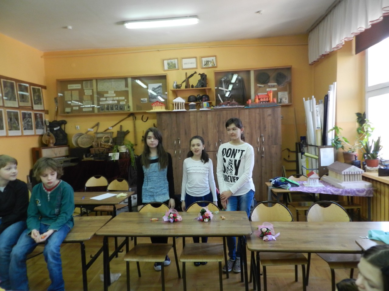 W poniedziałek 9 marca 2015 roku SU w naszej szkole zorganizował obchody Dnia Kobiet święta pań i dziewczynek. Na przerwach chłopcy z klasy 5e Aleks Walczykowski i Kacper Latuszewski zorganizowali koncert żywej muzyki. Również inni koledzy mogli złożyć życzenia lub napisać pozdrowienia na dużej laurce. Dziewczynkom bardzo się podobało czuły się w tym dniu wyróżnione i docenione.