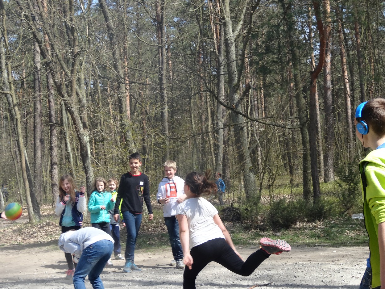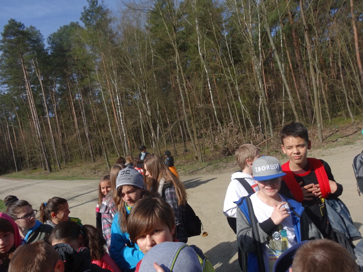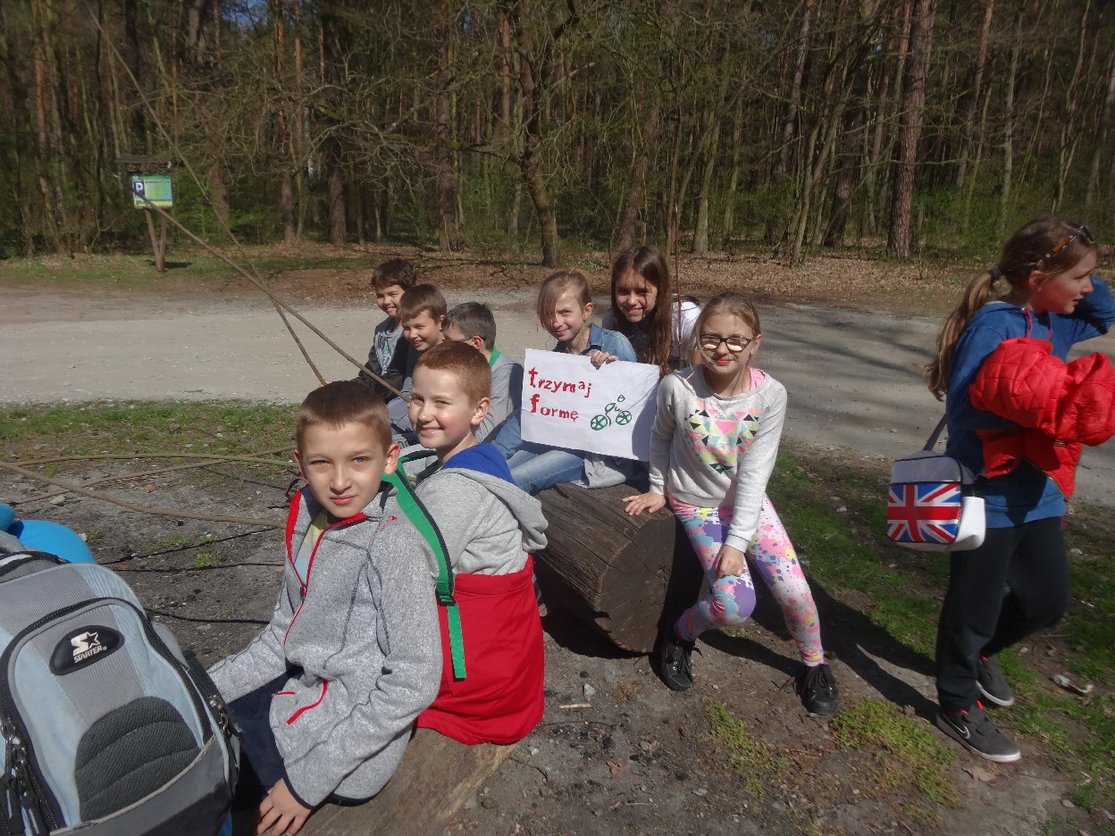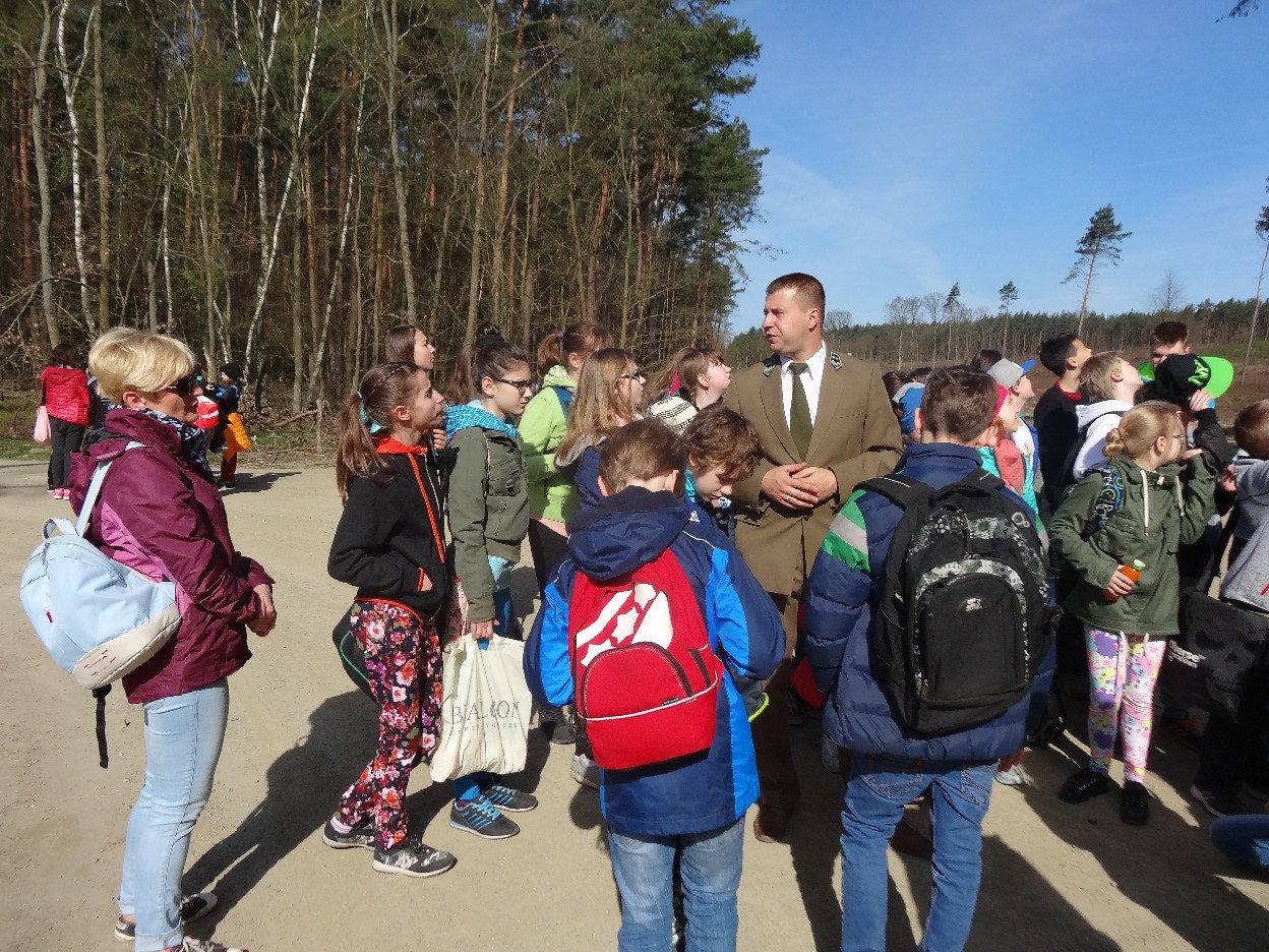 Wszyscy zebraliśmy się w szkole o godzinie 8:20, a dziesięć minut później wyruszyliśmy. Pogoda nam sprzyjała. Słońce świeciło, ale nie było zbyt gorąco. Dotarliśmy do lasu i odbyliśmy spacer po nim. Zadzieraliśmy w górę głowy, aby ujrzeć korony drzew. Z zaciekawieniem słuchaliśmy pana leśnika. Dowiedzieliśmy się, że ta duże rośliny doskonale chronią przed wiatrem. Samica sarny to koza, jelenia – łania. Obserwowaliśmy ptaki, przypatrywaliśmy się sadzonkom. Teraz wiemy co jest najlepszym lekarstwem na chore gardło. Po długim marszu dotarliśmy na polanę. Tam, w specjalnie przygotowanym miejscu odbyło się ognisko. Każdy upiekł kiełbaski, niektórzy nawet chleb czy bułki. Mieliśmy też czas na porozmawianie ze sobą, gry i zabawę. Około godziny 12:00 wyruszyliśmy z powrotem do szkoły. Zaszliśmy tam o 12:25. Po takim dniu w lesie każdy czuł się lepiej.