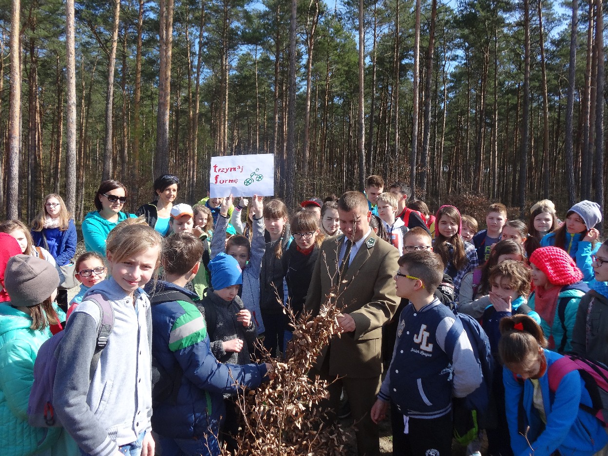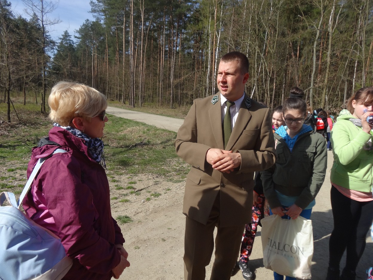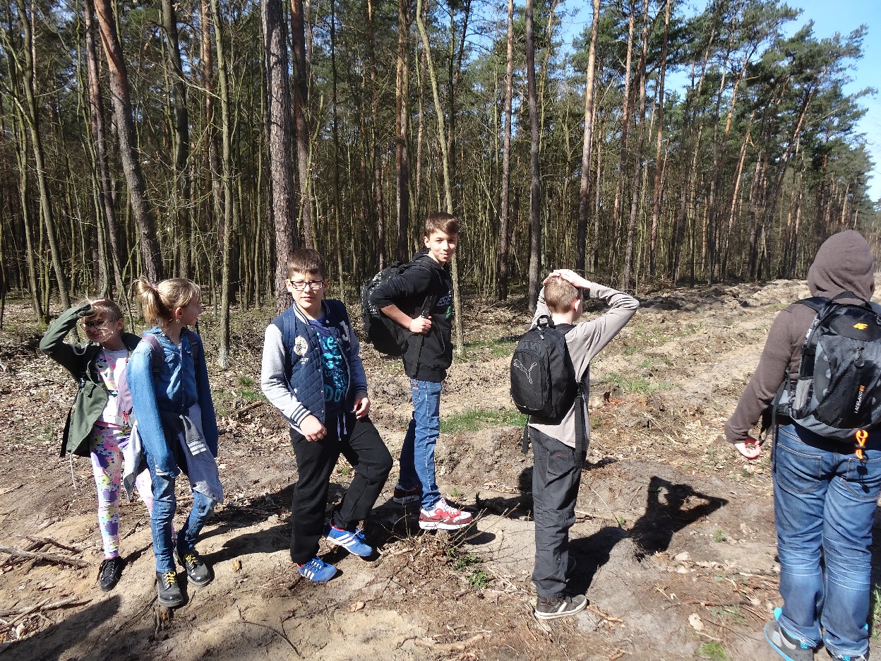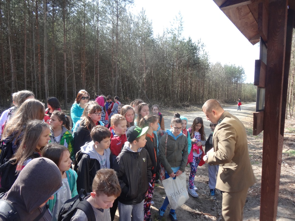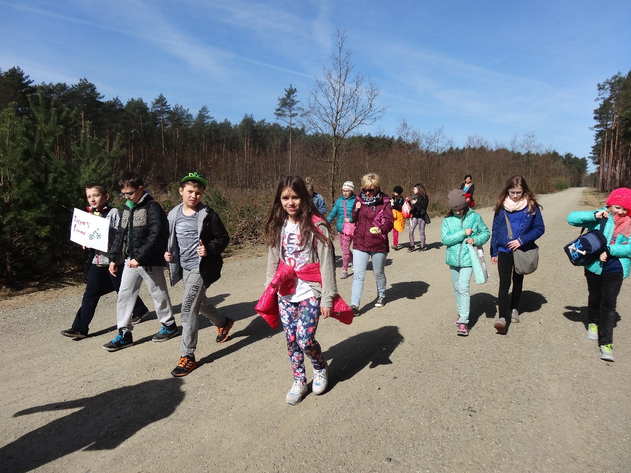 Wszyscy zebraliśmy się w szkole o godzinie 8:20, a dziesięć minut później wyruszyliśmy. Pogoda nam sprzyjała. Słońce świeciło, ale nie było zbyt gorąco. Dotarliśmy do lasu i odbyliśmy spacer po nim. Zadzieraliśmy w górę głowy, aby ujrzeć korony drzew. Z zaciekawieniem słuchaliśmy pana leśnika. Dowiedzieliśmy się, że ta duże rośliny doskonale chronią przed wiatrem. Samica sarny to koza, jelenia – łania. Obserwowaliśmy ptaki, przypatrywaliśmy się sadzonkom. Teraz wiemy co jest najlepszym lekarstwem na chore gardło. Po długim marszu dotarliśmy na polanę. Tam, w specjalnie przygotowanym miejscu odbyło się ognisko. Każdy upiekł kiełbaski, niektórzy nawet chleb czy bułki. Mieliśmy też czas na porozmawianie ze sobą, gry i zabawę. Około godziny 12:00 wyruszyliśmy z powrotem do szkoły. Zaszliśmy tam o 12:25. Po takim dniu w lesie każdy czuł się lepiej.