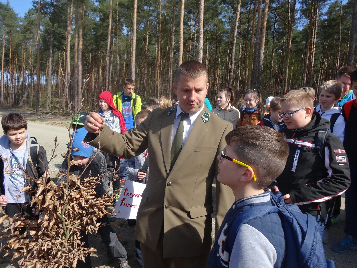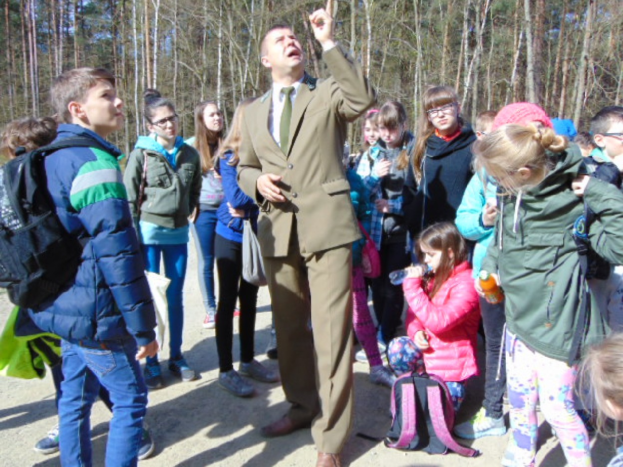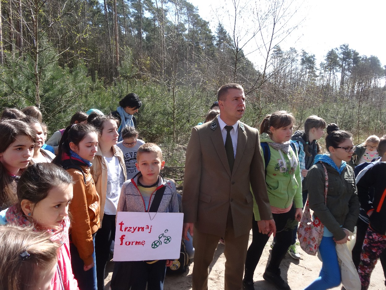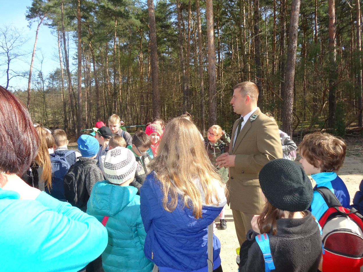Wszyscy zebraliśmy się w szkole o godzinie 8:20, a dziesięć minut później wyruszyliśmy. Pogoda nam sprzyjała. Słońce świeciło, ale nie było zbyt gorąco. Dotarliśmy do lasu i odbyliśmy spacer po nim. Zadzieraliśmy w górę głowy, aby ujrzeć korony drzew. Z zaciekawieniem słuchaliśmy pana leśnika. Dowiedzieliśmy się, że ta duże rośliny doskonale chronią przed wiatrem. Samica sarny to koza, jelenia – łania. Obserwowaliśmy ptaki, przypatrywaliśmy się sadzonkom. Teraz wiemy co jest najlepszym lekarstwem na chore gardło. Po długim marszu dotarliśmy na polanę. Tam, w specjalnie przygotowanym miejscu odbyło się ognisko. Każdy upiekł kiełbaski, niektórzy nawet chleb czy bułki. Mieliśmy też czas na porozmawianie ze sobą, gry i zabawę. Około godziny 12:00 wyruszyliśmy z powrotem do szkoły. Zaszliśmy tam o 12:25. Po takim dniu w lesie każdy czuł się lepiej.