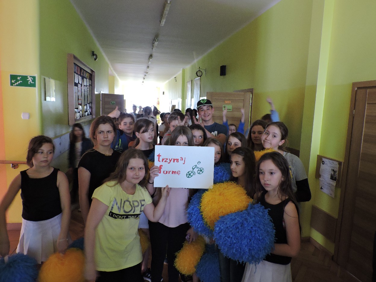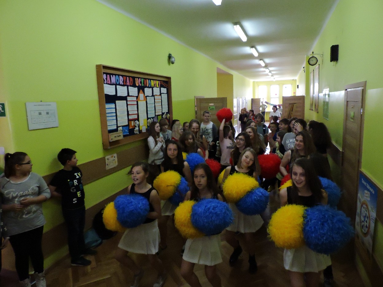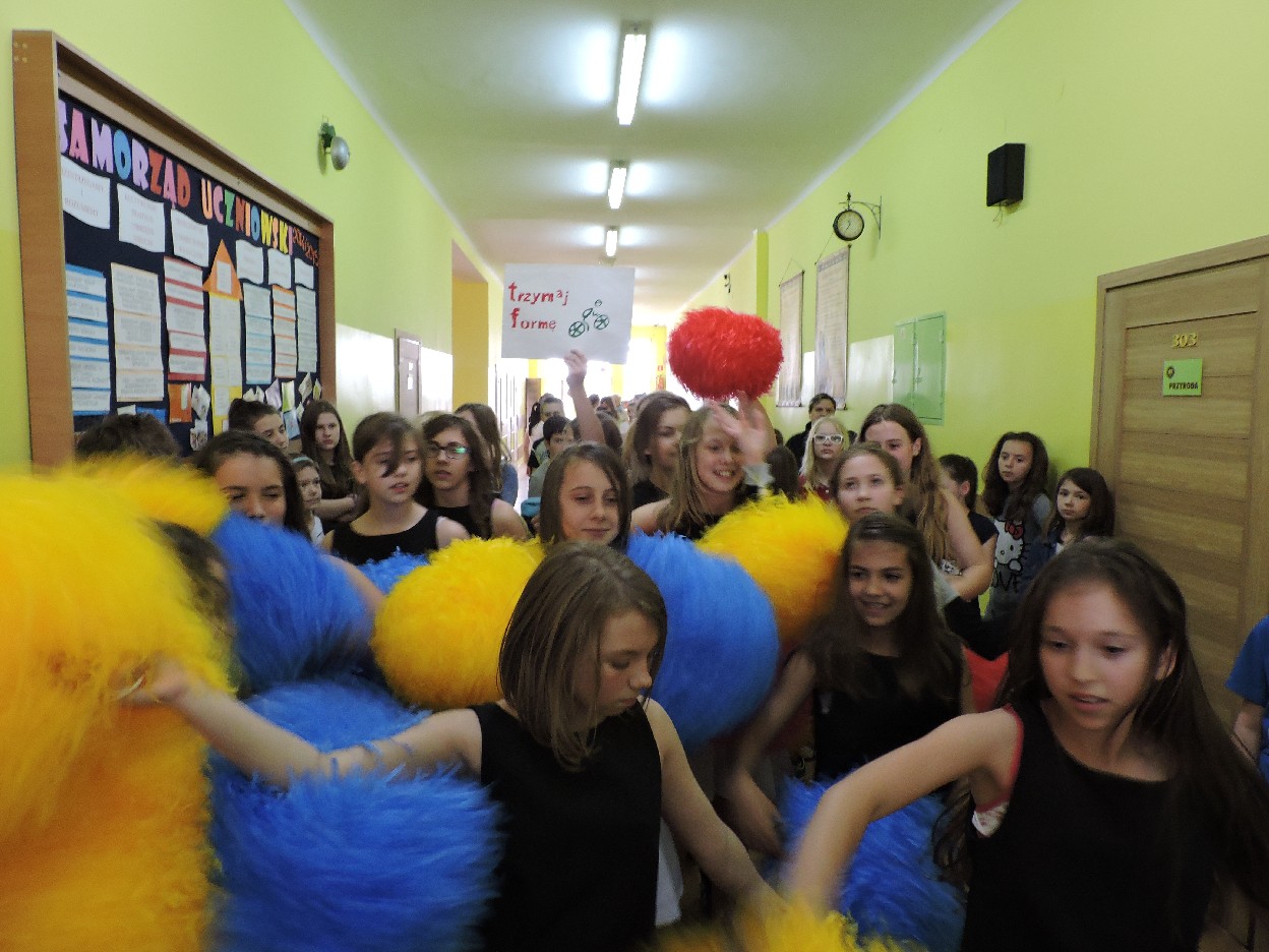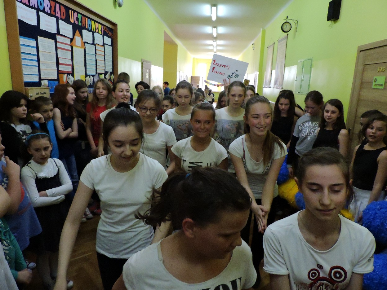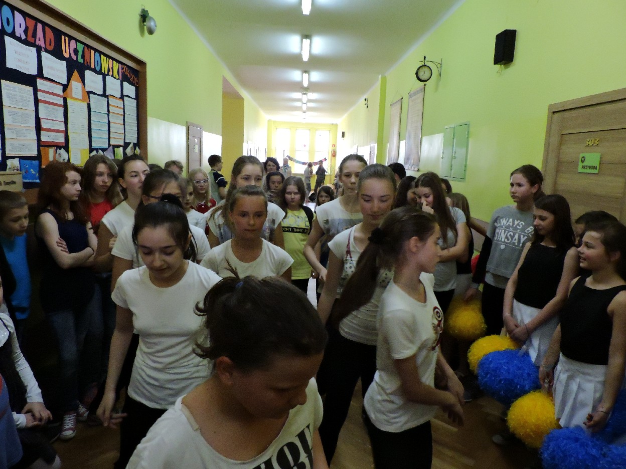 Dnia 29 kwietnia 2015 roku obchodziliśmy „Międzynarodowy Dzień Tańca” ph: „Trzymaj formę tańcząc z nami”. Tego dnia cała szkoła tańczyła podczas przerw lekcyjnych. Klasy 5d i 6c zaprezentowały przygotowane przez siebie układy taneczne, zachęcając innych uczniów do udziału w tanecznej przerwie. Cała szkoła bawiła się i tańczyła w rytm muzyki z przyjemnością i dużym humorem.