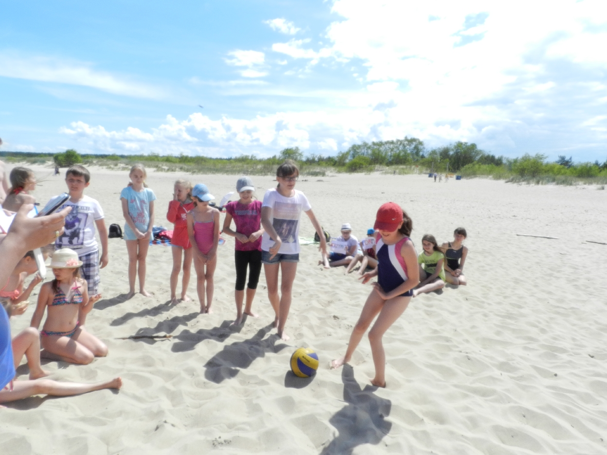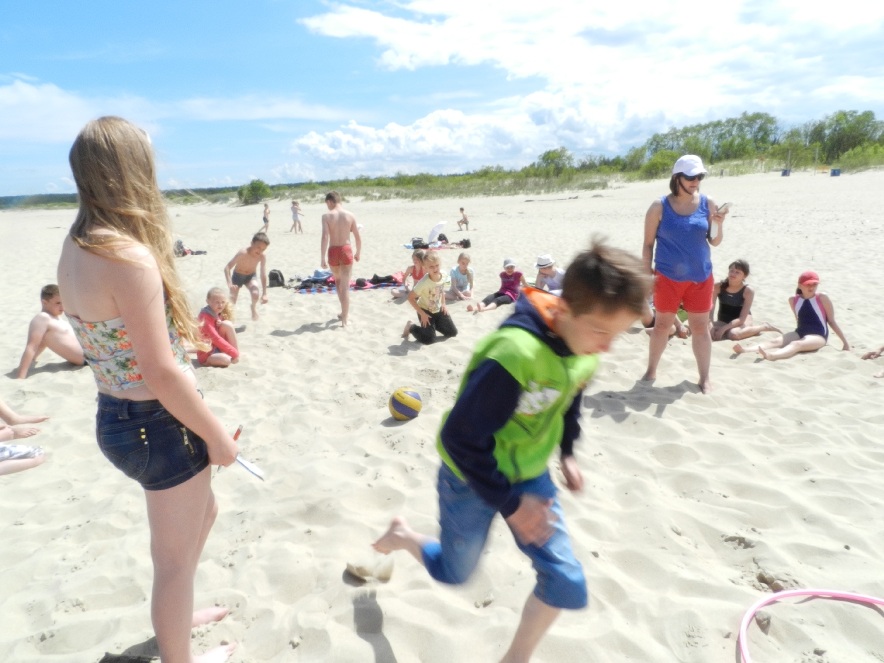 W środę tuż po śniadaniu, które zjedliśmy ze smakiem, ruszyliśmy na plażę i byliśmy tam do godziny 16:00. Czytaliśmy książki, rozwiązywaliśmy quizy o piłce siatkowej, braliśmy udział w zawodach sprawnościowych. Po posiłku spędzaliśmy czas na świeżym powietrzu grając w gumę i bawiąc się z kolegami oraz koleżankami.