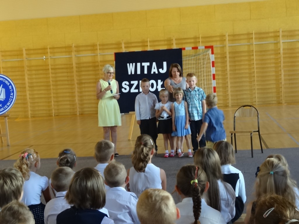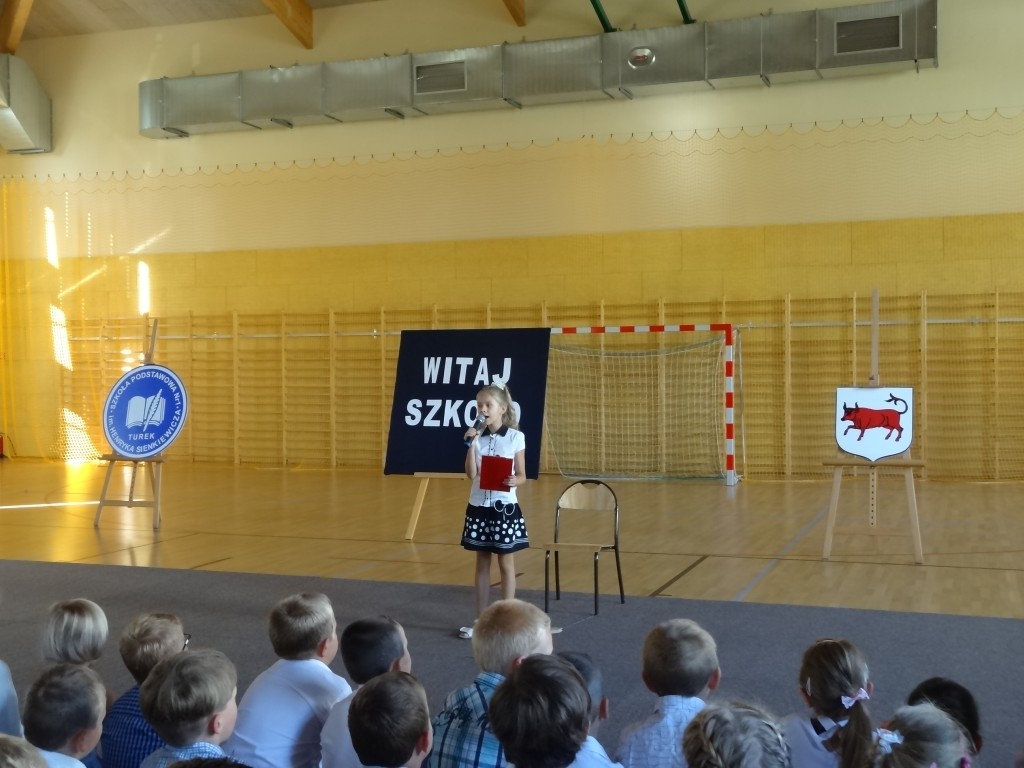 Uczniowie Szkoły Podstawowej nr 1 po raz pierwszy wszyscy razem witali nowy rok szkolny w przestronnej sali sportowej. Po ciepłym przywitaniu przez p. Dyrektor Elżbietę Pokojową życzenia do Uczniów, Nauczycieli i Rodziców skierował również Burmistrz Miasta Turku Romuald Antosik oraz przewodniczący Rady Rodziców p. Tomasz Misiak. Ważnym momentem uroczystości rozpoczęcia roku szkolnego było uczczenie 76. rocznicy wybuchu II wojny światowej. Uczniowie doniosłym występem uczcili pamięć o tym ważnym wydarzeniu. Dopełnieniem było złożenie kwiatów i oddanie hołdu poległym za Ojczyznę przez poczet sztandarowy, przedstawicieli grona pedagogicznego oraz uczniów przed pomnikiem „Nigdy Więcej Wojny”.