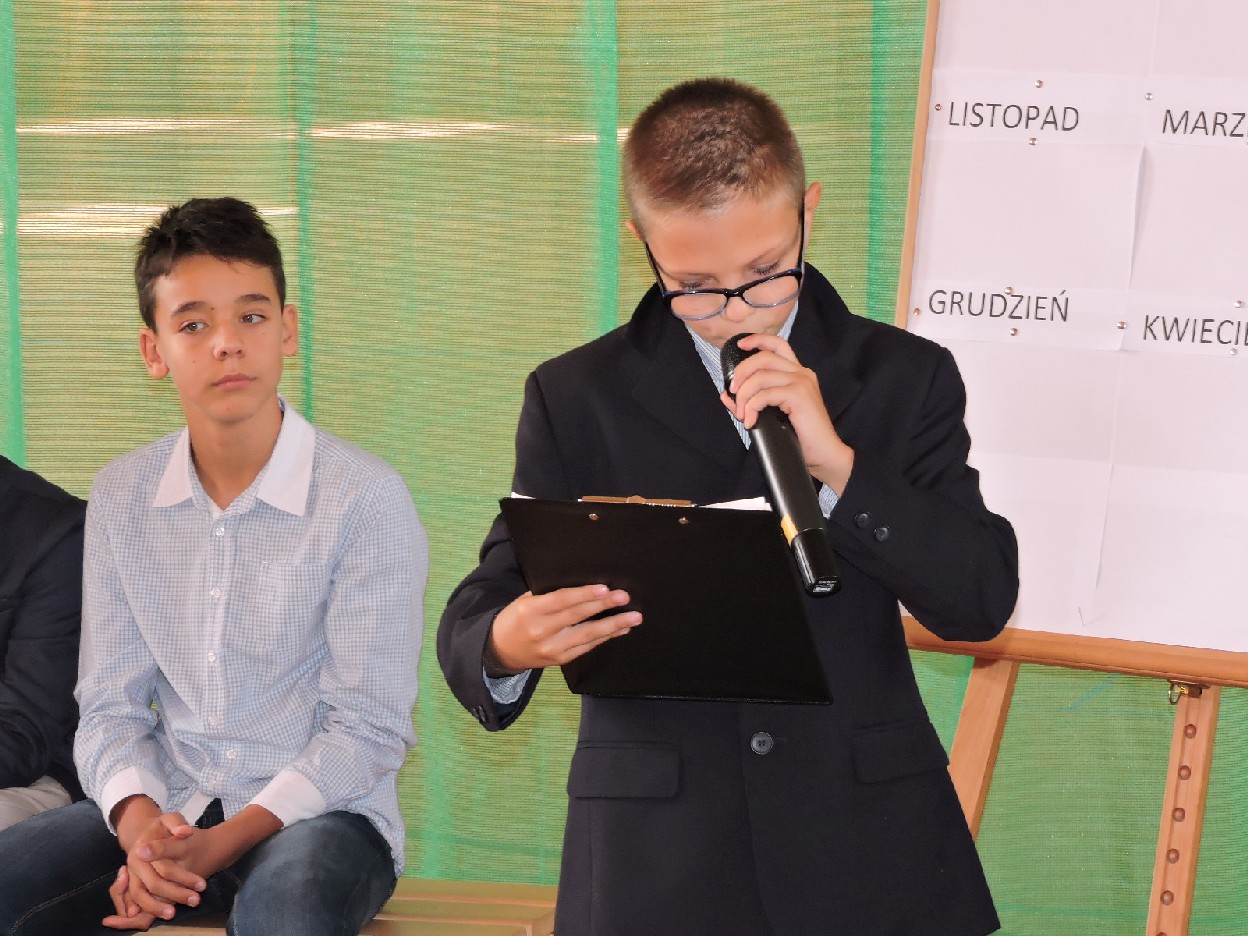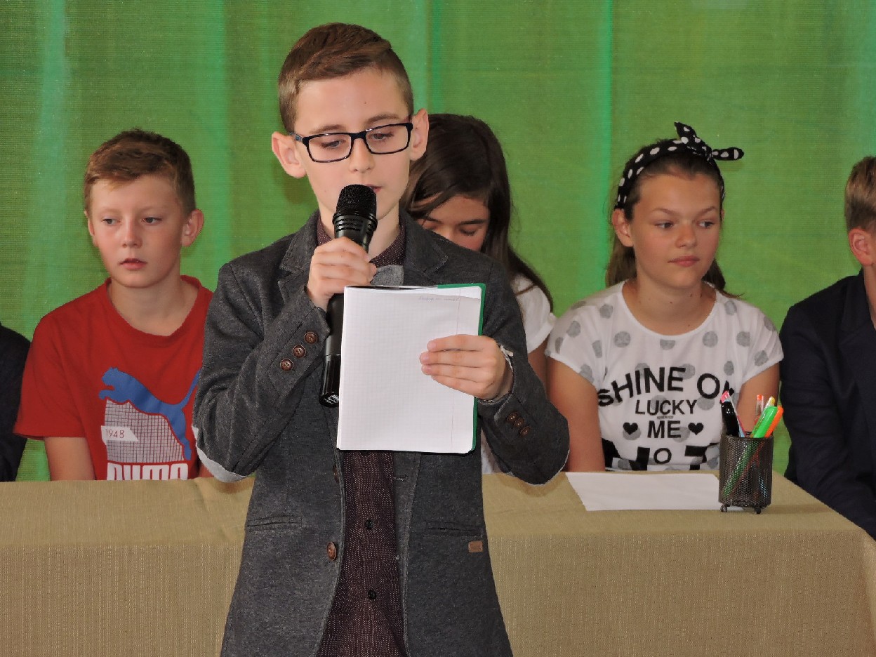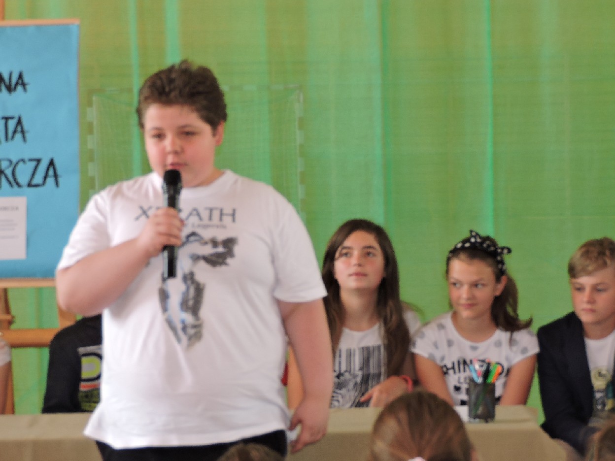O godzinie 11:40 kandydaci, uczniowie, z niektórych klas oraz nauczyciele zebrali się w sali gimnastycznej. Na początku spotkania głos zabrali przedstawiciele klasy 6e, którzy w krótkim przemówieniu przedstawili nam zasady i przybliżyli przebieg dzisiejszej debaty. Później osoby ubiegające się o dostanie do Samorządu Uczniowskiego po kolei, według ściśle określonej kolejności przedstawiali swoje pomysły i plany na to, jakie zmiany chcieliby wprowadzić w naszej szkole, aby nauka w niej była dla nas samą przyjemnością, a czas spędzony w jej murach łączył się również z zabawą. Najczęściej podawanymi propozycjami były : więcej dyskotek, przerw muzycznych, lekcji na świeżym powietrzu, wycieczek oraz ponownego otwarcia sklepiku szkolnego. Wszystkie pomysły były bardzo ciekawe i warte naszej uwagi. Następnie kandydaci zapisywali w kalendarzu, pod miesiącem propozycje zmian, które mieli za zadanie wymyśleć podczas debaty, przypisując im w ten sposób datę, z którą chcieliby je zrealizować. Wiele pomysłów było bardzo zaskakujących, a zrazem interesujących. Na koniec uczniowie przysłuchujący się prezentacjom kandydatów mogli osobiście skierować do nich swoje pytania. Najczęściej pytano o to, w jaki sposób zostaną wprowadzone w życie proponowane koncepcje. Po skończonej debacie wróciliśmy do swoich klas na lekcje.