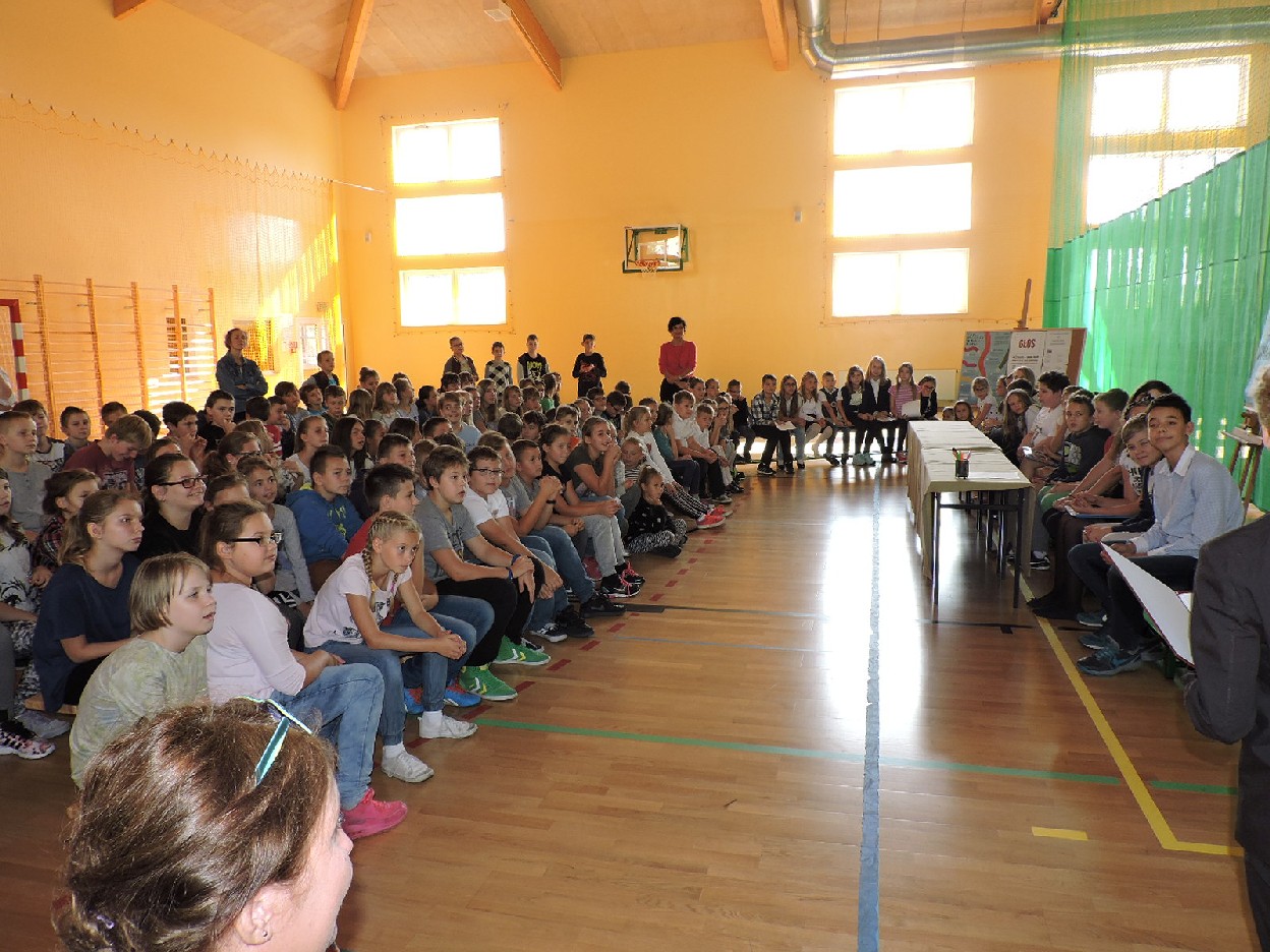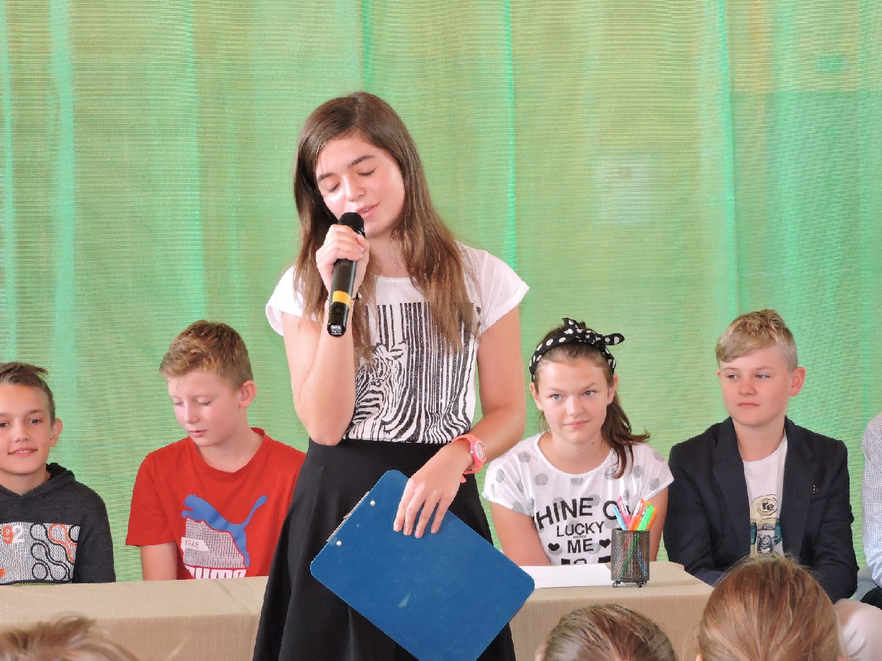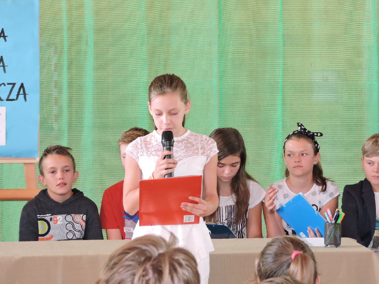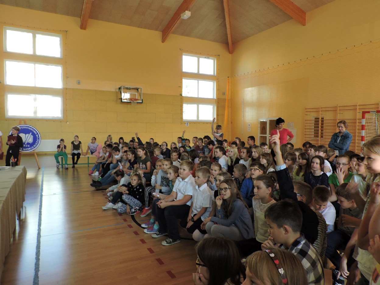 O godzinie 11:40 kandydaci, uczniowie, z niektórych klas oraz nauczyciele zebrali się w sali gimnastycznej. Na początku spotkania głos zabrali przedstawiciele klasy 6e, którzy w krótkim przemówieniu przedstawili nam zasady i przybliżyli przebieg dzisiejszej debaty. Później osoby ubiegające się o dostanie do Samorządu Uczniowskiego po kolei, według ściśle określonej kolejności przedstawiali swoje pomysły i plany na to, jakie zmiany chcieliby wprowadzić w naszej szkole, aby nauka w niej była dla nas samą przyjemnością, a czas spędzony w jej murach łączył się również z zabawą. Najczęściej podawanymi propozycjami były : więcej dyskotek, przerw muzycznych, lekcji na świeżym powietrzu, wycieczek oraz ponownego otwarcia sklepiku szkolnego. Wszystkie pomysły były bardzo ciekawe i warte naszej uwagi. Następnie kandydaci zapisywali w kalendarzu, pod miesiącem propozycje zmian, które mieli za zadanie wymyśleć podczas debaty, przypisując im w ten sposób datę, z którą chcieliby je zrealizować. Wiele pomysłów było bardzo zaskakujących, a zrazem interesujących. Na koniec uczniowie przysłuchujący się prezentacjom kandydatów mogli osobiście skierować do nich swoje pytania. Najczęściej pytano o to, w jaki sposób zostaną wprowadzone w życie proponowane koncepcje. Po skończonej debacie wróciliśmy do swoich klas na lekcje.