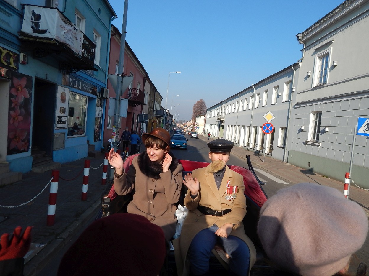 Korzystają z uprzejmości p. Marcina Klinkiewicza – właściciela stadniny wybrali się bryczką na przejażdżkę po naszym mieście. Marszałek i jego rodzina pozdrawiali mieszkańców Turku z okazji 97 rocznicy odzyskania niepodległości przez Polskę. Rozdawali okolicznościowe pocztówki z podobizną Marszałka, życząc radosnego przeżywania święta.