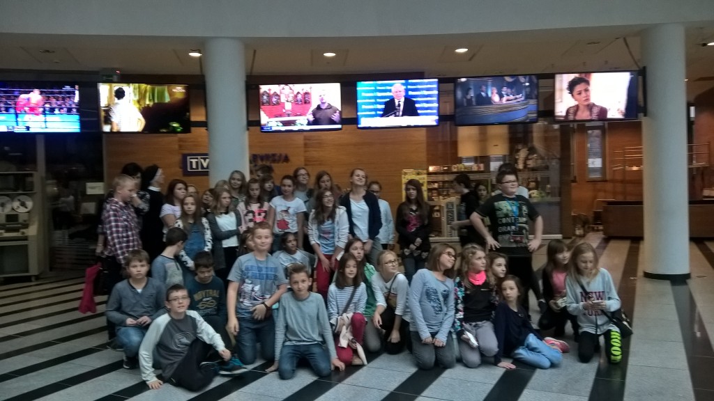 O godzinie 5:45 zebraliśmy się przed naszą szkołą, skąd wyruszyliśmy na wycieczkę o godzinie 6:00. Podczas podróży wszyscy byliśmy podekscytowani tym, co mamy zobaczyć, dlatego bardzo ucieszyliśmy się, kiedy o 10:30 dojechaliśmy na miejsce. Zaparkowaliśmy obok gmachu polskiego parlamentu i wyruszyliśmy na jego zwiedzanie. Gdy weszliśmy do budynku, odłożyliśmy ubrania wierzchnie do szatni i przeszliśmy do sali konferencyjnej, w której politycy udzielają wywiadów. Później mieliśmy okazję usiąść na balkonie w sali obrad. Pan oprowadzający po tej instytucji opowiedział nam całą historię polskiego Sejmu i Senatu. Następnie, w głównym holu, obejrzeliśmy tablice upamiętniające polityków, którzy ponieśli śmierć podczas II wojny światowej i w katastrofie smoleńskiej. Potem zeszliśmy po pięknych marmurowych schodach na dół i zobaczyliśmy makietę całego gmachu. Przewodnik pokazał nam i wytłumaczył, gdzie znajdują się biura, biblioteki i inne pomieszczenia służbowe parlamentarzystów. Później przeszliśmy do sali, w której odbywa zebrania partia mająca największą przewagę w Sejmie. Następnie wyszliśmy z budynku i przemieściliśmy się do Zamku Królewskiego. Zwiedziliśmy w nim komnaty naszych władców, podziwialiśmy piękne obrazy i rzeźby wybitnych artystów. Z zapartym tchem oglądaliśmy salę tronową i balową. Dowiedzieliśmy się wielu ciekawych rzeczy na temat historii warszawskiego zamku. O godzinie 14:00 wyruszyliśmy w drogę do TVP. O 14:30 byliśmy na miejscu i wchodziliśmy do ogromnego budynku. Po zostawieniu kurtek w szatni, przeszliśmy długim korytarzem i znaleźliśmy się w I studio, w którym kręcony jest teleturniej "Jaka to melodia?". Mogliśmy usiąść na miejscach przeznaczonych dla widowni. Przewodnik opowiedział nam, jak wygląda proces kręcenia teleturnieju. Następnie przeszliśmy do II studio, w którym zobaczyliśmy przygotowania do kręcenia programu "Świat się kręci". Usłyszeliśmy próbę zespołu, który akurat miał wystąpić gościnnie. Pan pokazał, jak są ustawione kamery i zaprowadził nas do reżyserki , gdzie wytłumaczył nam, do czego służą poszczególne sprzęty. W III studio mieliśmy okazję obejrzeć nową aranżację, w jakiej jest kręcony program "Pytanie na śniadanie". Ku naszemu zaskoczeniu okazało się, że niektóre elementy choreografii są zdjęciami, a nie prawdziwymi przedmiotami. Kolejną atrakcją, którą zwiedzaliśmy, było pomieszczenie zwane akwarium, którego wszystkie ściany wykonane są ze szkła. Następnie udaliśmy się do muzeum filmu, gdzie dowiedzieliśmy się, jak wyglądały kiedyś kamery, telewizory oraz poznaliśmy tytuł pierwszej nakręconej, polskiej bajki - "Jacek i Agatka". Ostatnim punktem wycieczki był pyszny obiad w telewizyjnej restauracji. Zmęczeni, ale pełni wrażeń, około godziny 17:00, wyruszyliśmy w drogę powrotną do domu. W trakcie jazdy zatrzymaliśmy się na krótki postój w McDonaldzie. Na miejsce dotarliśmy o 21:30, gdzie czekali na nas stęsknieni rodzice.