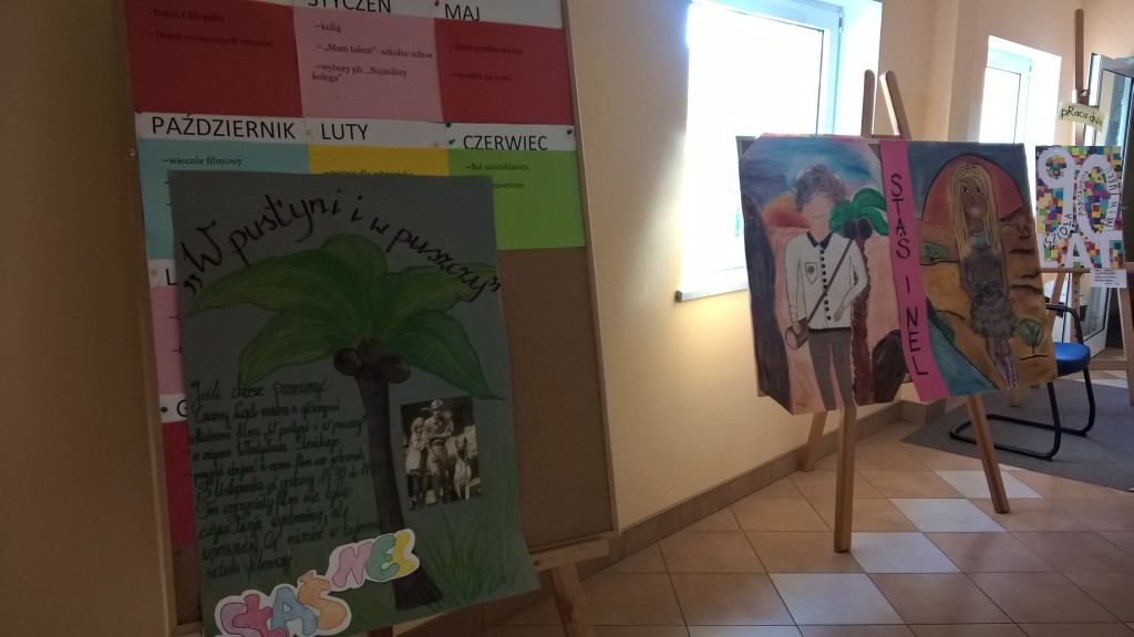 3 listopada w sali sportowej odbył się wieczór filmowy z Patronem. Uczniowie obejrzeli film „W pustyni i w puszczy” w reżyserii Władysława Ślesickiego.