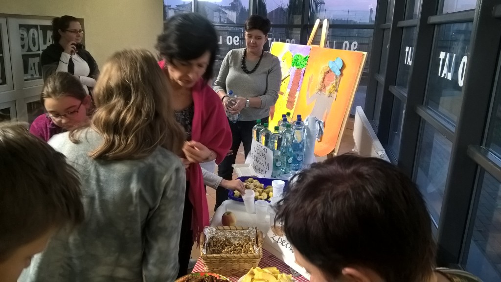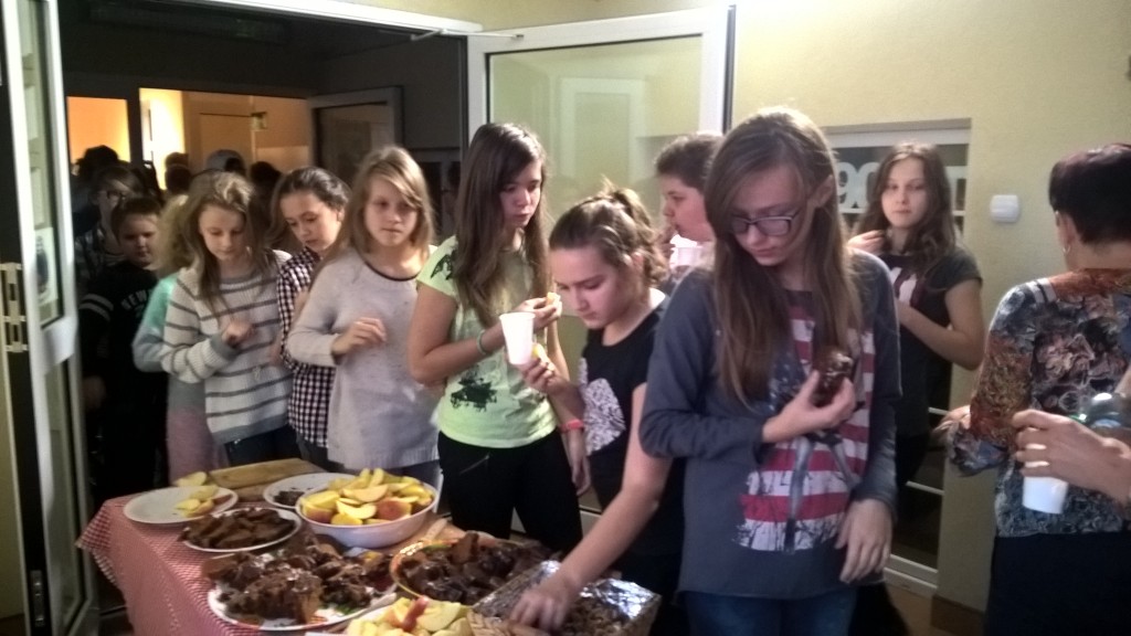 Podczas przerwy wszyscy uczestnicy z apetytem zajadali jabłka, smaczne orzechy i banany, przygotowane przez rodziców.