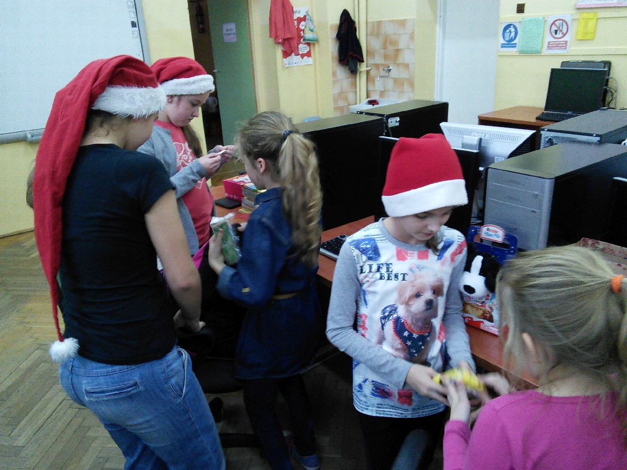 Dnia 3 grudnia w klasie 4b odbyły sie klasowe mikołajki. W mikołajowych czapkach i w radosnym nastroju obdarowaliśmy się upominkami. Nasza koleżanka Klaudia wraz z mamą upiekły pierniczki, które pysznie smakowały i pachniały zbliżającymi się Świętami.