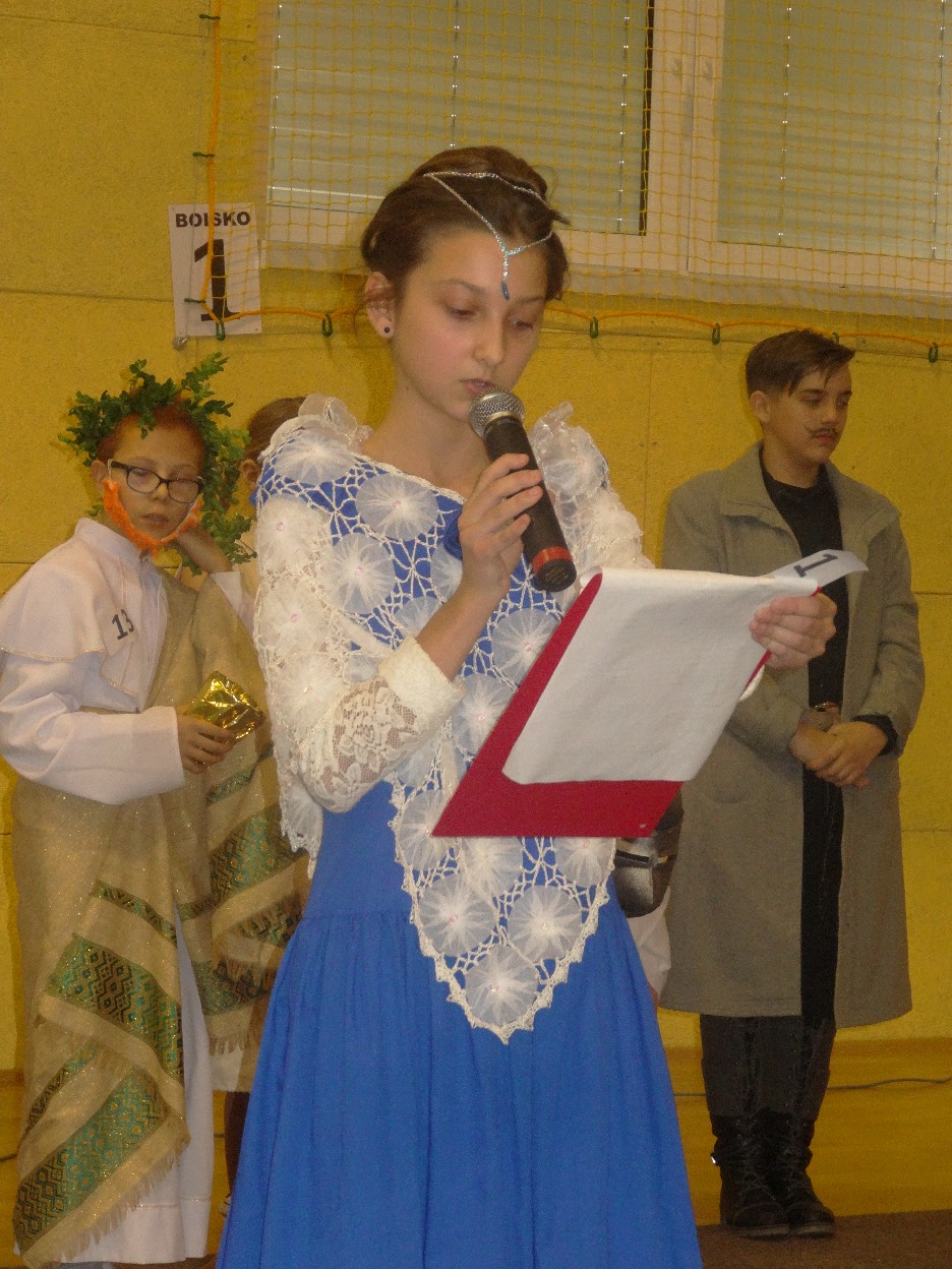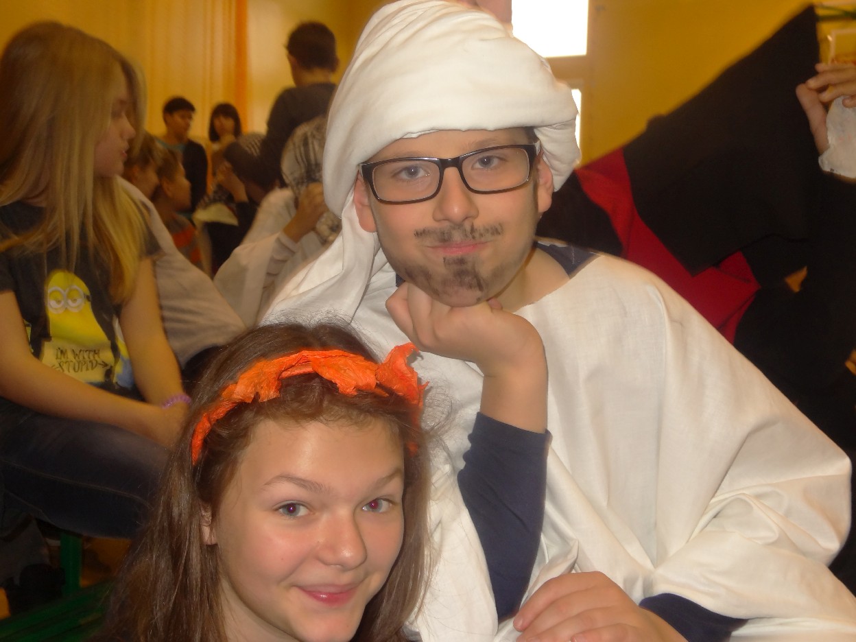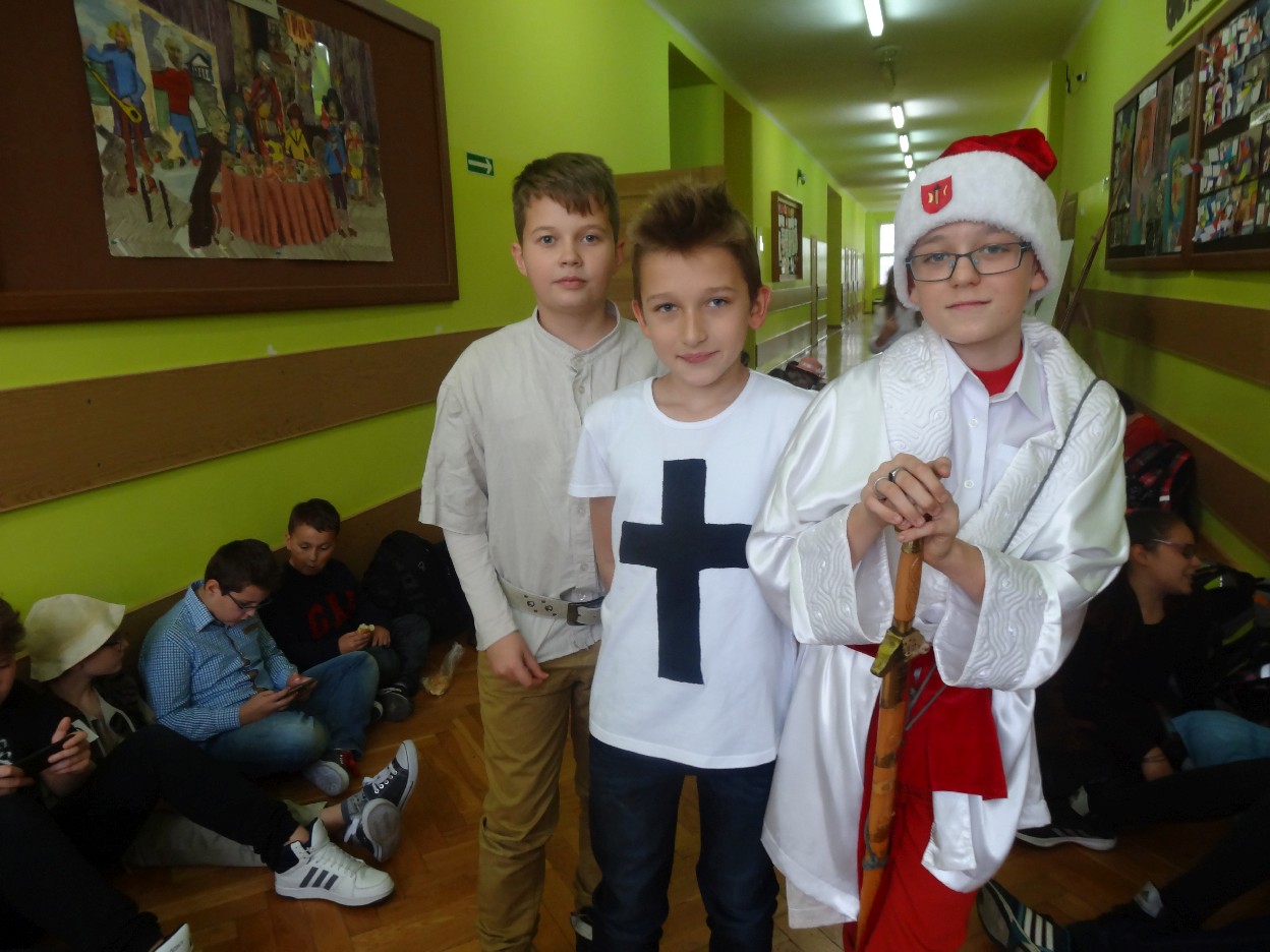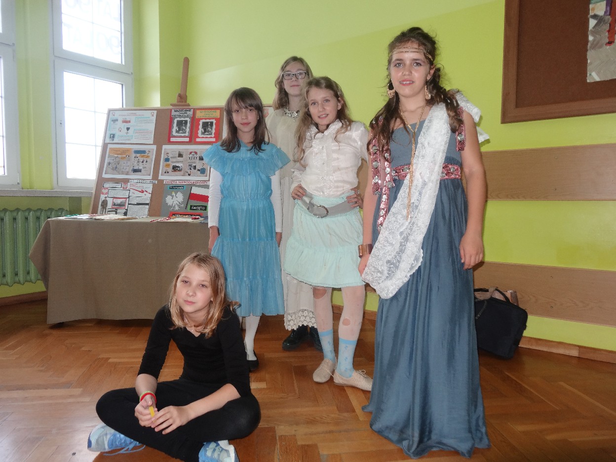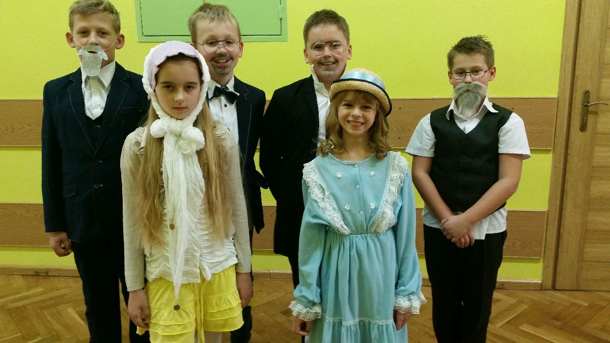 12 listopada było inaczej niż zazwyczaj w szkole. Od samego rana na szkolnych korytarzach można było spotkać bohaterów książek Henryka Sienkiewicza. Tym razem wśród uczniów byli: Staś, Nel, pani Oliwier, Latarnik, Krzyżacy, Murzyni, Oleńka Bilewiczówna, Neron, Ligia, Sachem a nawet pies Saba, słoń King. Póżniej wszyscy spotkali się w sali sportowej. Każda klasa wystawiła swoich reprezentantów do konkursu na najlepszą kreację bohatera. Kryteria oceny były surowe, jednak komisja konkursowa nie była w stanie wyłonić zwyciezców. Stwierdzono, że wszystkie postacie doskonale odzwierciedlają bohaterów z książek naszego Patrona. Wszyscy otrzymali zatem najwyższą liczbę punktów. W XIX w. trzeba byo wykazywać się odwagą i zwinnością. Aby to sprawdzić chętni bohaterowie utworów Henryka Sienkiewicza przystapili do konkurencji sportowych pod okiem nauczycieli w - fu. Było wesoło, okazało się, że nie jest łatwo wygrać, mając na sobie różne stroje. Dzień ten był wspaniały, stał sie zachetą do czytania utworów Henryka Sienkiewicza.