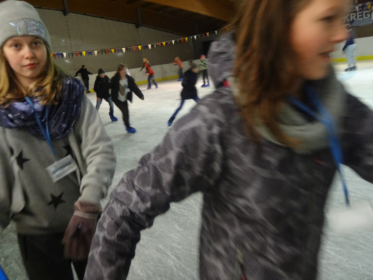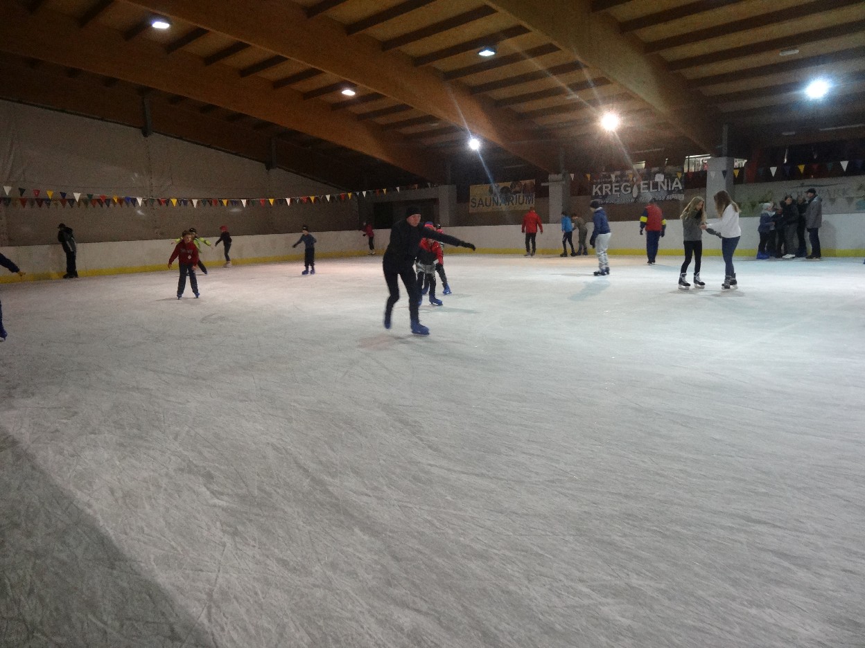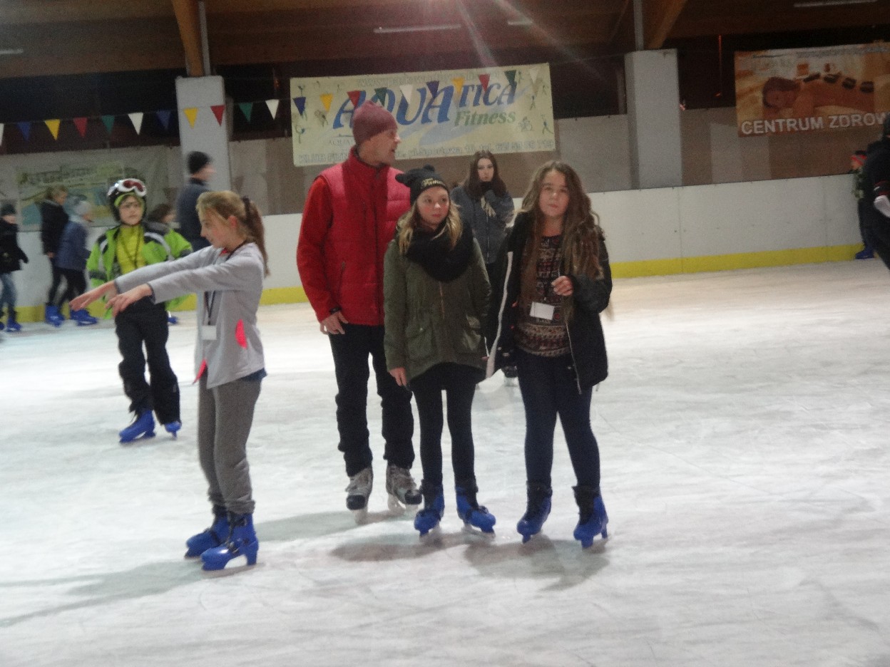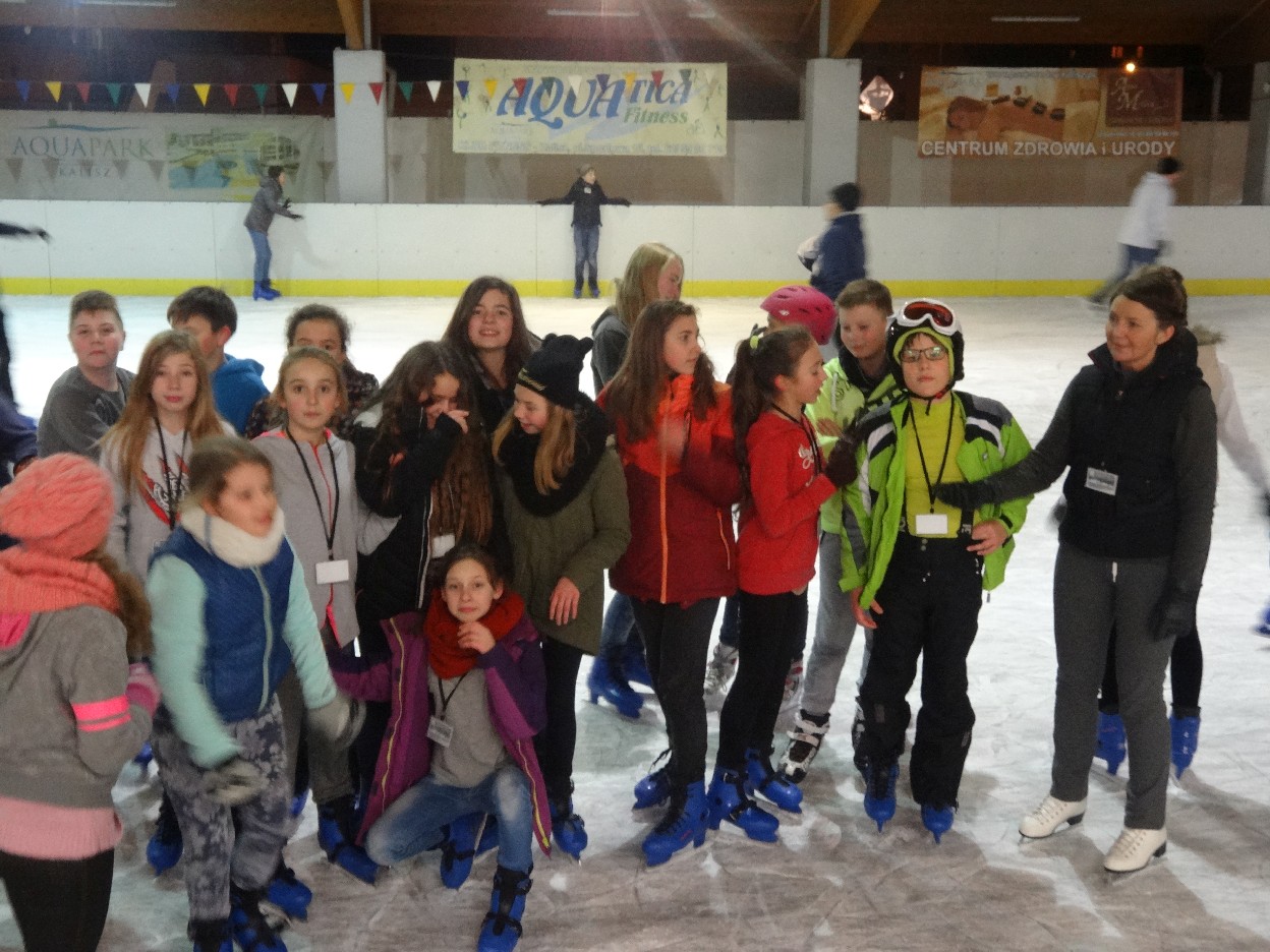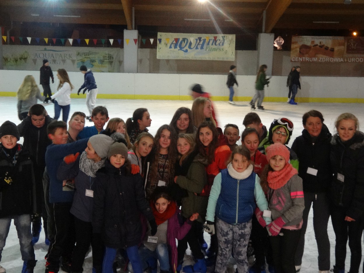 W ostatni poniedziałek listopada 2015 r. klasy czwarte, piąte i szóste udały się na lodowisko do Kalisza. Naszymi opiekunami były panie: Bożena Mielczarek, Agnieszka Koszykowska, Magdalena Sobczak. Sprzed szkoły wyruszyliśmy o godzinie 16.30. Po niespełna godzinie dotarliśmy do obiektu sportowego w którym mieści się lodowisko. Przygotowanie do wyjścia na lód zajęło nam trochę czasu. Wypożyczyliśmy łyżwy i po założeniu ich postanowiliśmy wejść na taflę, oczywiście pod czujnym okiem instruktora. Niektórzy mieli już za sobą pierwszą jazdę na łyżwach i sami postanowili oddać się szaleństwu jazdy. Początkujący łyżwiarze po kilku radach instruktora i niewielkich upadkach zaczęli sobie radzić. Z upływem czasu było coraz lepiej. Po godzinie jazdy musieliśmy schodzić z lodowiska. Wyjazd był bardzo udany. Podczas pobytu na lodowisku wzmocniliśmy naszą sprawność fizyczną. Był to czas wspólnej zabawy i rekreacji. Zrelaksowani i zadowoleni nie możemy doczekać się następnego wyjazdu, który będzie już za tydzień. Wyjazdy na lodowisko organizowane są przez Samorząd Uczniowski naszej szkoły.