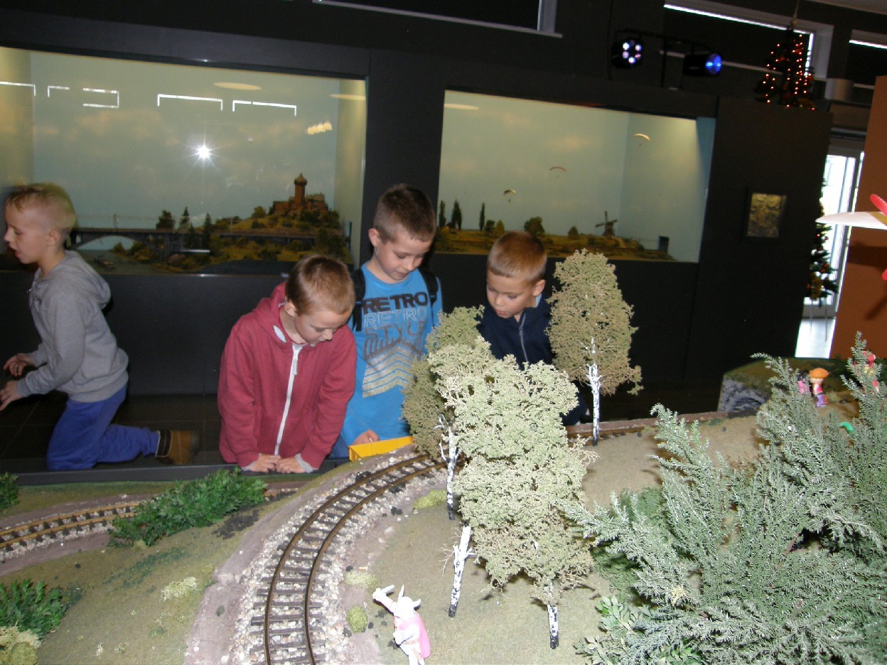 Jest to Centrum Rozrywki KROPKA w Koninie. Główną atrakcją tego miejsca jest park makiet MIKROSKALA, jedyne takie miejsce w Europie.Jest tu 30 różnych makiet o charakterze edukacyjnym i rozrywkowym. Niektóre z nich są interaktywne. Oglądający decyduje czy jakiś element makiety poruszy się, zagra bądź zaświeci. Makiety przedstawiają sceny z popularnych filmów, obrazy z historii Polski, świata i Konina. Wystawa wsparta jest licznymi prezentacjami multimedialnymi. Są tu też interaktywne kolejki, postaci z bajek PRL-u oraz makieta wesołego miasteczka. Dzieci mogą również podziwiać dinozaury i obcych z kosmosu. O wszystkich tych historiach związanych z makietami dzieci dowiedziały się od przewodnika. Następnie wzięły udział w zajęciach manualnych prowadzonych przez pana konstruktora. Z drewnianych sześcianów robiły figurki ludzi lub dinozaurów. Mocnych wrażeń i emocji dostarczył seans filmowy w kinie 6D. Poza tym dzieci miały też czas wolny. Bawiły się , oglądały i uruchamiały makiety oraz przebierały w różnorakie stroje. Mogły też odpocząć i posiedzieć przy stolikach lub pobawić się rozłożonymi na nich klockami. Dzieci wracały z wycieczki szczęśliwe i zadowolone. Jeżeli ktoś był smutny, to tylko dlatego, że nastąpił koniec wycieczki.