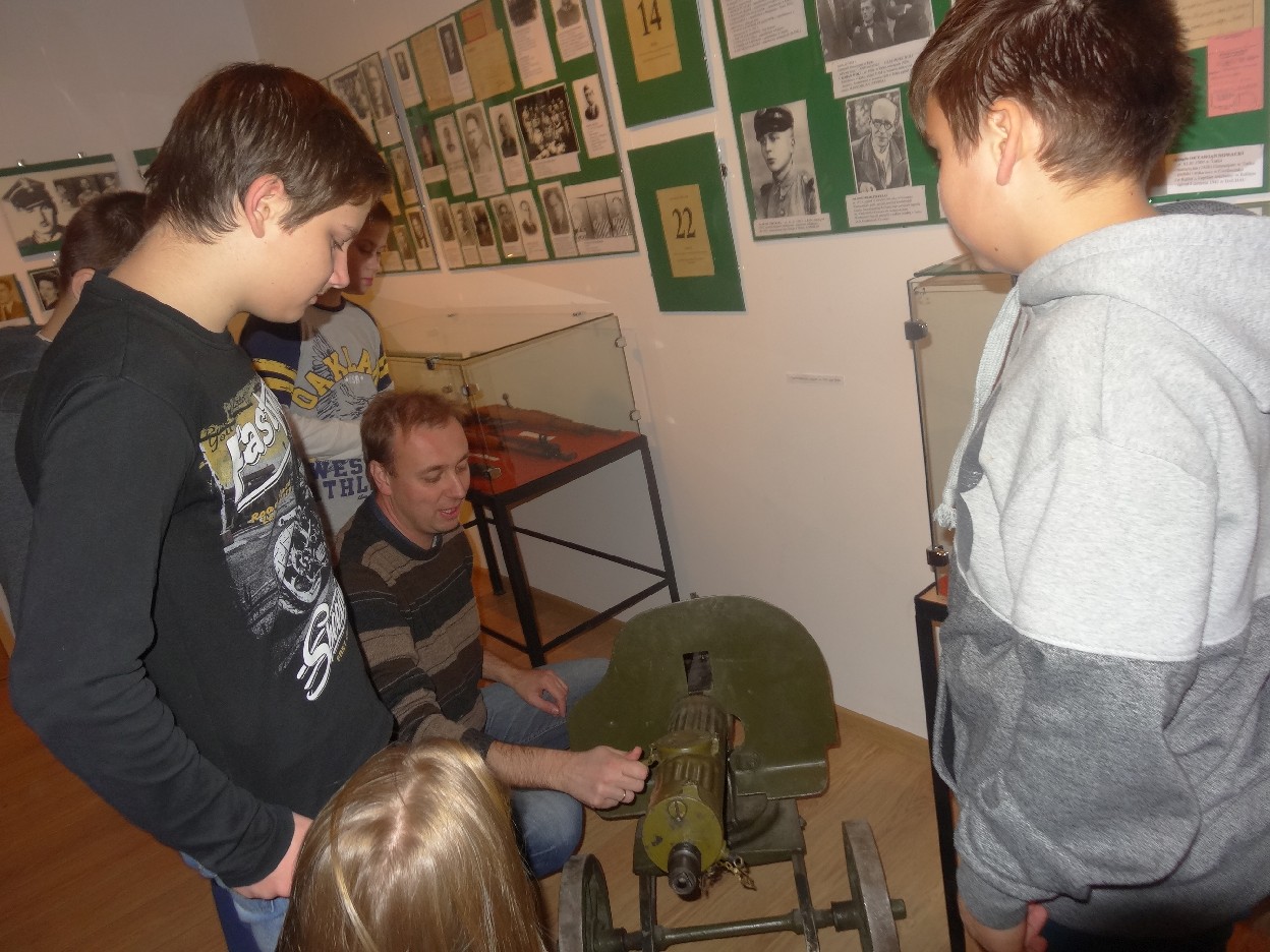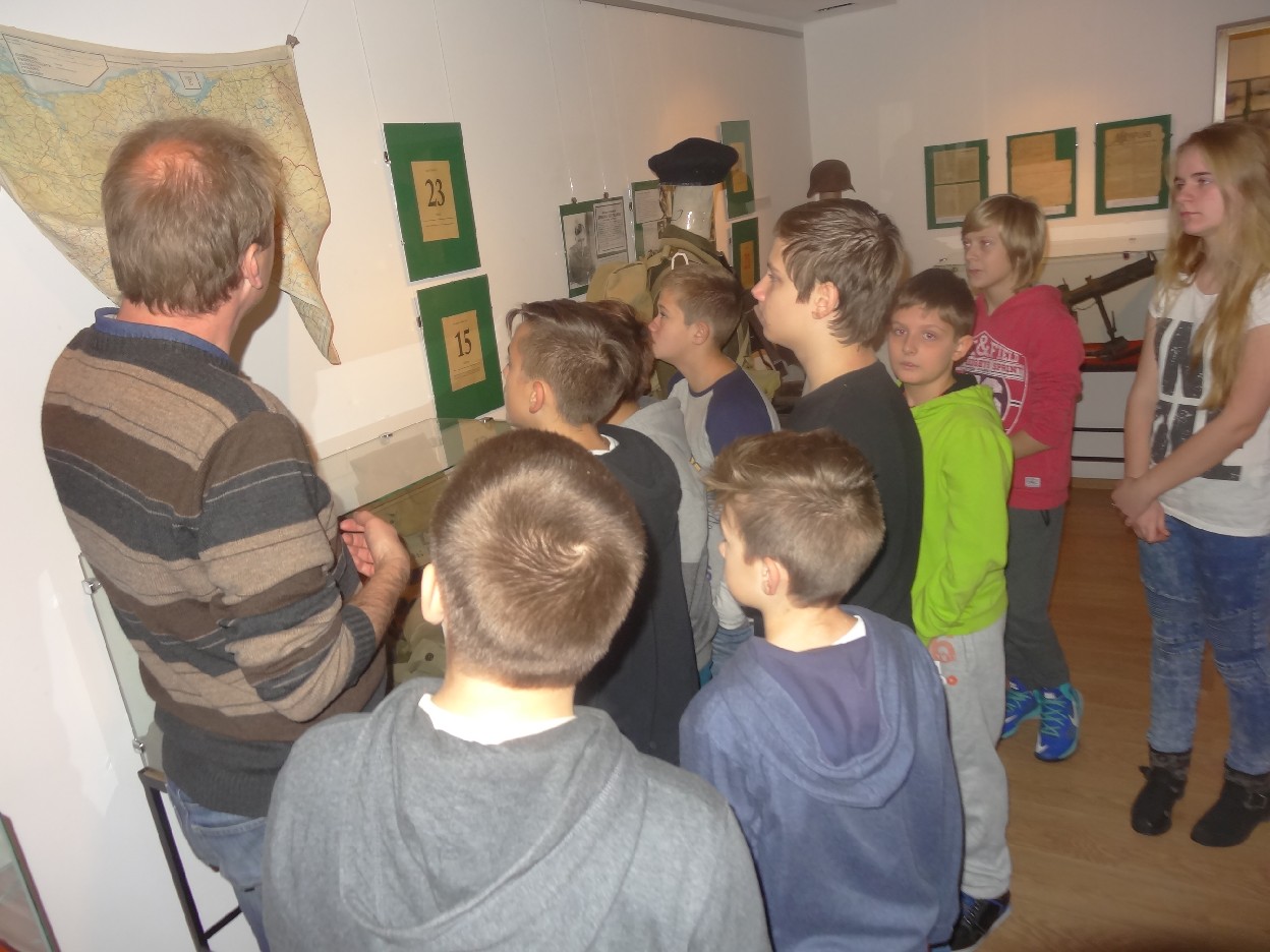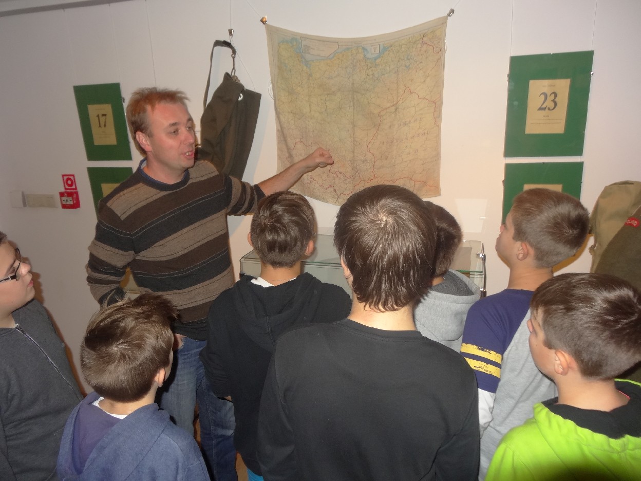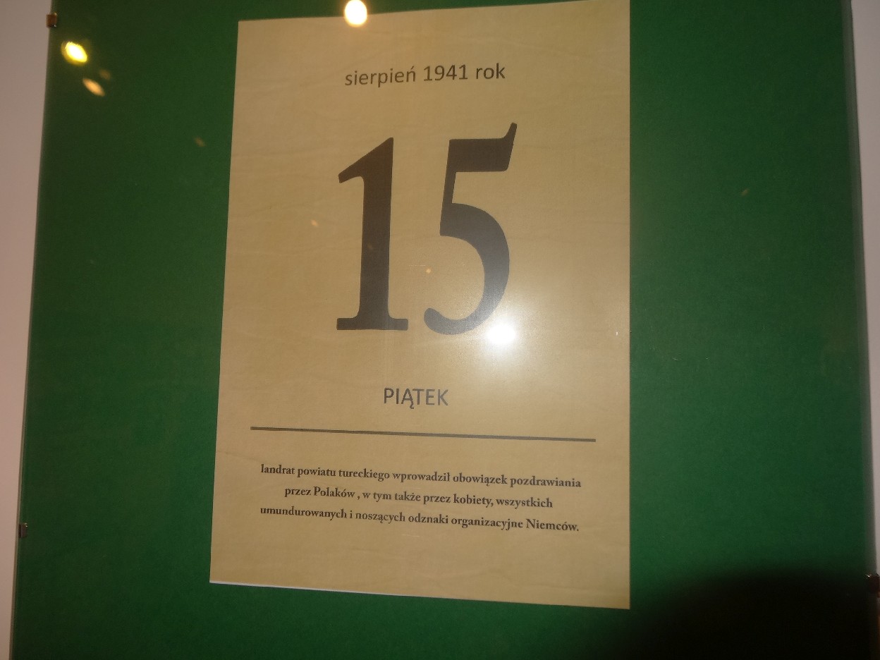 Na wystawie można było zobaczyć eksponaty przedstawiające uzbrojenie, wyposażenie żołnierzy oraz ubiory innych ludzi z czasów wojny. Pan Stachowiak, pracownik muzeum, opowiedział nam jak Polacy walczyli z Niemcami w naszym mieście. Zobaczyliśmy zdjęcia Turku z czasów wojny. Poznaliśmy prawa, nakazy i warunki w jakich żyli nasi rodacy.