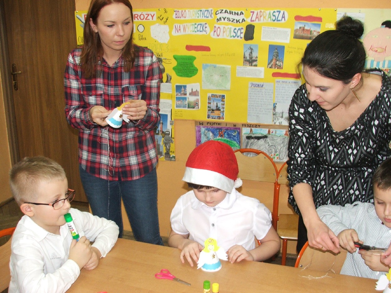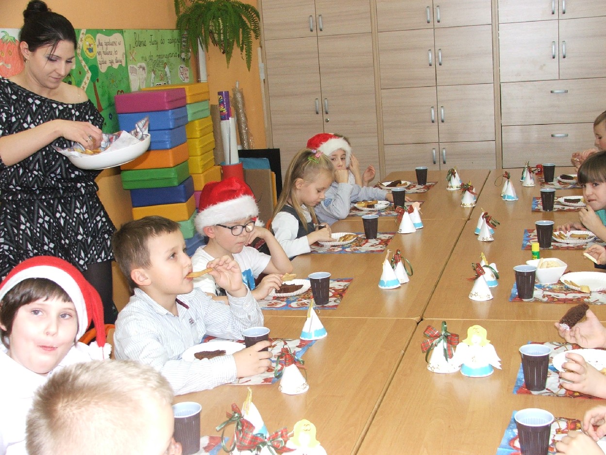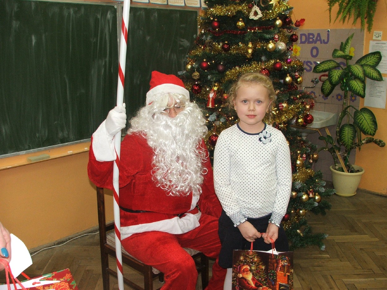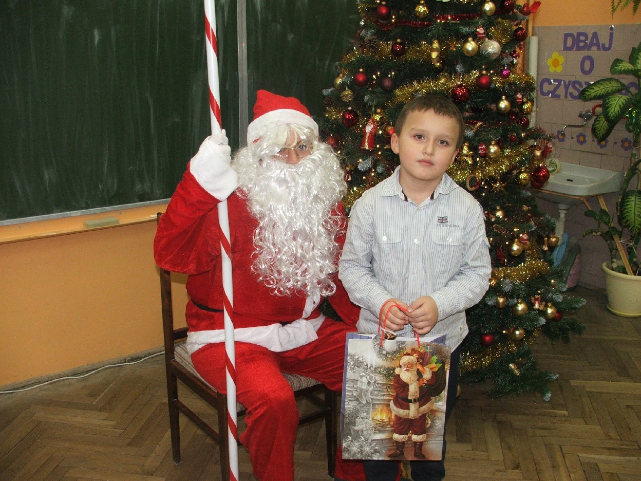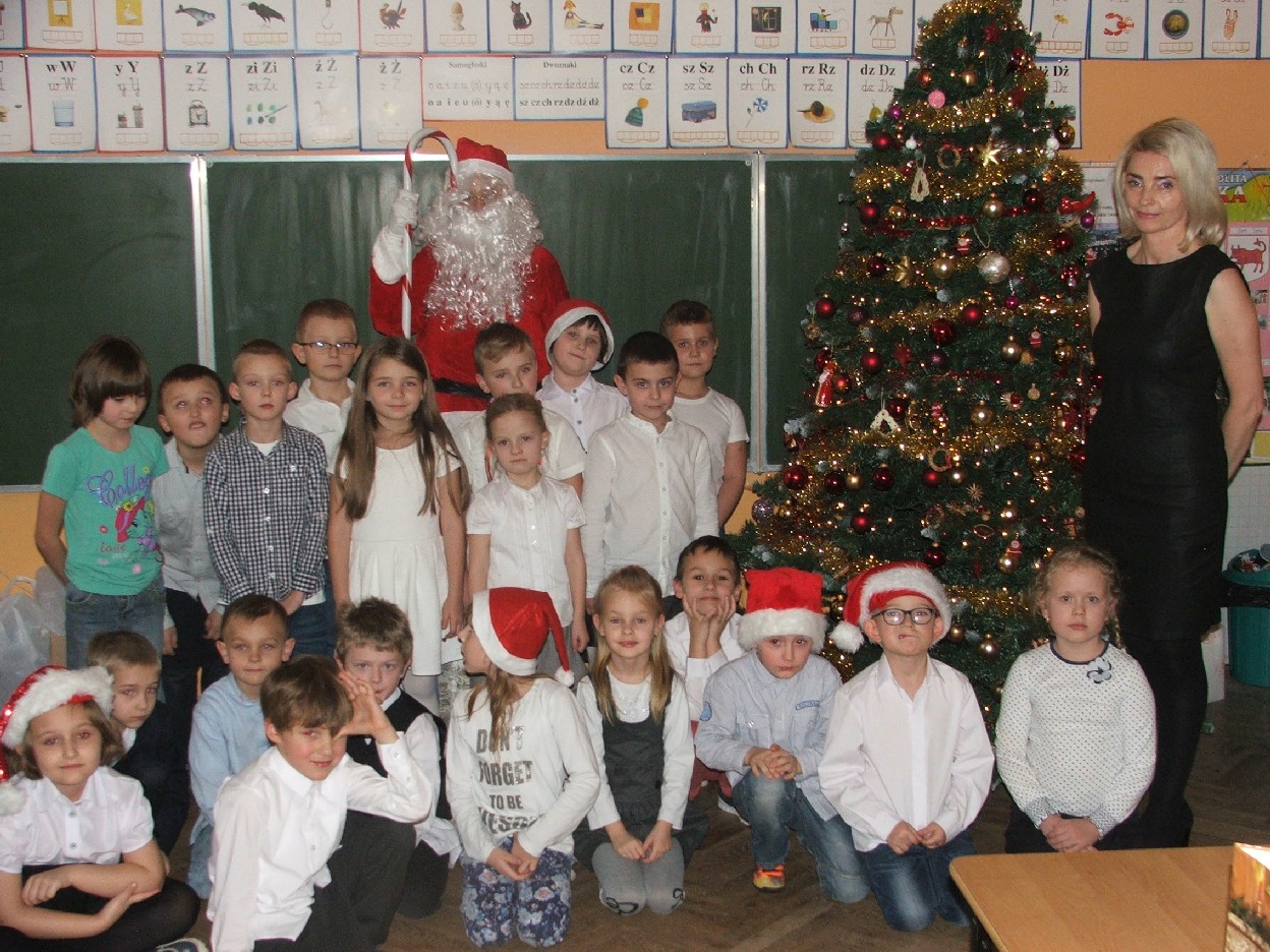 Dzisiaj nadszedł ten dzień – wyczekany, wymarzony. Klasa I b obchodziła mikołajki. W oczekiwaniu na przyjście Mikołaja dzieci wykonały świąteczne dekoracje – aniołki, dzwoneczki… Mamy pomagały w ubieraniu choinki. Jest strojna, kolorowa i radośnie mruga światełkami. Potem był słodki poczęstunek z domowych wypieków. Po długim przygotowaniu nareszcie dzieci doczekały się wizyty św. Mikołaja. Usłyszały dzwonek i pojawił się miły gość. Dzieci zaśpiewały piosenkę, a także obiecały, że będą grzeczne. Po takich deklaracjach Mikołaj przystąpił do swojego zadania – wręczył wszystkim upominki, które dzieci przyjmowały z wypiekami na twarzach i nieskrywaną radością. Do następnego roku drogi Mikołaju! Mamy nadzieję, że znów spotkamy się w tak radosnej i beztroskiej atmosferze. Teraz wszyscy czekamy na Boże Narodzenie. Wesołych Świąt życzy wszystkim klasa I b z wychowawcą i rodzicami.