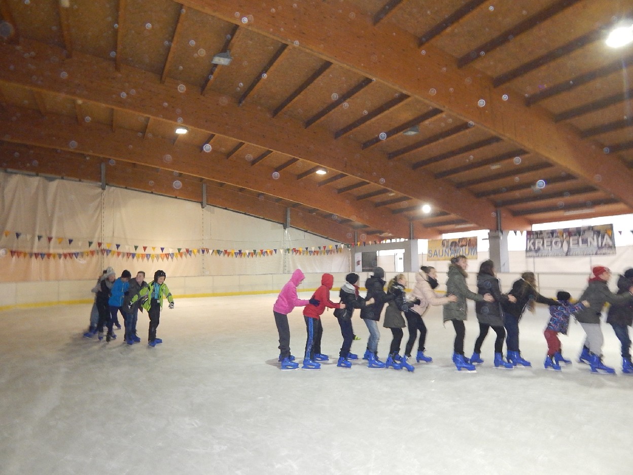 10 oraz 16 grudnia był dla uczniów naszej szkoły wspaniałym dniem. Mogliśmy po raz kolejny spróbować jazdy na łyżwach. Wyjazd ten zorganizował Samorząd Uczniowski. Pan instruktor bacznie obserwował nasze poczynania. Niektórzy nauczyli się hamować, jeździć slalomem i przeplatanką. Jazda tym sposobem jest bardzo efektowna. Nikt nie musi nas przekonywać, że łyżwy to doskonały sposób spędzania wolnego czasu. Niektórzy z nas podczas ferii zimowych będą doskonalić swoje umiejętności łyżwiarskie.