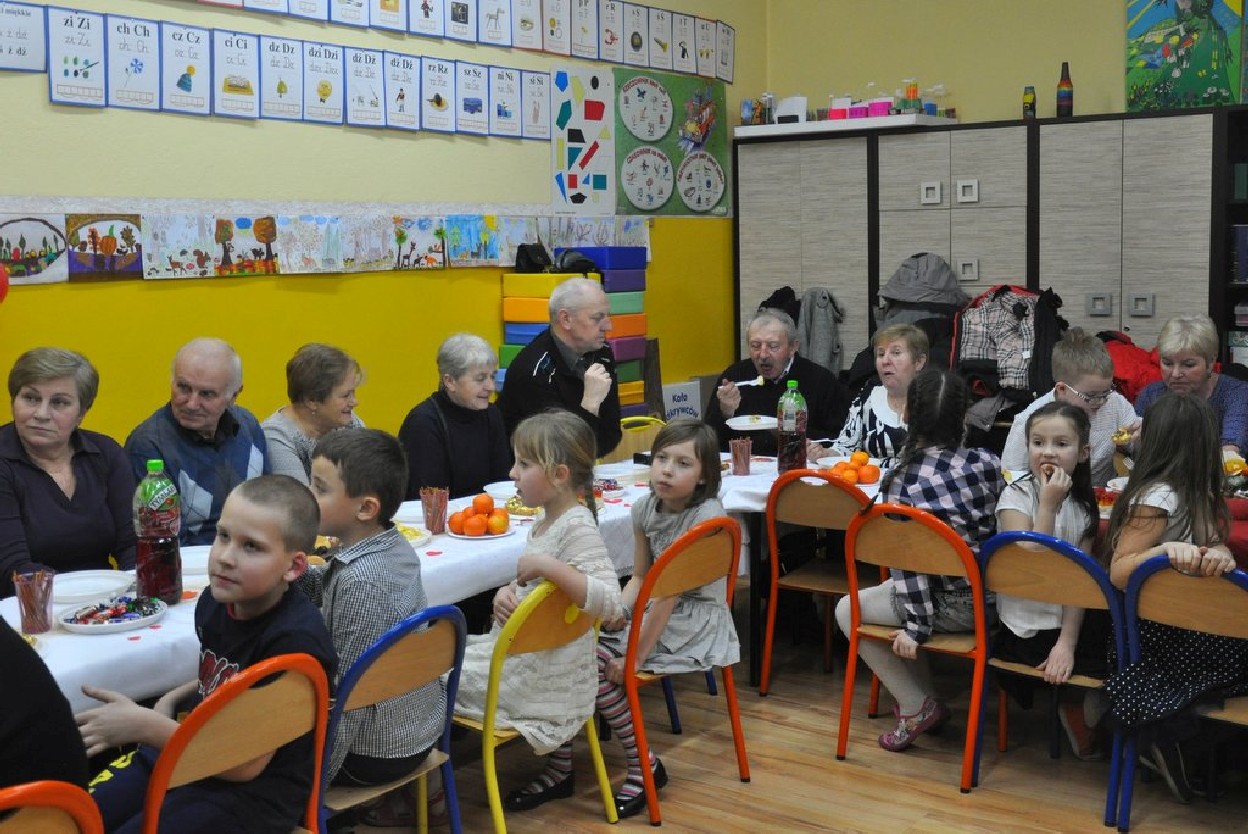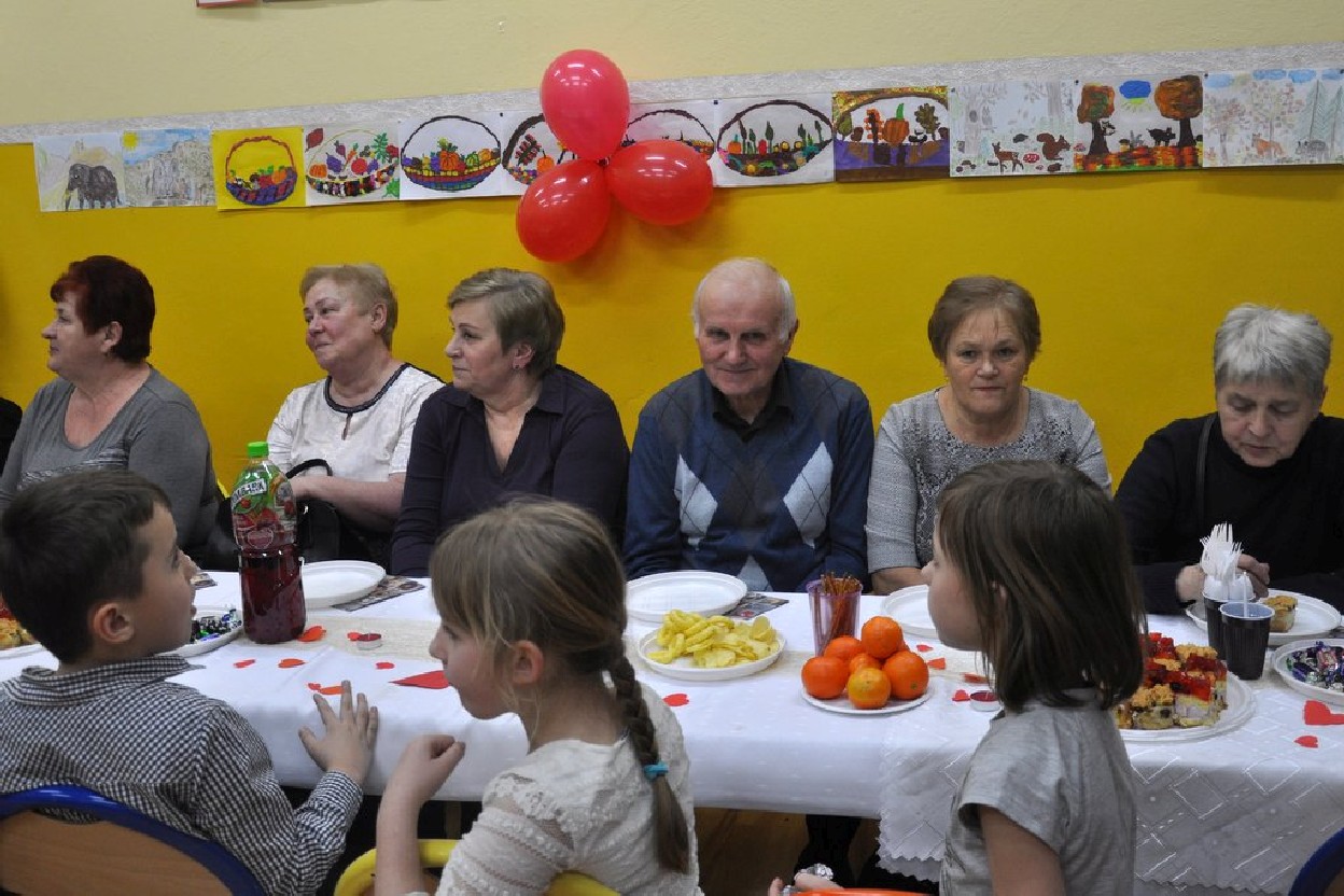 Udział Babć i Dziadków w zajęciach lekcyjnych, wspólna zabawa przy muzyce, drobne upominki i uśmiech na twarzach, potwierdził tylko, że dziadków i wnuczęta łączy niezwykła więź. Dziadkowie to wspaniali nauczyciele. Pokazują wnukom świat, czytają bajki, bawią się i często zabierają na ciekawe wyprawy. Potrafią też smutne chwile osłodzić dobrym słowem i … czekoladką.