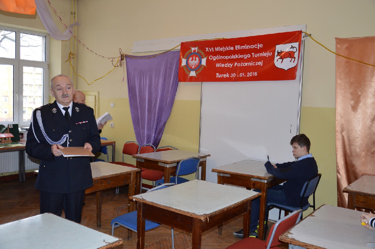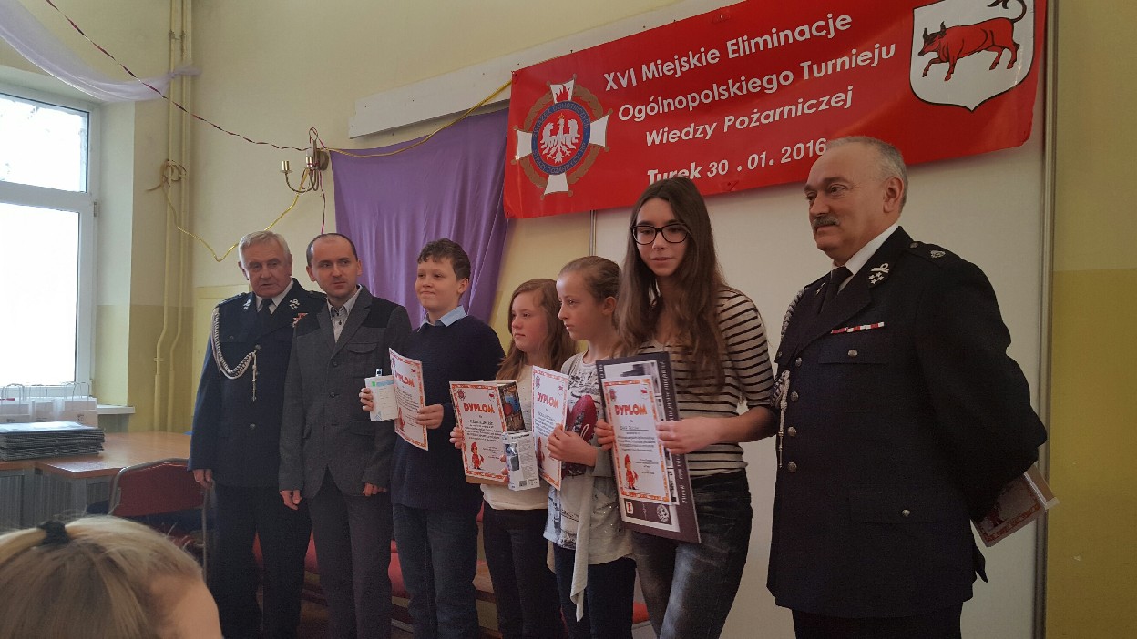 W dniu 30 stycznia 2016r. w siedzibie OSP w Turku odbyły się XVI miejskie eliminacje Ogólnopolskiego Turnieju Wiedzy Pożarniczej „Młodzież zapobiega pożarom”. Szkołę Podstawową Nr 1 reprezentował Wojciech Werbiński z klasy 6e, którego opiekunem jest pani Irena Dominiak. Uzyskał on najlepszy wynik w mieście w kategorii szkół podstawowych i tym samym zakwalifikował się do etapu powiatowego. Jest to turniej w którym należy wykazać się znajomością specjalistycznej wiedzy o pożarnictwie, dlatego tylko prawdziwi pasjonaci zajmują najwyżasze lokaty. Tym bardziej gratulujemy naszemu uczniowi i życzymy sukcesu w kolejnych etapach.