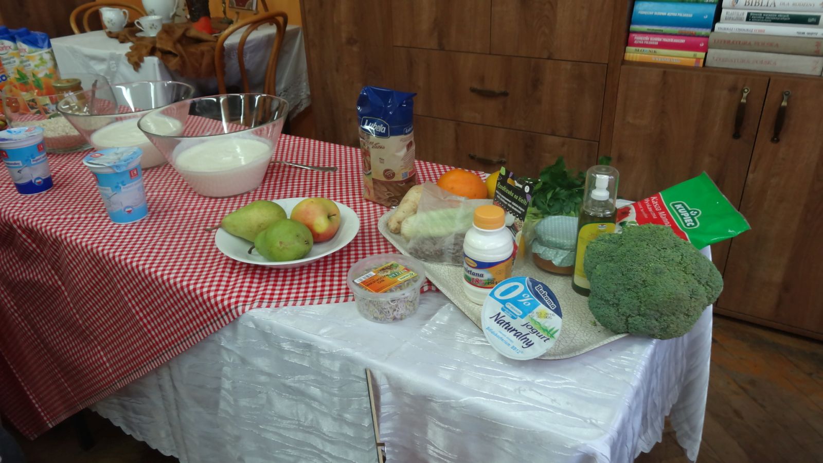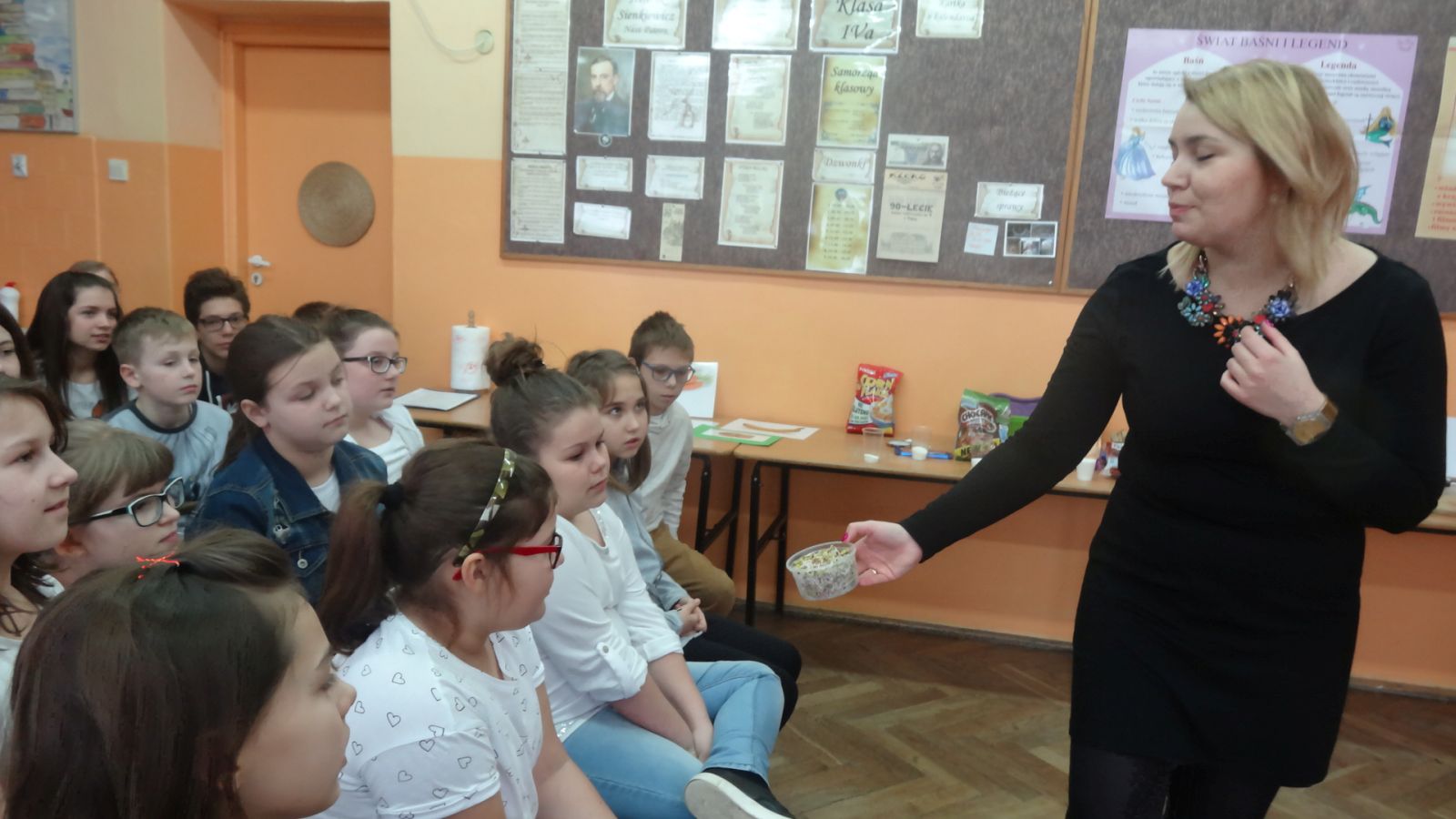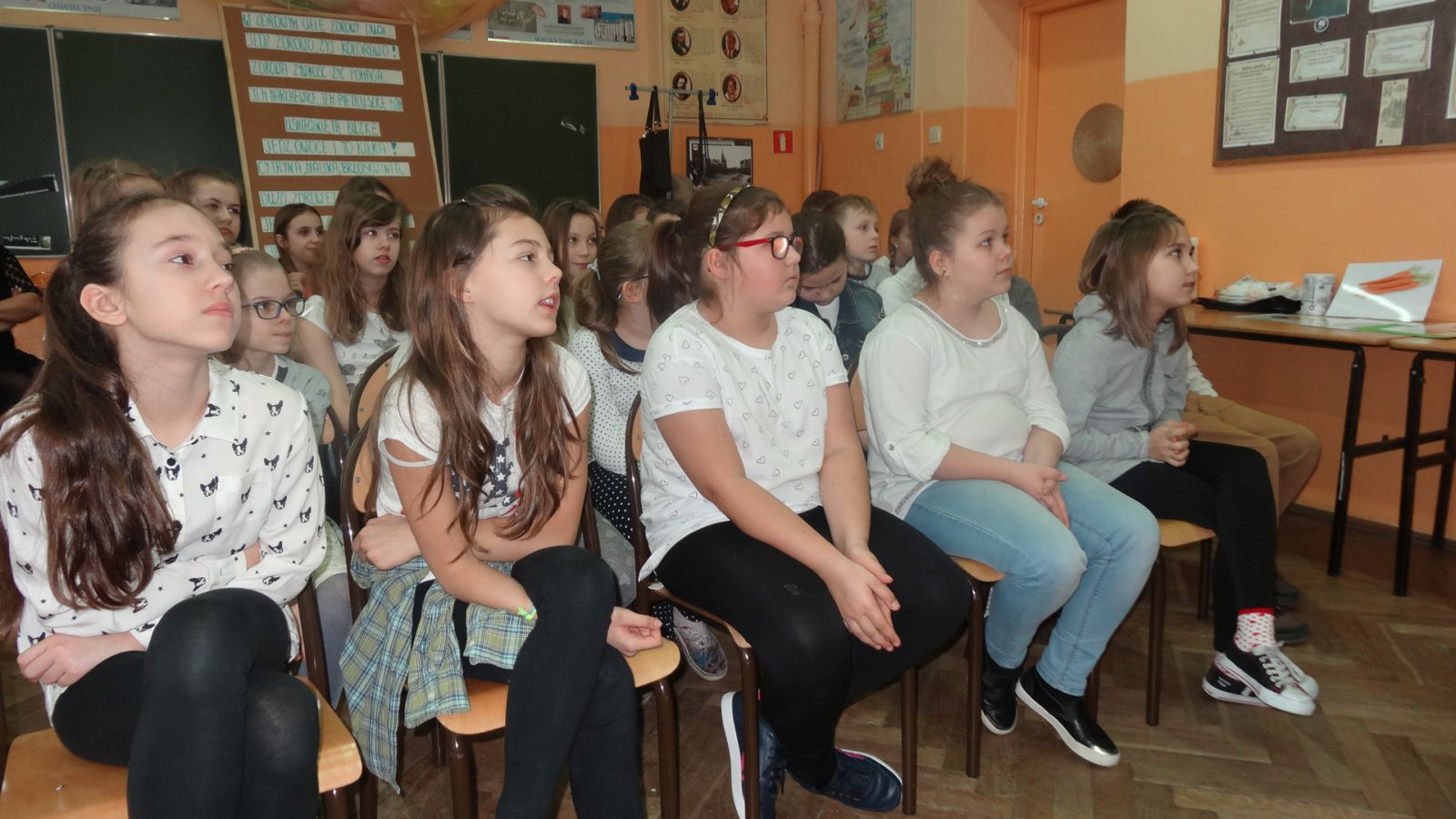 22 marca w sali 407 odbyło się spotkanie z dietetykiem, panią Justyną Wodzińską. Wzięli w nim udział uczniowie, rodzice i nauczyciele. Spotkanie to odbyło sie medodą warsztatową. Najpierw pani dietetyk wspólnie z uczniami omówiła zasady odżywiania zgodne z nową Piramidą Zdrowego Odżywiania i Aktywności Fizycznej. Później wszyscy uczestnicy spotkania przekonali się, ile cukru mieści się w różnych napojach typu coca cola, napój owocowy, woda smakowa itp. Następnym etapem było eliminowanie ze stołu produktów kalorycznych, a zastępowanie zdrowymi. Pani dietetyk swierdził, że coś słodkiego człowiek również musi zjadać aby odżywić mózg, więc zaproponowała przygotowanie słodkiego deseru. Deser okazał się wyśmienity. Warto zapamiętać składniki: jogurt naturalny, banan, płatki kukurydziane, miód, orzechy włoskie.