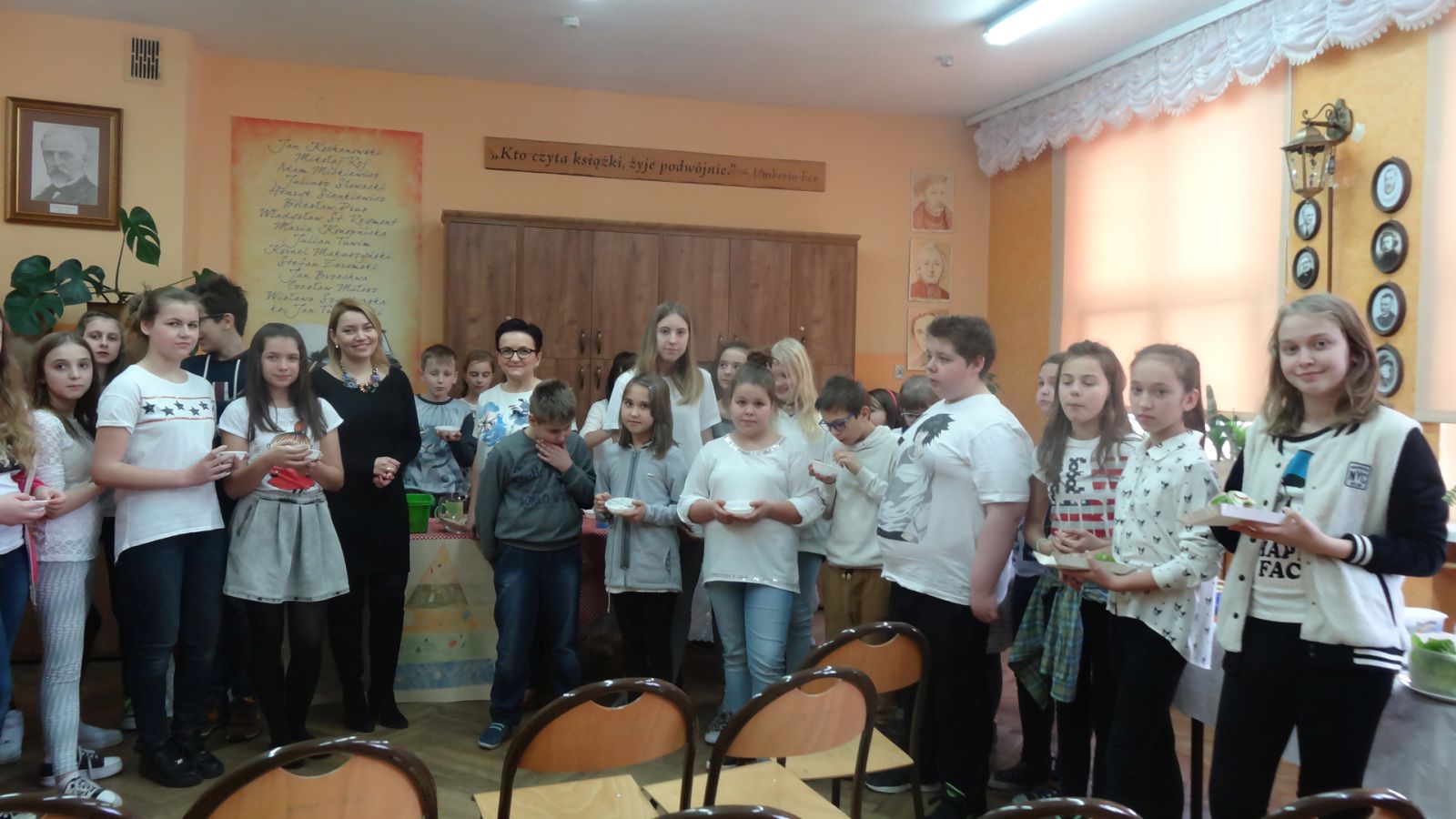 Na koniec uczniowie przygotowali kanapki wg własnego pomysłu i omówli dobór użytych składników. Pani dietetyk wszystkich przekonała, że na stałe warto wprowadzić i stosować zasady eliminowania niezdrowych produktów na rzecz zdrowych, odżywczych i równie smacznych. Spotkanie było bardzo wartościowe, podczas, którego wiedza łączyła sie z praktyką. Inicjatorką spotkania była pani Emilia Kozłowska.