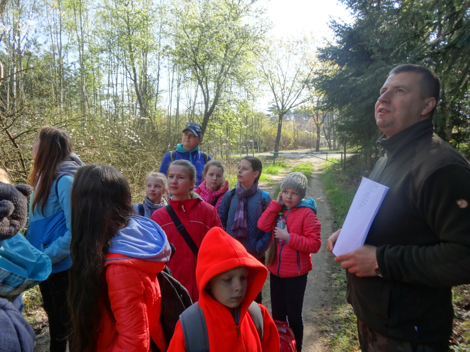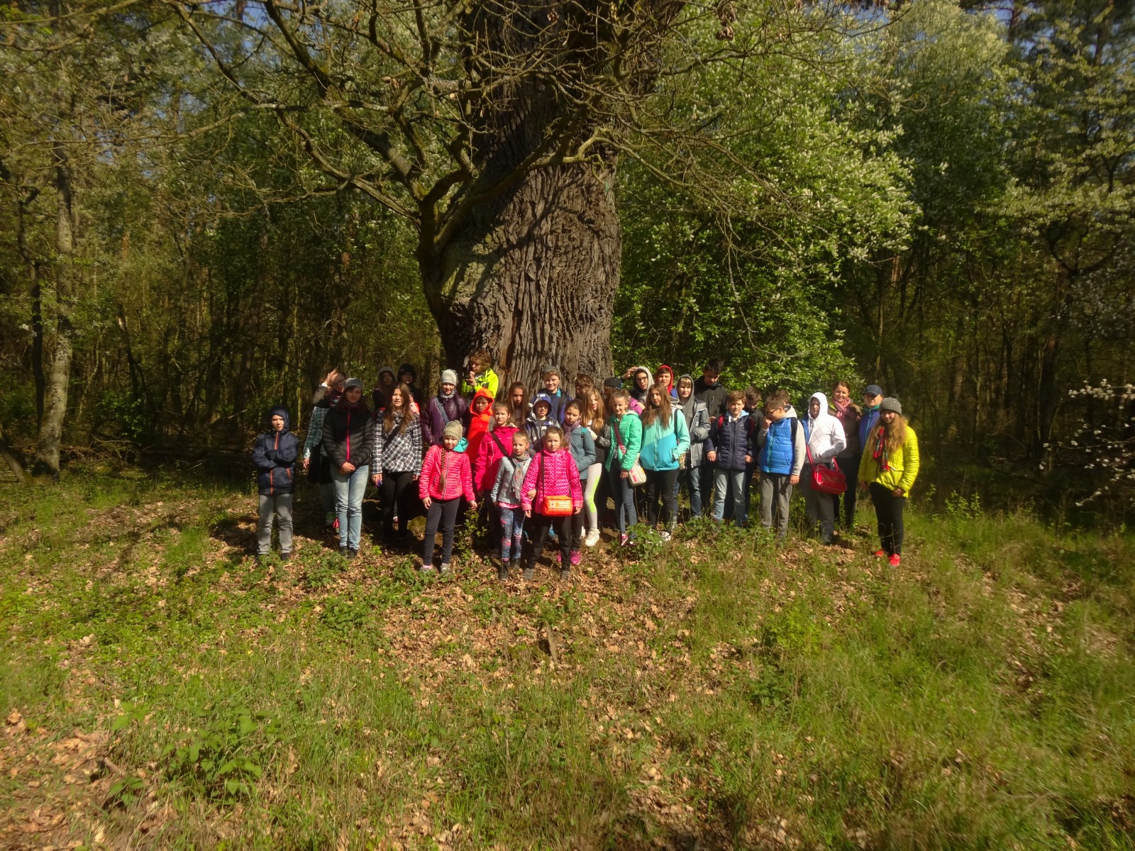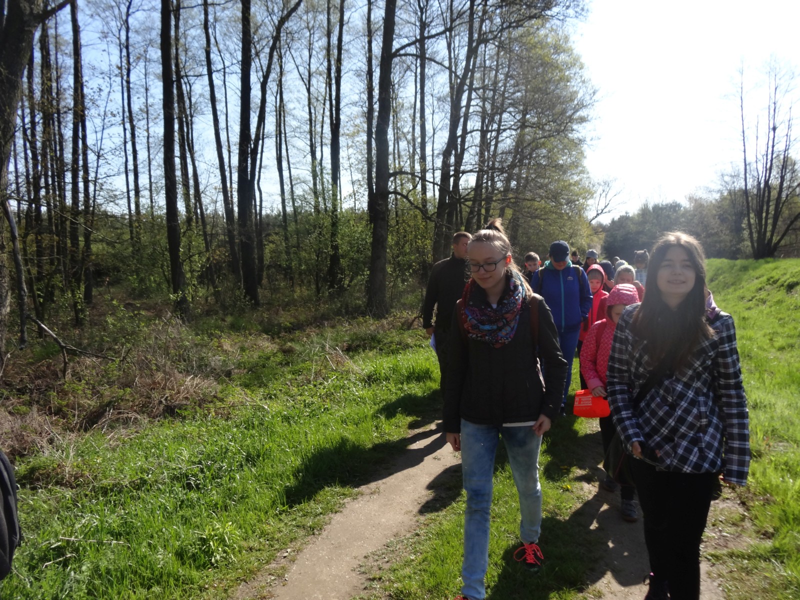 29 kwietnia 2016 roku klasy 4c, 6e i 6d pod opieką p. Bożeny Mielczarek i p. K. Błajet brały udział w lekcji przyrody w terenie. Lekcja przyrody odbyła się na ścieżce dydaktycznej „Moczary” w Leśnictwie w Grzymiszewie. Prowadził ją p. Radosław Szociński podleśniczy z Nadleśnictwa Turek. Uczniowie zobaczyli stawy będące ostoją płazów, ptaków i bobrów. Oglądali ogromne i sędziwe dęby szypułkowe, które są pomnikami przyrody, piękne łąki położone w dolinie rzeki Topiec oraz ul dla dzikich pszczół. W czasie drogi, którą przebyli pan podleśniczy opowiadał o drzewach i roślinności, które napotkaliśmy (paprocie, skrzypy, przylaszczkę, zawilec gajowy, fiołek leśny, ziarnopłon wiosenny). Dzięki lekcji w terenie uczniowie mogli wzbogacić wiedzę przyrodniczą, rozwinąć zainteresowania a przede wszystkim kształtować szacunek do przyrody.