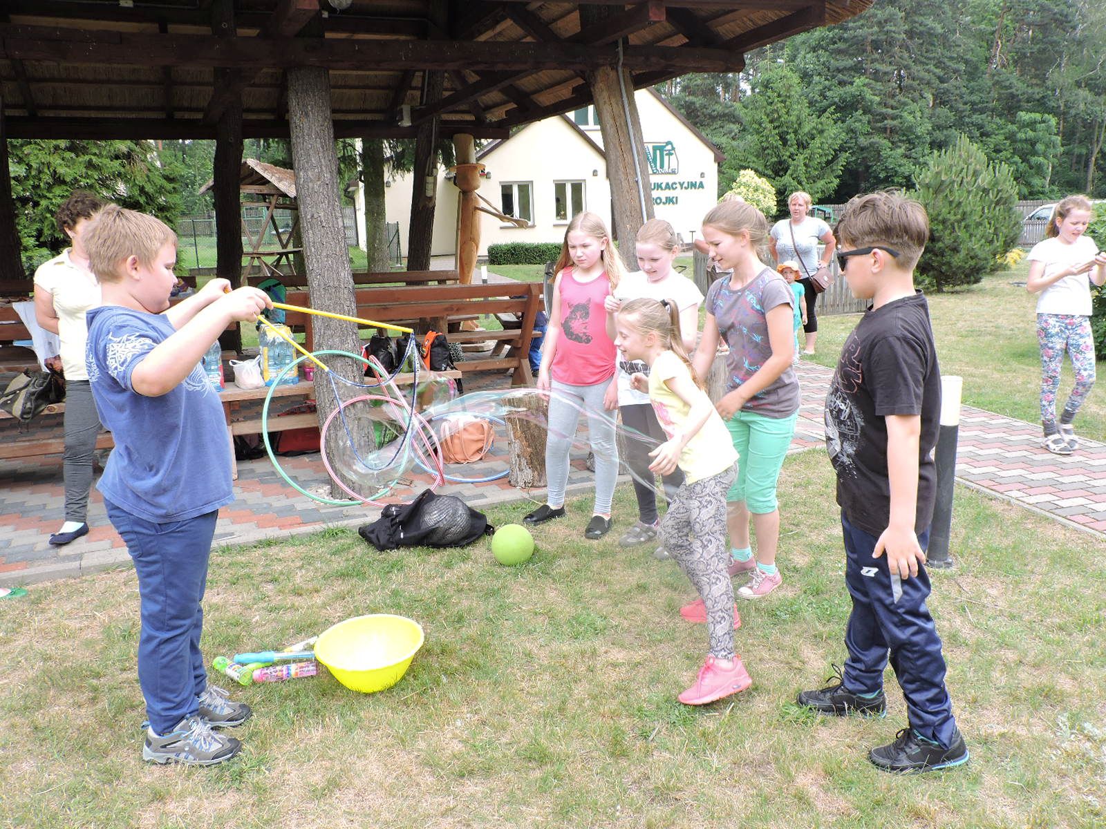 17 czerwca 2016 roku klasa 4c wraz z wychowawcą p. Katarzyną Błajet i rodzicami wybrała się do Nadleśnictwa w Turku na zaplanowane ognisko. Tego dnia bawiliśmy się i uczciliśmy zakończenie roku szkolnego. Na ognisku smażyliśmy kiełbaski, chleb oraz słodkie pianki. Oprócz tego rodzice przygotowali dla nas muf inki szpinakowe, truskawkowe i ciastka. Graliśmy w piłkę nożną, siatkową oraz skakaliśmy w gumę, kręciliśmy hula hop, tańczyliśmy w rytm muzyki. Ale najfajniejszą atrakcją było puszczanie ogromnych baniek mydlanych – zobaczcie sami na zdjęciach.