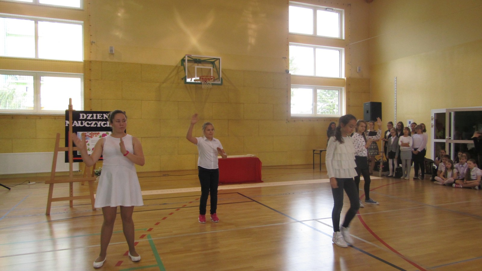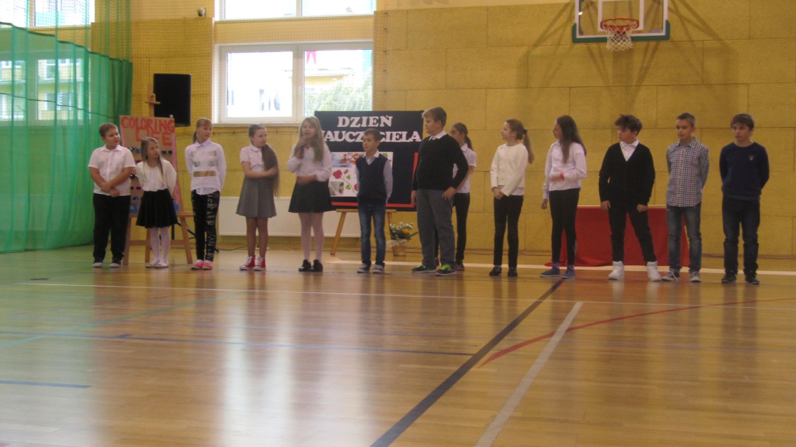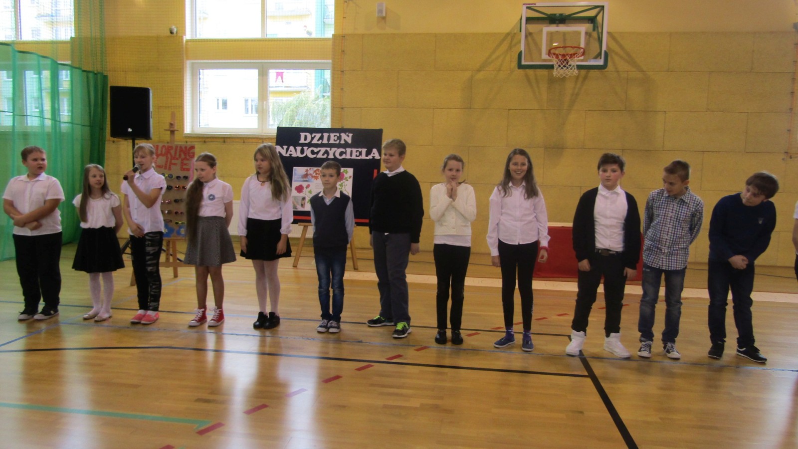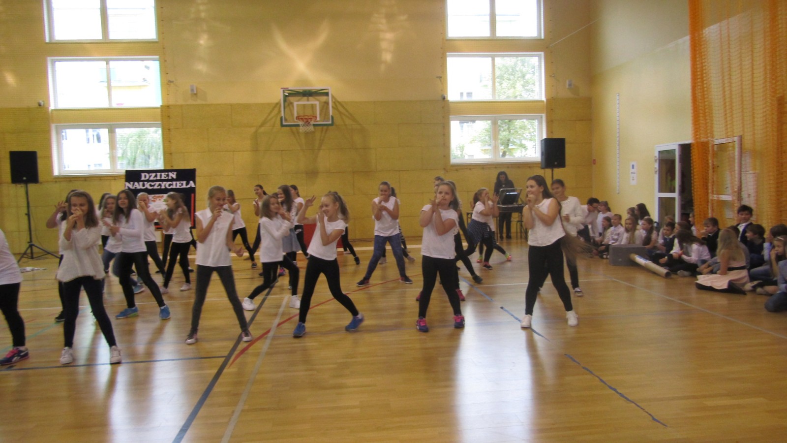 13 października odbył się apel z okazji Dnia Edukacji Narodowej, święto zwane często Dzień Nauczyciela. W programie były: tańce do znanych hitów muzycznych, humorystyczne scenki, piosenka i wierszownane życzenia. Uczniowie, którzy wcielili sie w role przedstawicieli handlowych, zaprezentowali przydatne pomoce dydaktyczne dla nauczyciela i ucznia. Te nietypowe pomoce to: dyby szkolne, różowe okulary, dyscyplinek z witek wierzbowych i młotki do wbijania wiedzy. Humorystyczne scenki przekonały nas, że możliwe jest zastosowanie prezentowanych pomocy we wspłóczesnej szkole. Na potwierdzenie tego, że w szkole jest fajnie Kaja zaśpiewała piosenkę „Bo do szkoły warto chodzić”. Program artystyczny wypełniony był tańcami w wykonaniu dziewczzynek klas 4 – 6. Należy przy tym powiedzieć, że tańce cieszą się w naszej szkole dużym zainteresowaniem, czego dowodem jest coraz większa grupa roztańczonych uczniów. Apel zakończyliśmy życzeniami od burmistrza miasta Turku Romualda Antosika. Część artystyczną przygotowały klasy: 4 c, 5 a i 5c wraz z wychowawcami.
