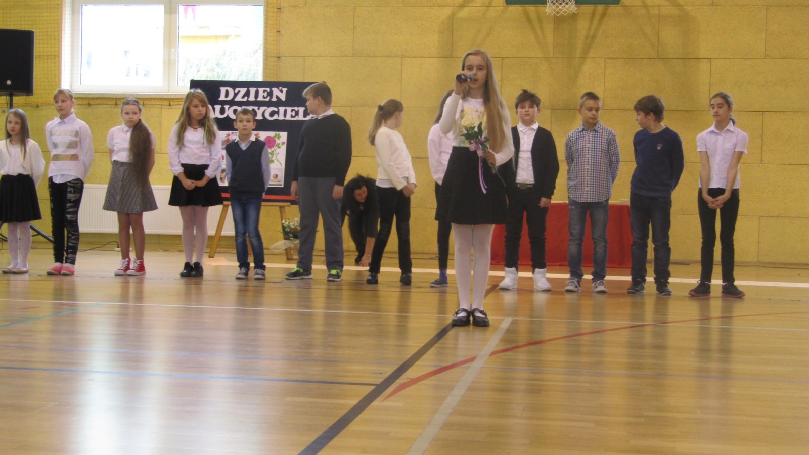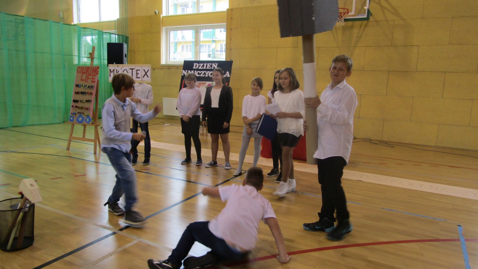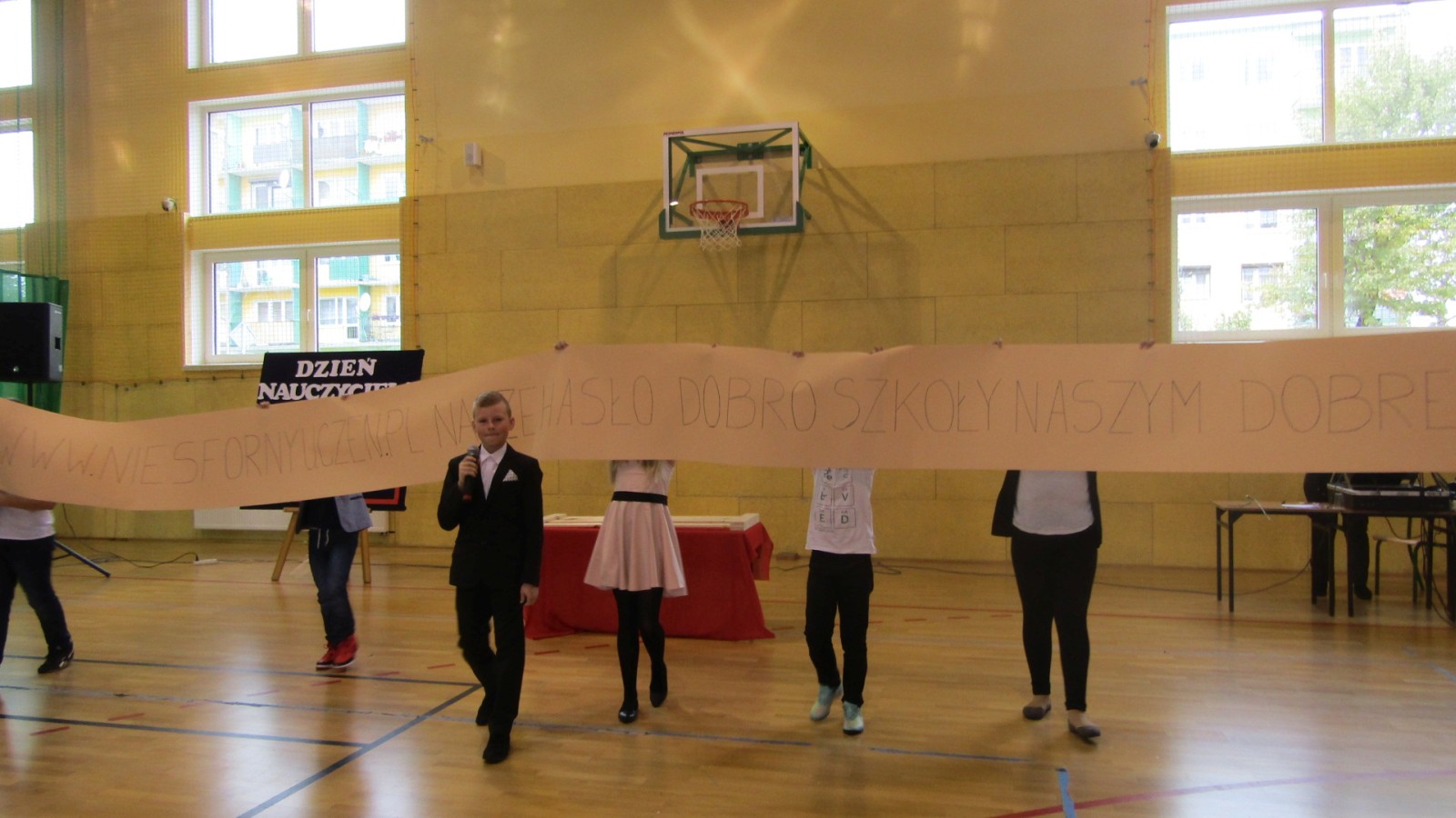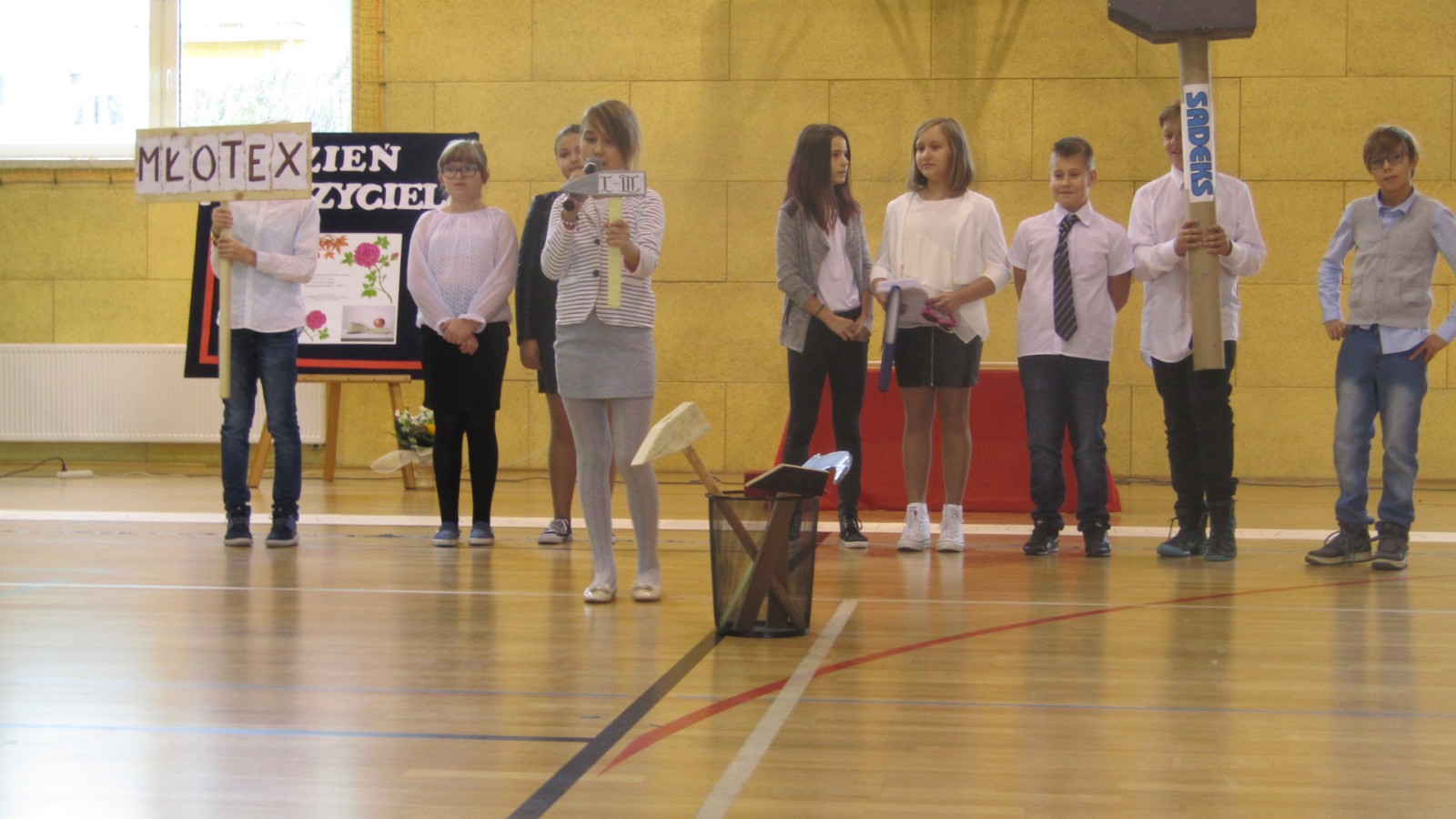 13 października odbył się apel z okazji Dnia Edukacji Narodowej, święto zwane często Dzień Nauczyciela. W programie były: tańce do znanych hitów muzycznych, humorystyczne scenki, piosenka i wierszownane życzenia. Uczniowie, którzy wcielili sie w role przedstawicieli handlowych, zaprezentowali przydatne pomoce dydaktyczne dla nauczyciela i ucznia. Te nietypowe pomoce to: dyby szkolne, różowe okulary, dyscyplinek z witek wierzbowych i młotki do wbijania wiedzy. Humorystyczne scenki przekonały nas, że możliwe jest zastosowanie prezentowanych pomocy we wspłóczesnej szkole. Na potwierdzenie tego, że w szkole jest fajnie Kaja zaśpiewała piosenkę „Bo do szkoły warto chodzić”. Program artystyczny wypełniony był tańcami w wykonaniu dziewczzynek klas 4 – 6. Należy przy tym powiedzieć, że tańce cieszą się w naszej szkole dużym zainteresowaniem, czego dowodem jest coraz większa grupa roztańczonych uczniów. Apel zakończyliśmy życzeniami od burmistrza miasta Turku Romualda Antosika. Część artystyczną przygotowały klasy: 4 c, 5 a i 5c wraz z wychowawcami.