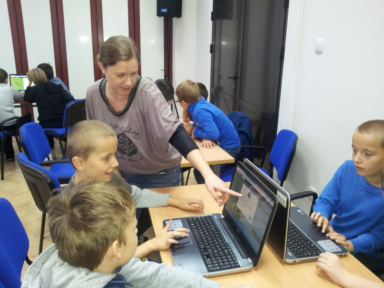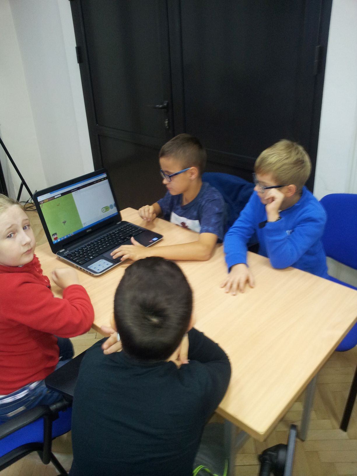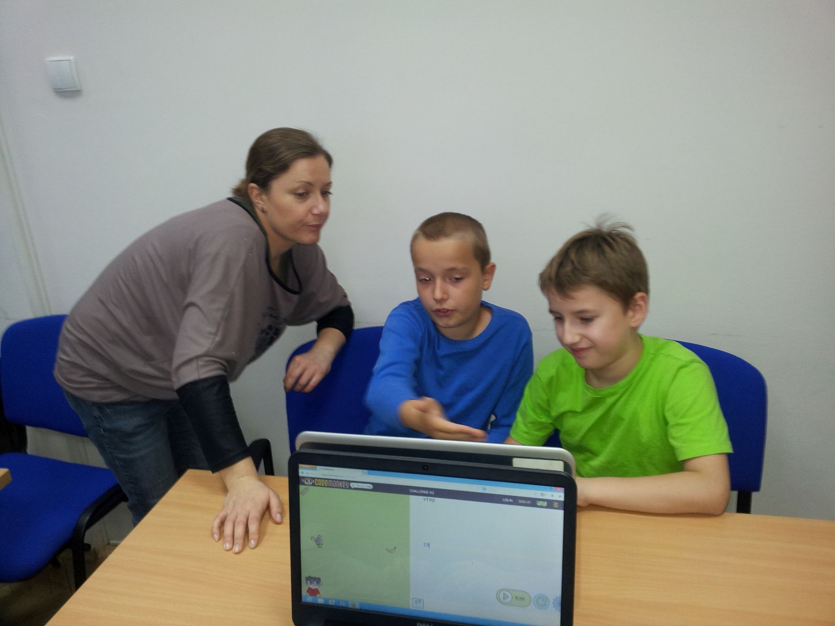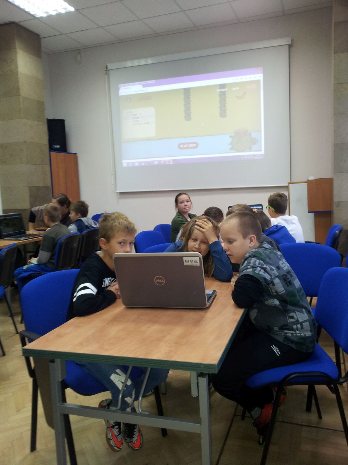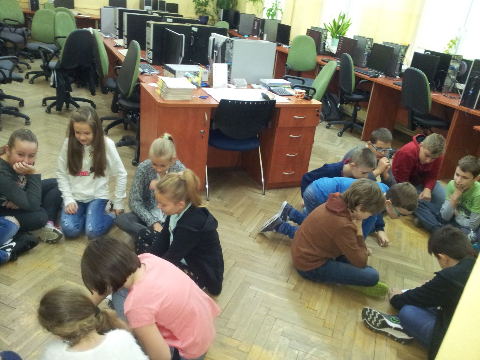 Tygodniem Kodowania. Uczniowie na zajęciach komputerowych oraz zajęciach technicznych uczyli się podstaw programowania także bez użycia komputera. Były to m. in. gry i zabawy okołoprogramistyczne, programowanie budowli przy pomocy plastikowych kubków, ale również zajęcia w ramach innowacji pedagogicznej "Scratch uczy programować". Wzięliśmy też udział w warsztatach przygotowanych przez Miejską Bibliotekę Publiczną im. Włodzimierza Pietrzaka w Turku, polegających na programowaniu na stronie Codemonkey.