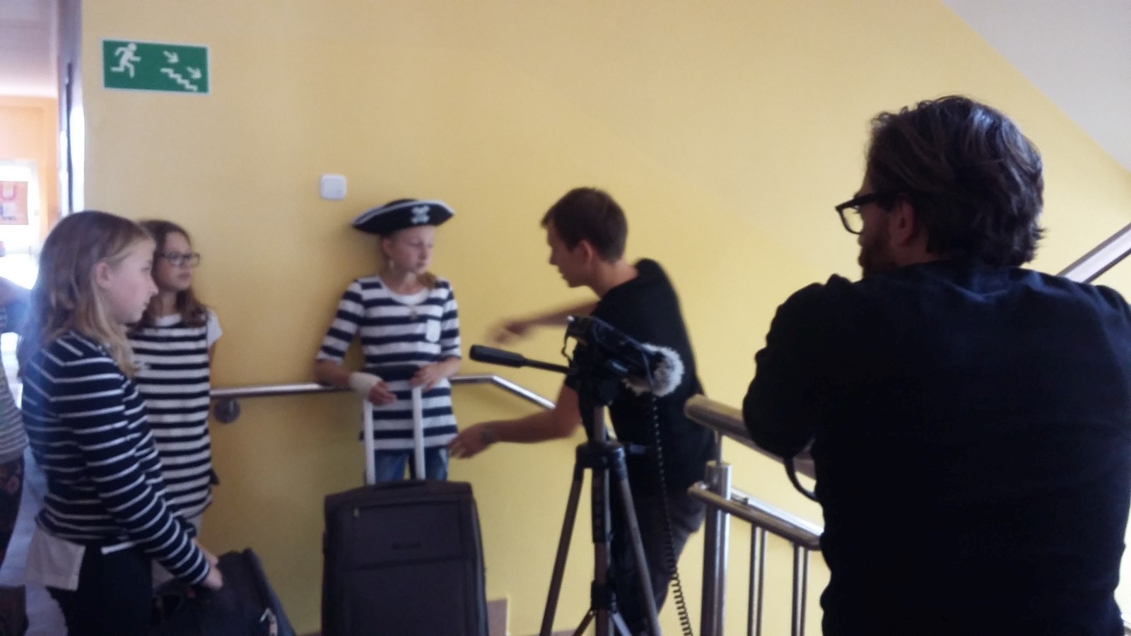 Jeszcze przed rozpoczęciem kręcenia pierwszej sceny Panie oprowadziły gości po całym budynku. Następnie na korytarzu parteru szkoły rozłożono niezbędny sprzęt: lampy, mikrofon, kamery. Gdy zaplanowano scenariusz, rozpoczęto pracę nad pierwszą sceną. Przy nagrywaniu musiała panować idealna cisza, dlatego spotkanie odbywało się w niedzielę. Początkiem filmu było wejście dzieci z bagażami do budynku szkoły, która pełniła rolę pensjonatu oraz szukanie swoich pokoi w nowo poznanym ośrodku. Kolejne sceny kręciły same dziewczyny, a chłopcy w tym czasie przebywali w oddzielnej sali. Wciąż zmieniało się miejsce akcji, więc przenoszono się z parteru na wyższe piętra budynku. W jednej ze scen chłopcy mieli za zadanie wykonać efekt burzy, więc doskonale sprawdził się pomysł uderzania ręcznikami o poręcz schodów. Nagrywanie scen przez dziewczyny, które bawiły się w piratów, trwało bardzo długo. Kiedy już zostały nakręcone, wszyscy przenieśli się na zamieniony w bezludną wyspę szkolny plac zabaw. Weronika, jako kapitan załogi, była bardzo szczęśliwa, że w końcu odpocznie od codziennych szkolnych obowiązków, a życie stanie się piękniejsze. Szczęście to zakłóciło kilku kanibali, których zagrali chłopcy. Piratka dzielnie obroniła Piętaszka, a złota rybka spełniła jej prośby o szczęśliwym powrocie do pensjonatu, a następnie do domu. Ostatnia scena kręcona była w szatni, gdzie chłopcy wesoło bawili się w ganianego.