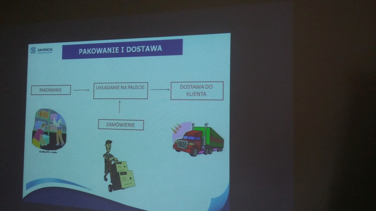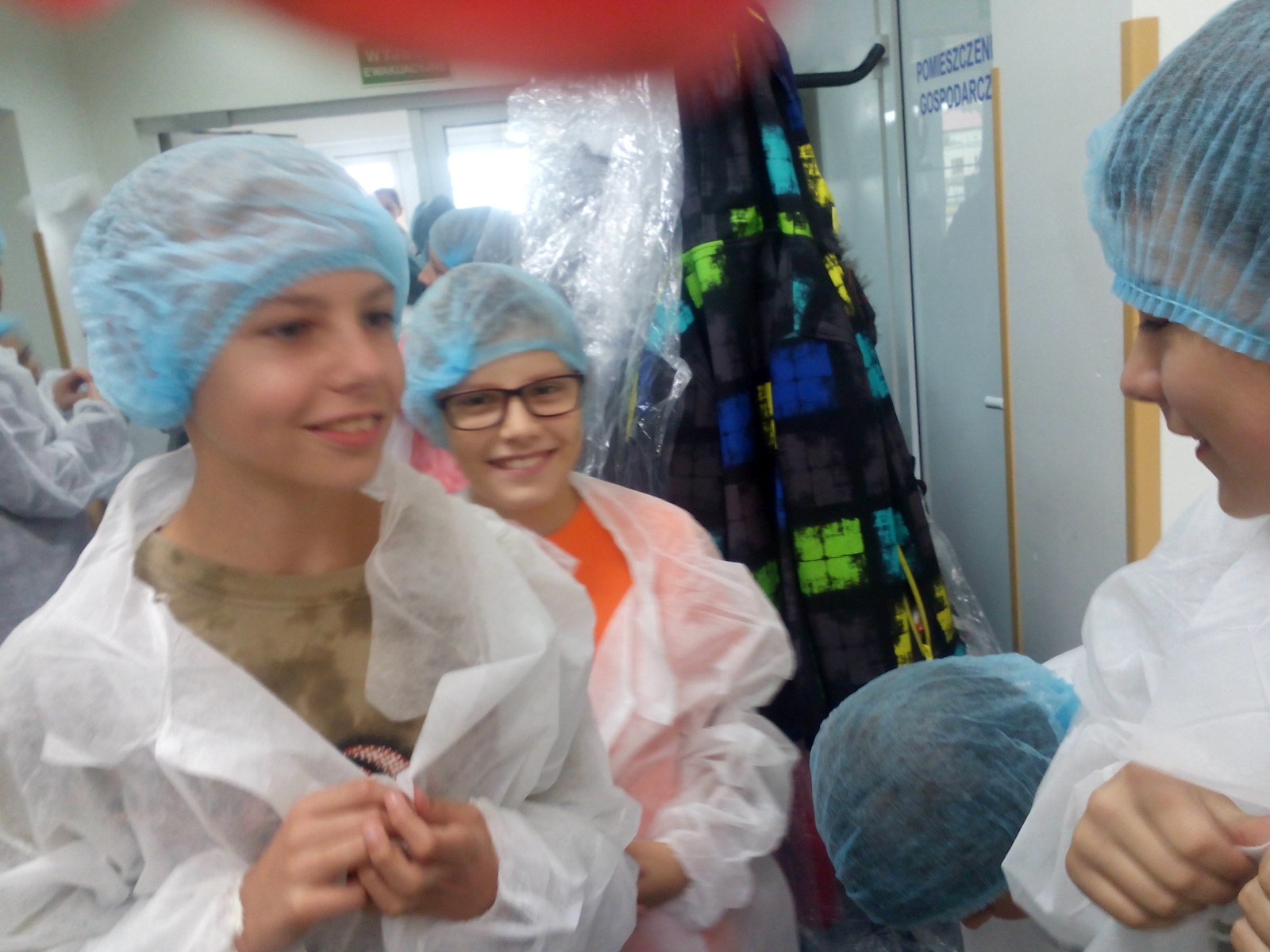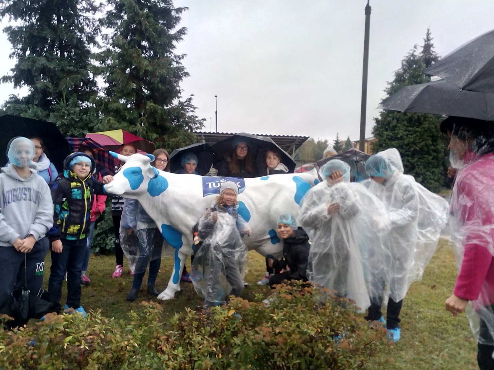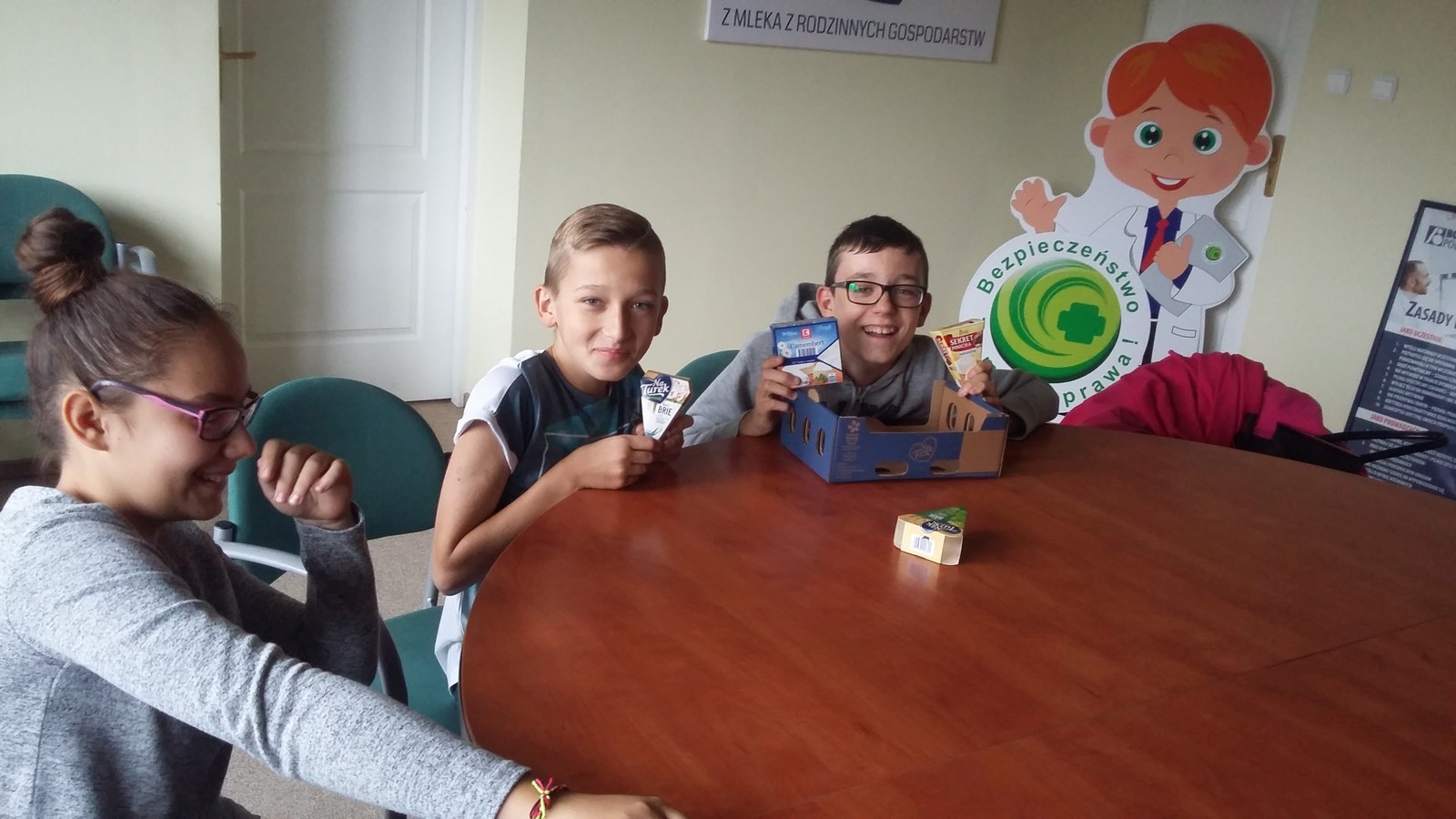 Spotkaliśmy się wszyscy przed szkołą o godzinie 11:25 i wyruszyliśmy na wyprawę. Padało, na szczęście mieliśmy parasole oraz płaszcze przeciwdeszczowe. Dotarliśmy do budynku, zdjęliśmy kurtki, a jedna z pracowniczek zaprowadziła nas do sali. W pokoju stał ogromny stół, przy którym usiedliśmy. Przedstawiciele firmy opowiedzieli nam o produkcji sera i osobach przy niej pracujących. Poznaliśmy historię zakładu. Zobaczyliśmy, w jaki sposób są wykonane opakowania. Dowiedzieliśmy się również, kto zarządza całą mleczarnią i poszczególnymi działami oraz jak i skąd dostarczane jest mleko. Następnie przeszliśmy do budynku, gdzie są wyrabiane sery. Musieliśmy ubrać specjalne czepki, płaszcze i osłony na buty, ponieważ zakład przywiązuje dużą wagę do czystości. Weszliśmy na korytarz, z którego mogliśmy obejrzeć produkcję. Pożegnaliśmy się z pracownikami i wróciliśmy do szkoły.