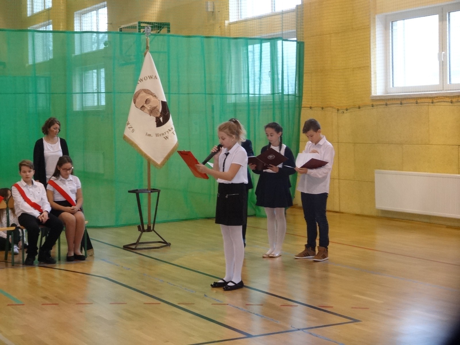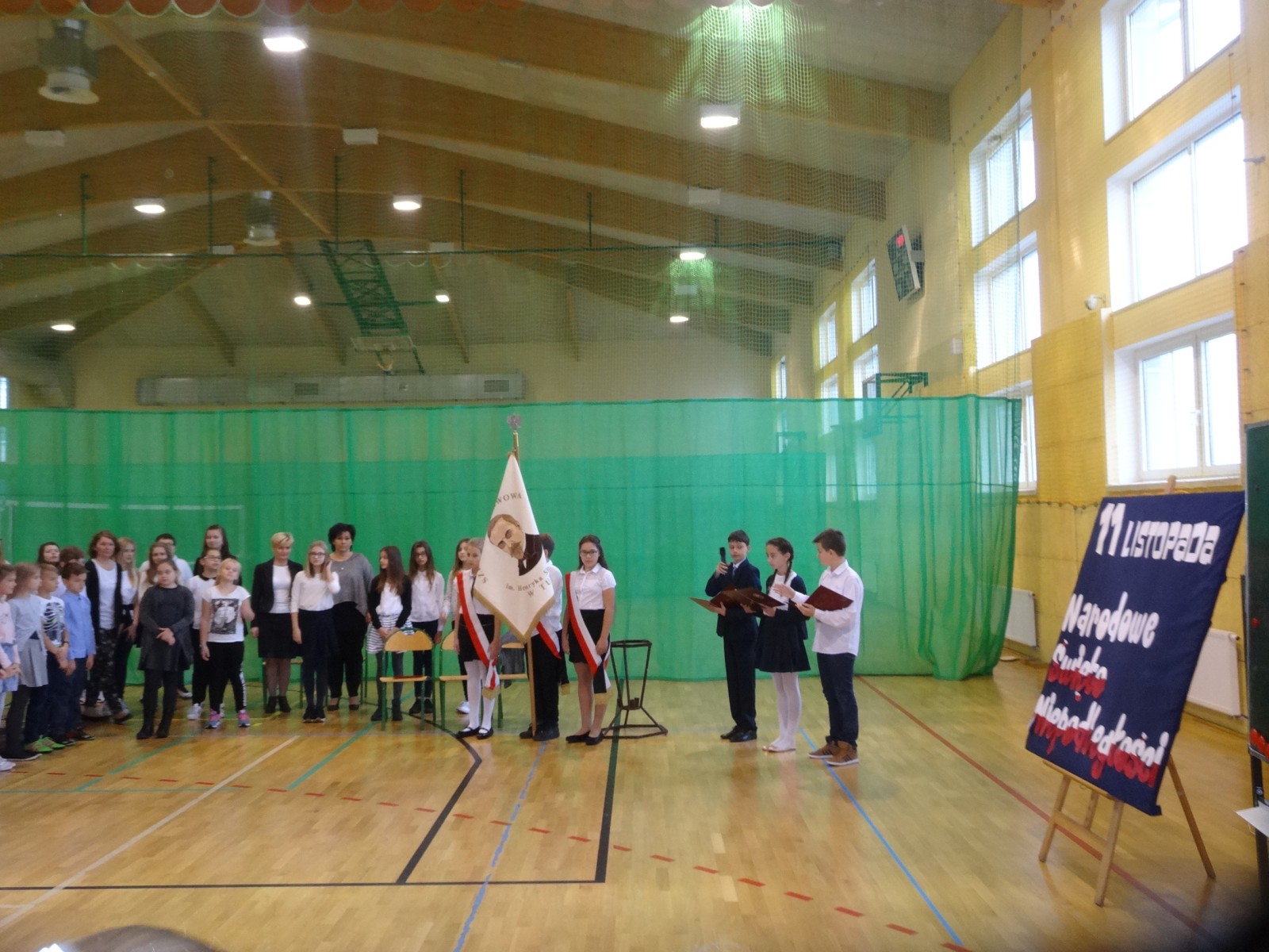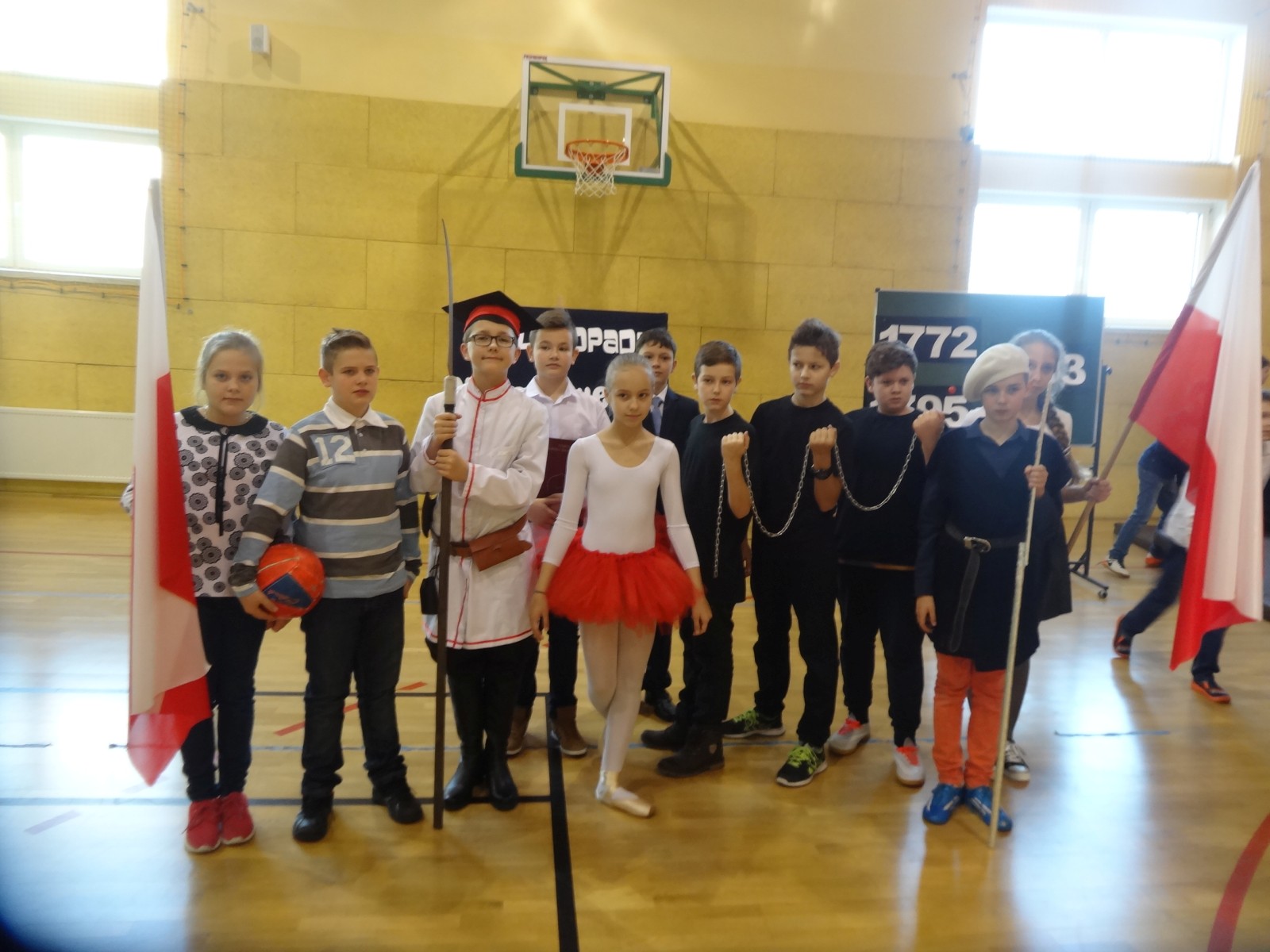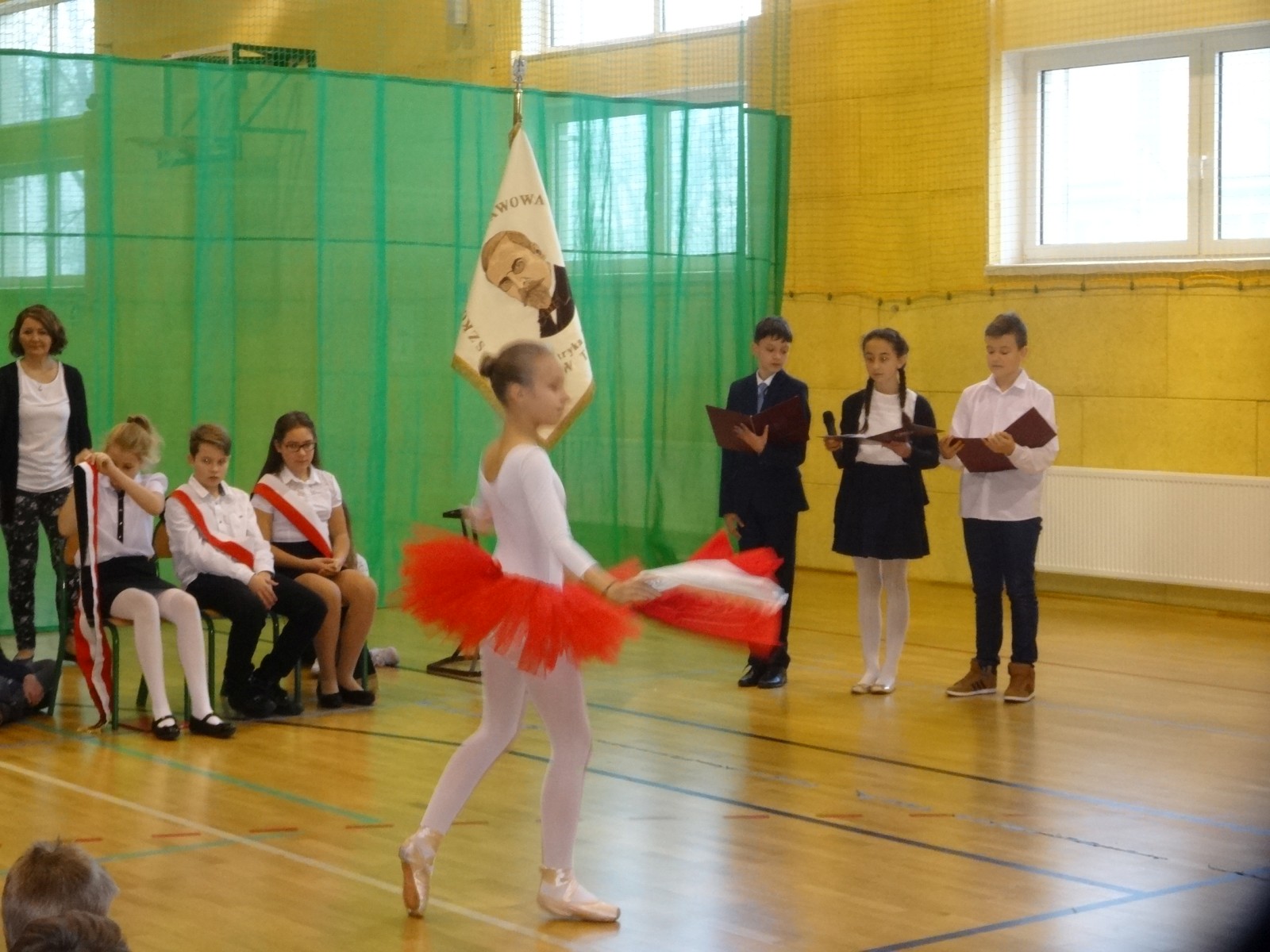 Na scenie można było zobaczyć upersonifikowaną Polskę. W tę rolę wcieliła się jedna z uczennic naszej szkoły Oliwia Bartosik. Głównym punktem przedstawienia był taniec klasyczny(balet) w wykonaniu tej uczennicy. Uczniowie odgrywali także rolę kosynierów i zaborców. W całym przedstawieniu nie zabrakło wierszy i popularnych pieśni patriotycznych.Apel miał uświadomić uczniom, jak ważnym i upragnionym przez naszych przodków wydarzeniem było odzyskanie przez Polskę niepodległości. Dzień 11 listopada stał się dla nas symbolem miłości do ojczyzny, walki o wolność, symbolem wiary i zwycięstwa.Apel przygotowali uczniowie klas VIc i kółka historycznego pod okiem nauczycielek p. Małgorzaty Pakuły i p. Bożeny Mielczarek.