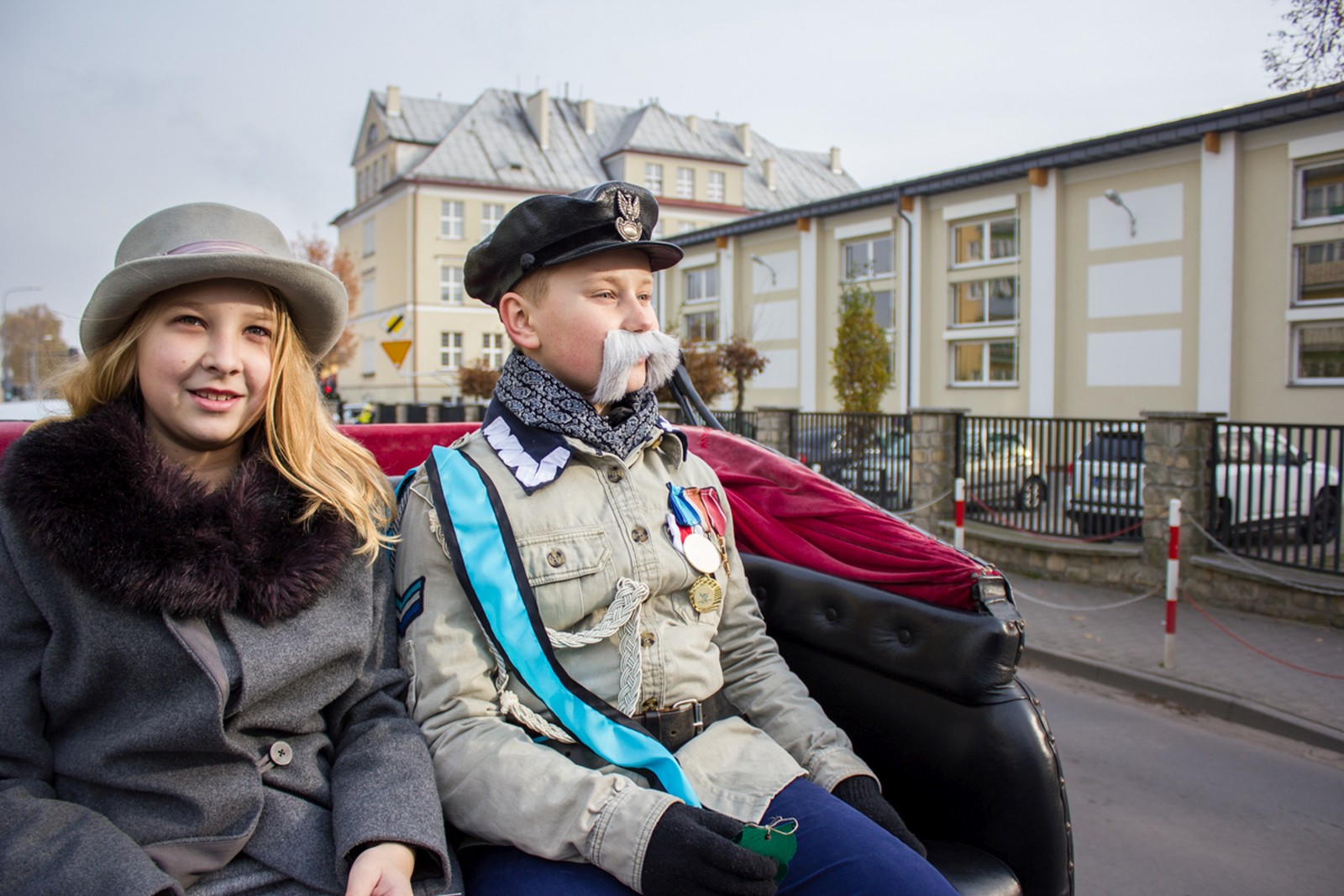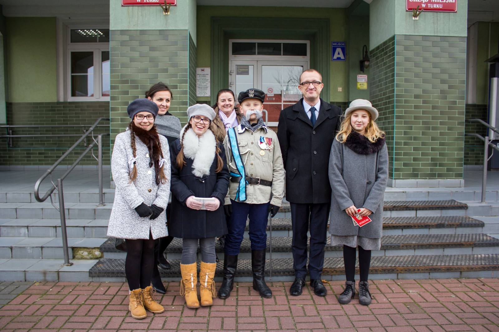 postaci historyczne marszałka Polski Józefa Piłsudskiego i jego rodzinę. Rolę Józefa Piłsudskiego zagrał Adam Białas, Aleksandry Piłsudskiej – Zuzia Skiba, córki Wandy – Michalina Rosiak, córki Jadwigi – Nina Grabara. Korzystają z uprzejmości p. Marcina Klinkiewicza – właściciela stadniny wybrali się bryczką na przejażdżkę po naszym mieście. Marszałek i jego rodzina pozdrawiali mieszkańców Turku z okazji 98 rocznicy odzyskania niepodległości przez Polskę. Rozdawali okolicznościowe pocztówki z podobizną Marszałka, życząc radosnego przeżywania święta. Uczniowie odwiedzili włodarza naszego miasta.