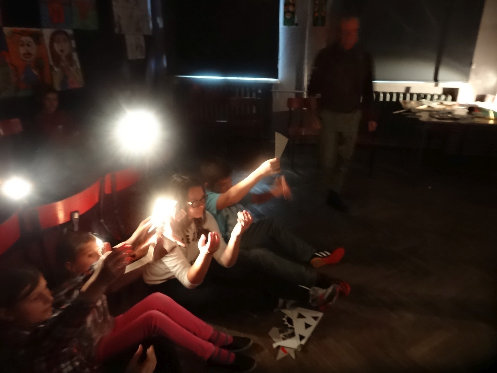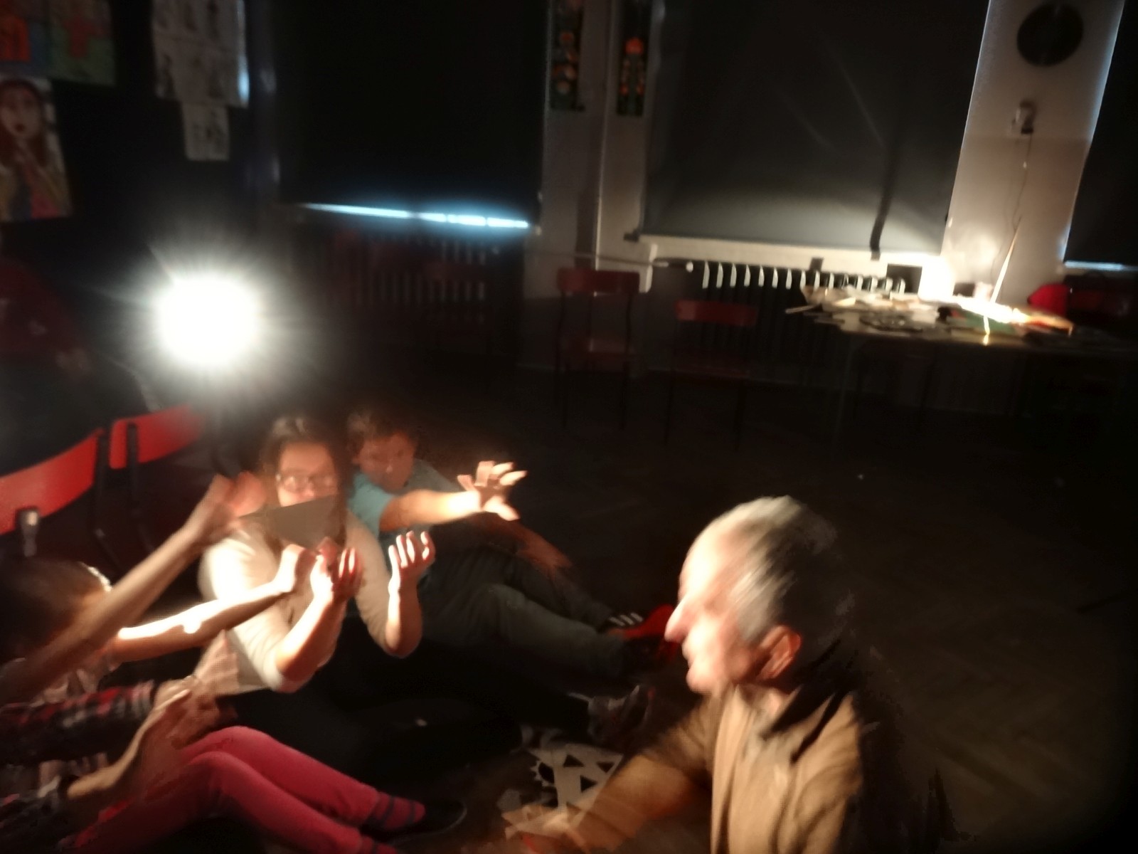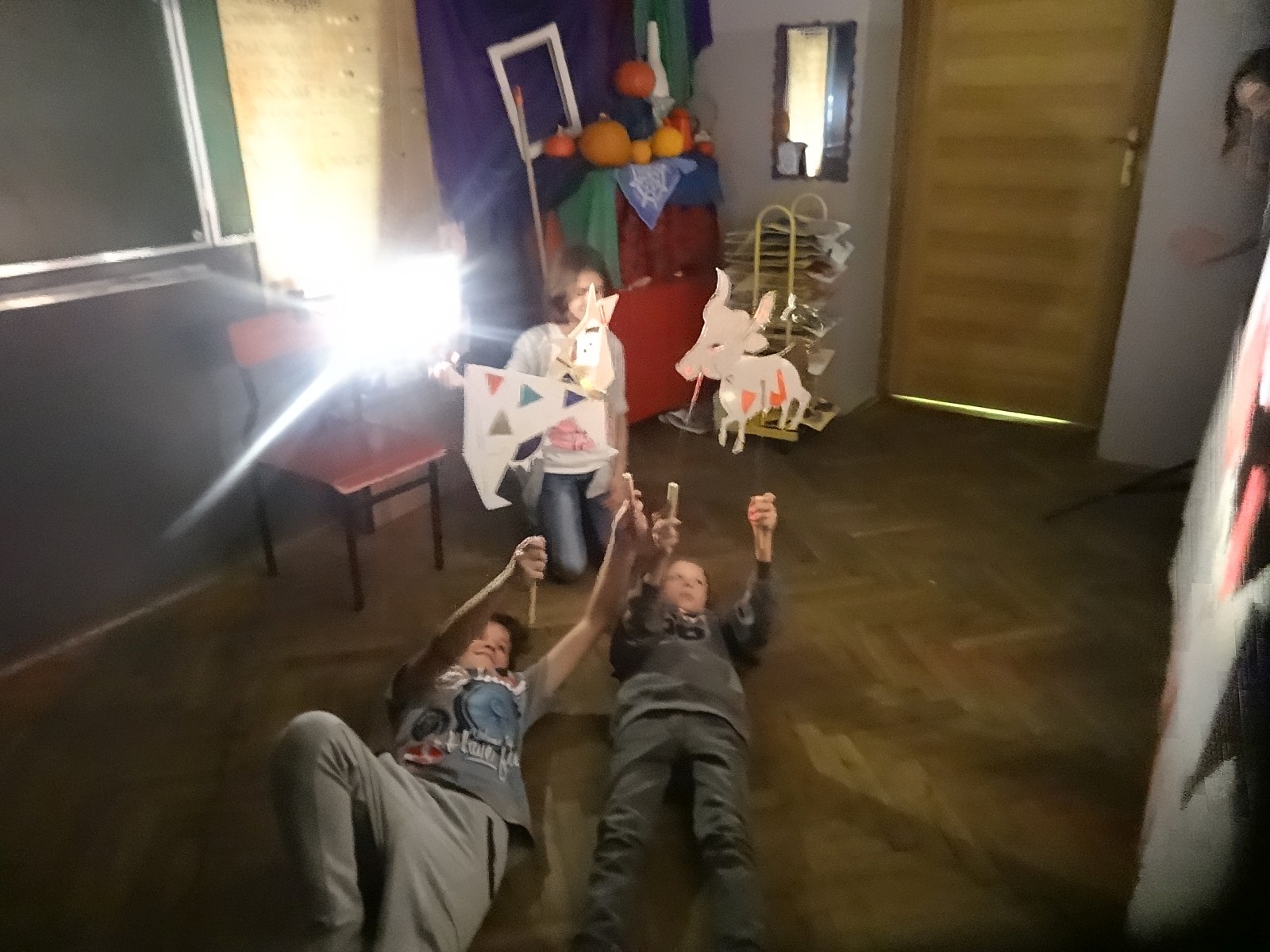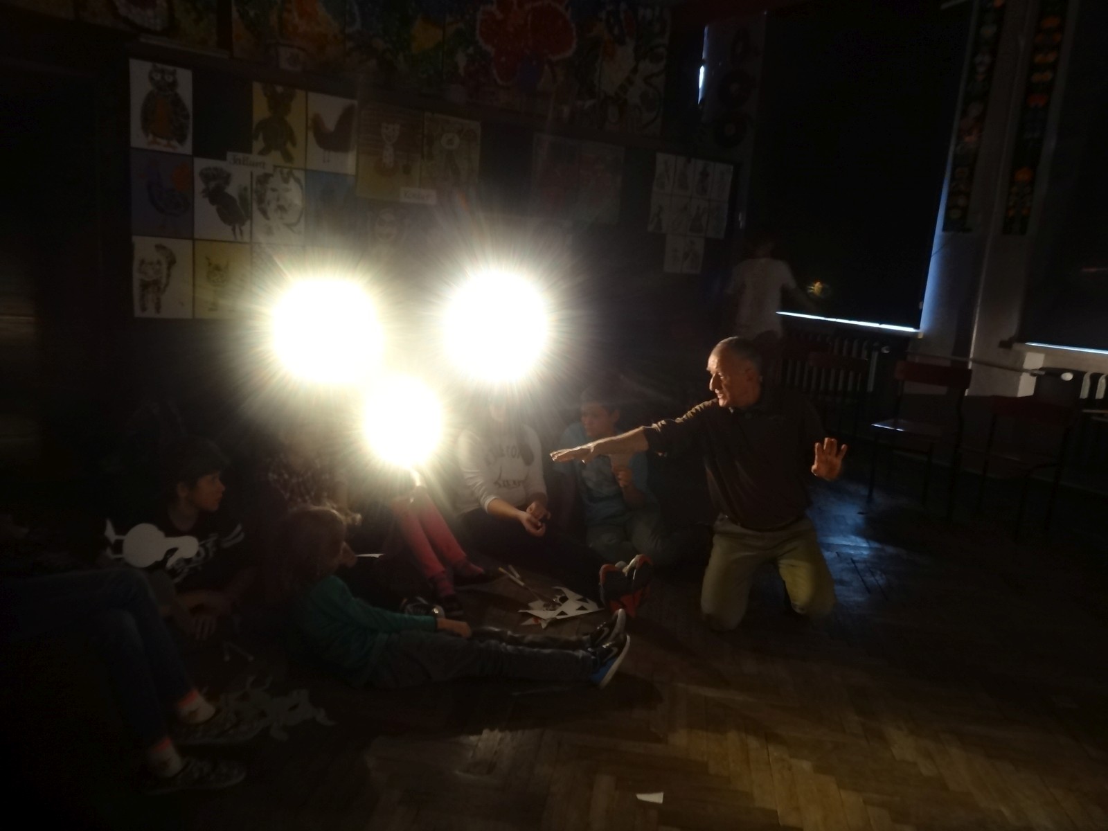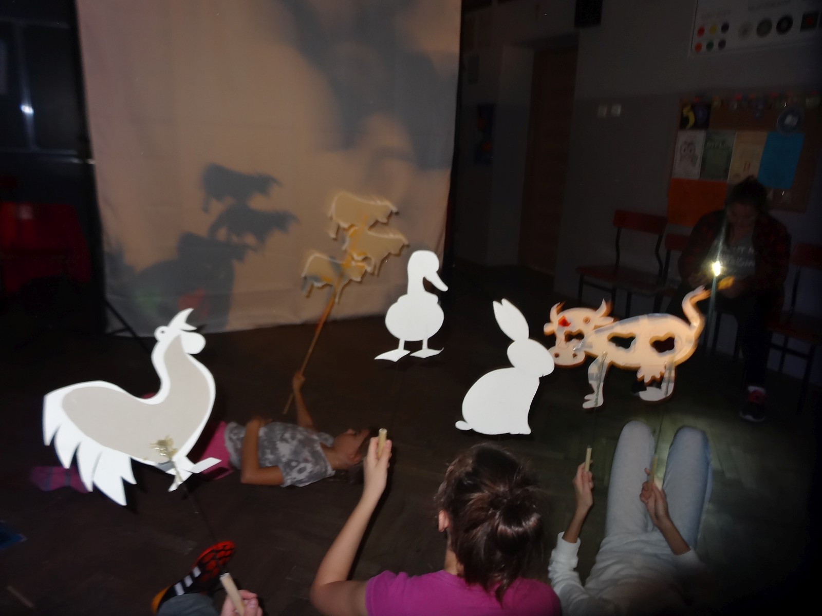 Dzieciom bardzo podoba się forma teatru cieni, warto było więc spróbować. Do tego grupa po raz pierwszy miała pojawić się na scenie i nie miała jeszcze śmiałości, dlatego łatwiej im było za pomocą obrazu wyrazić to, co czują, niż za pomocą słowa. Łatwiej im było schować się za maską, lalką czy ekranem. Warto podkreślić, że wszystkie rekwizyty dzieci wykonały samodzielnie. Teatr cieni dał duże możliwości, dzieci poznały wiele technik, ale przede wszystkim dobrze się bawiły. Odbyły się nocne zmagania ze sztuką. Pomysł nocowania w szkole był dla uczniów ekscytującą propozycją. Trudnej sztuki teatru cieni dzieci uczyły się także pod okiem instruktorów Poznańskiej Fundacji Artystycznej.