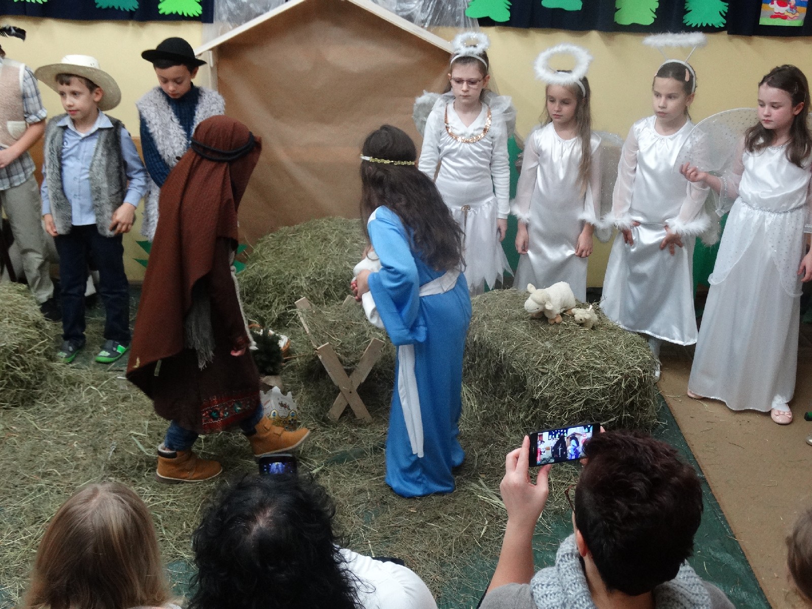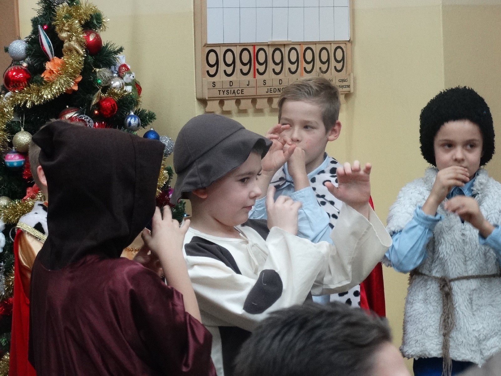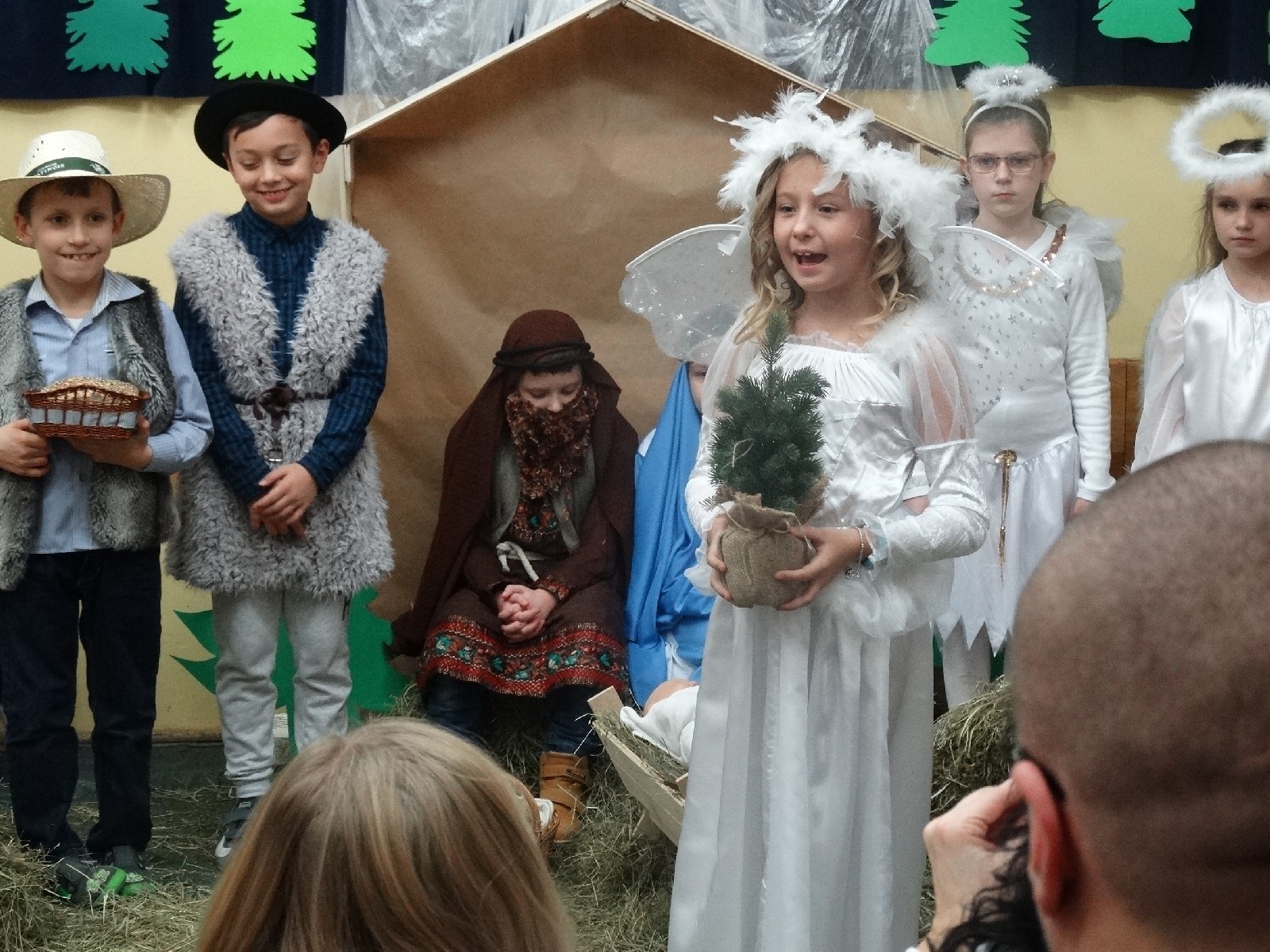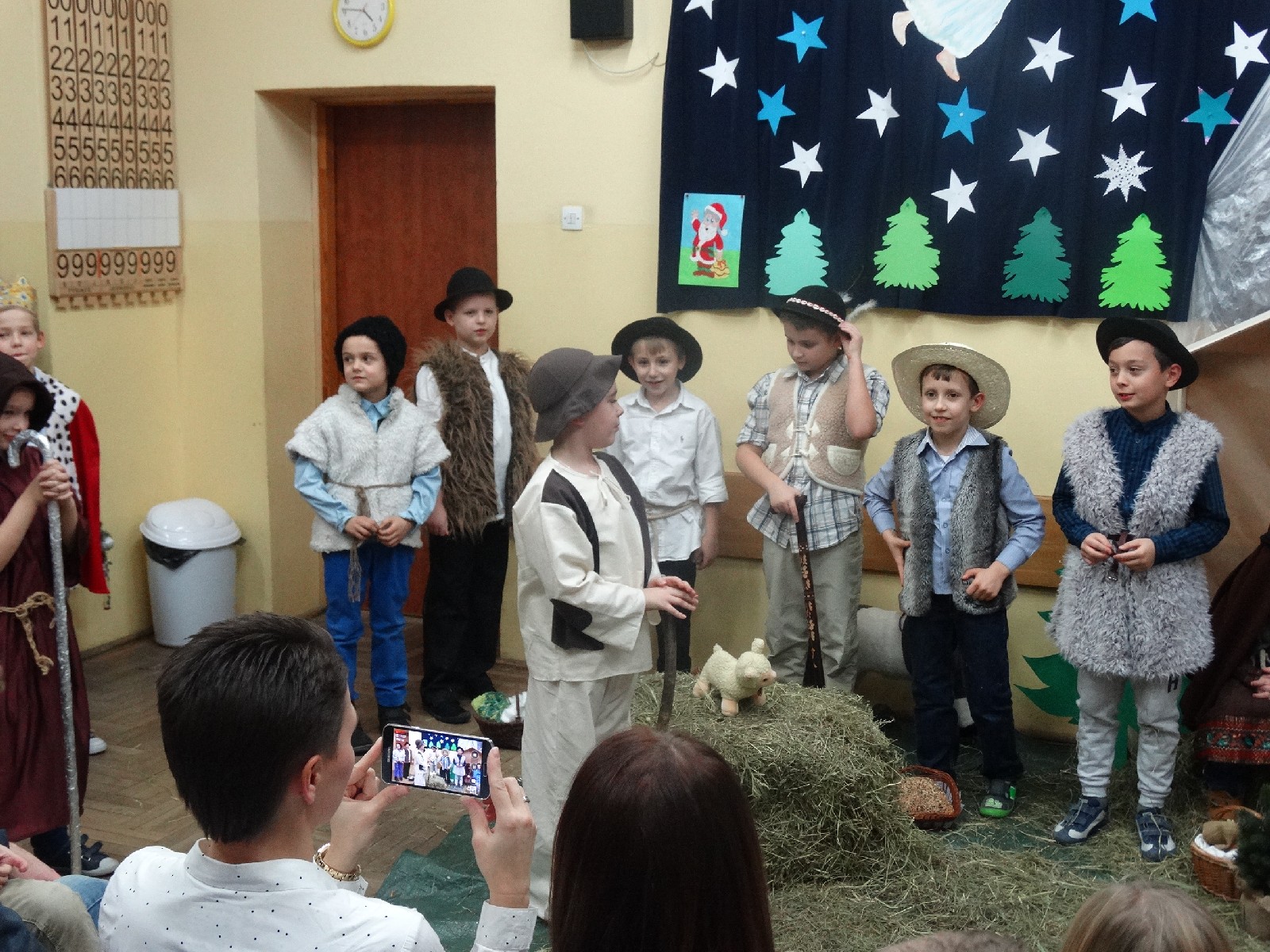 Święta Bożego Narodzenia to wyjątkowy okres w roku, na który długo czekają nie tylko dorośli, ale również dzieci. W piątek 16grudnia tradycyjnie, jak co roku odbyły się nasze klasowe Jasełka Bożonarodzeniowe. Przepiękna sceneria, nastrojowe kolędy, pastorałki i piosenki świątecznew wykonaniu dzieci stworzyły niepowtarzalny, radosny nastrój wprowadzający w atmosferę Świąt Bożego Narodzenia.Dzieci w specjalnie przygotowanych strojach z dużym zaangażowaniem i przejęciem odtwarzały swoje role. Po raz kolejny mogliśmy przeżyć historię narodzin Jezusa.Był św. Józef, Maryja, aniołowie,pasterze ze swoimi darami oraz Trzej Królowie, którzy oddali hołd małemu dzieciątku. Rodzicom występ bardzo się podobał, o czym świadczyły gromkie brawa. Na koniec zgodnie z tradycją były świąteczne życzenia i słodki poczęstunek.