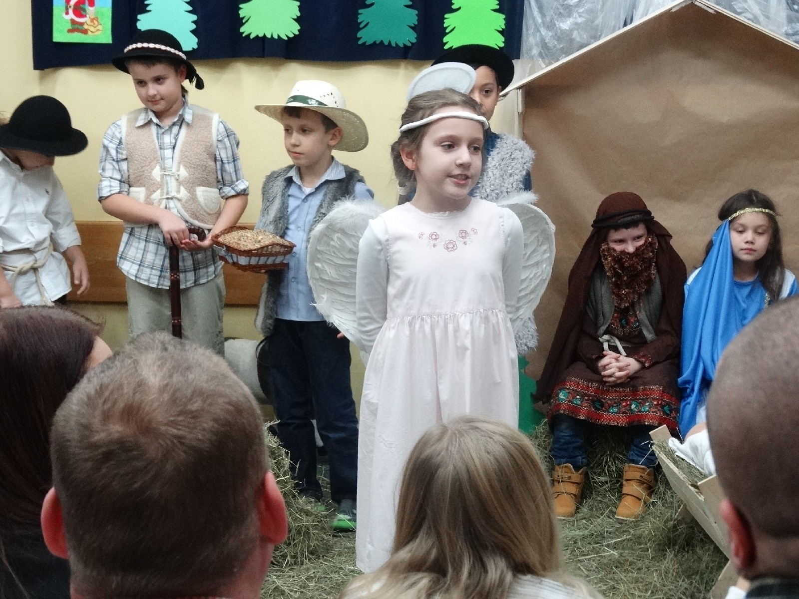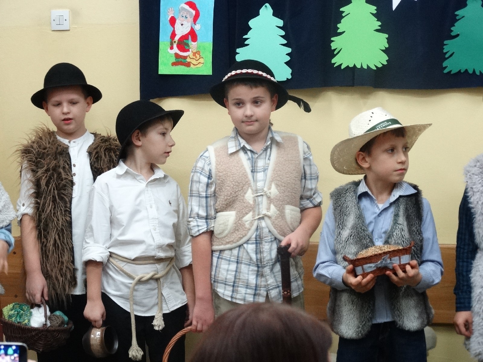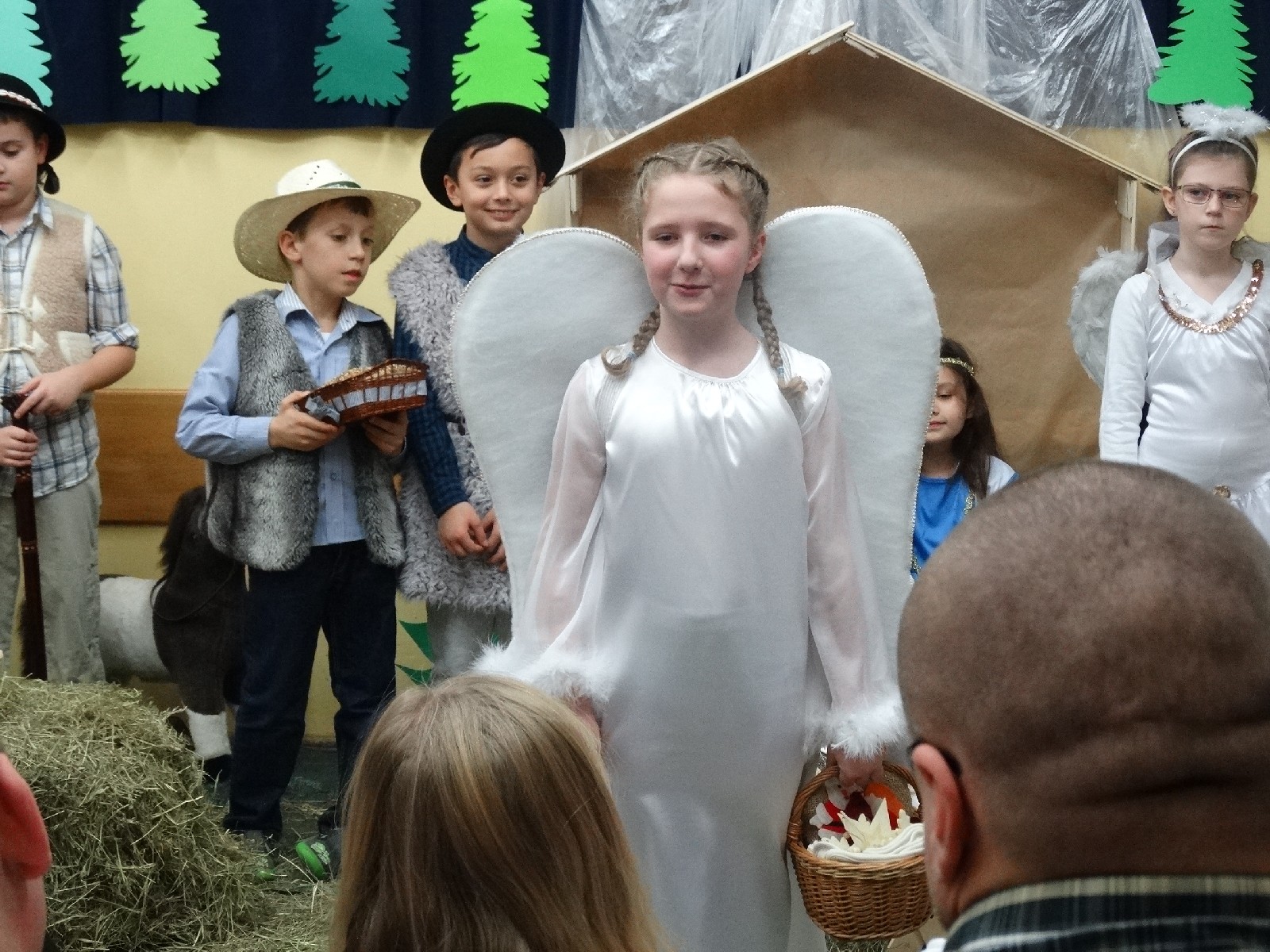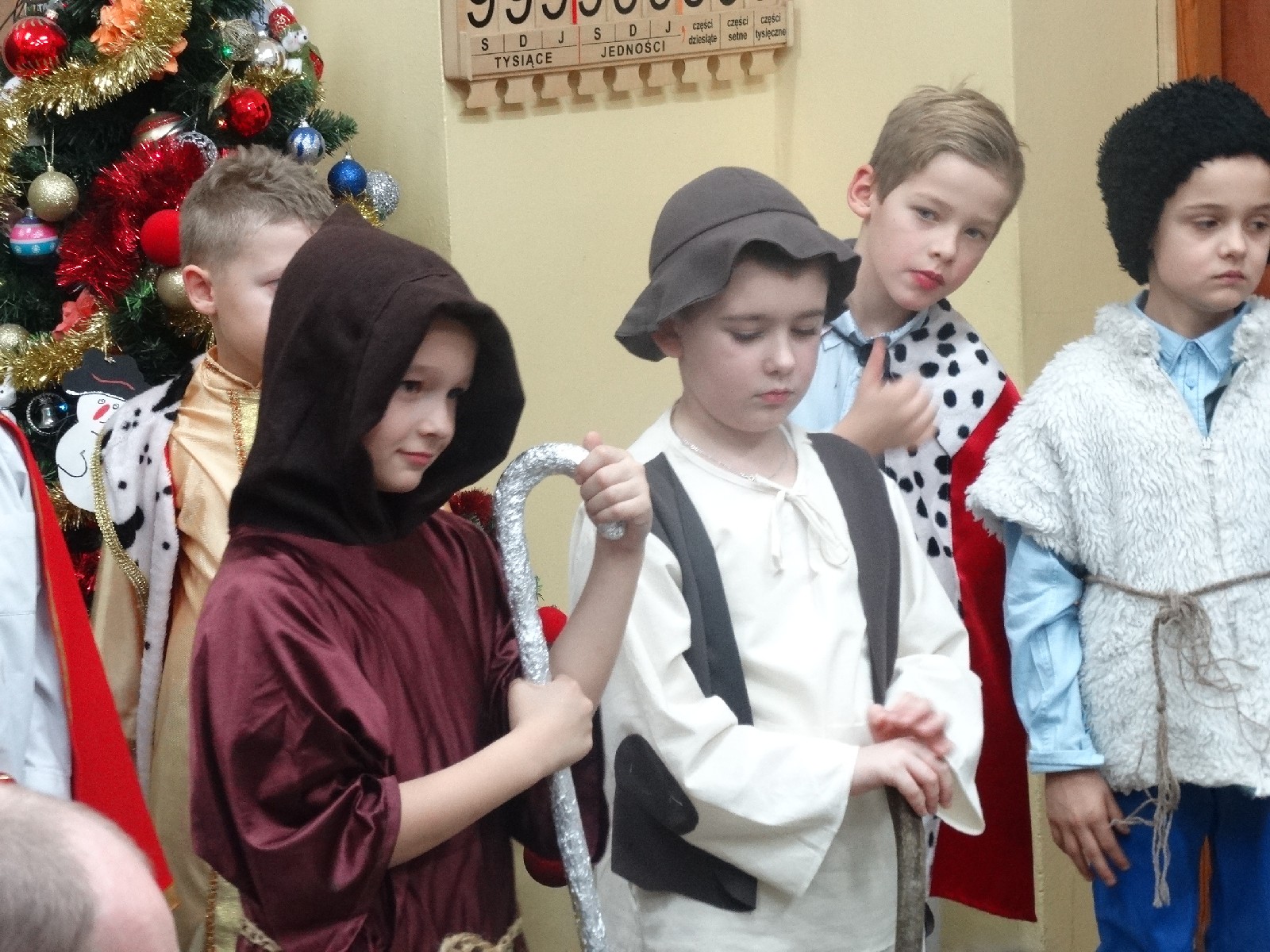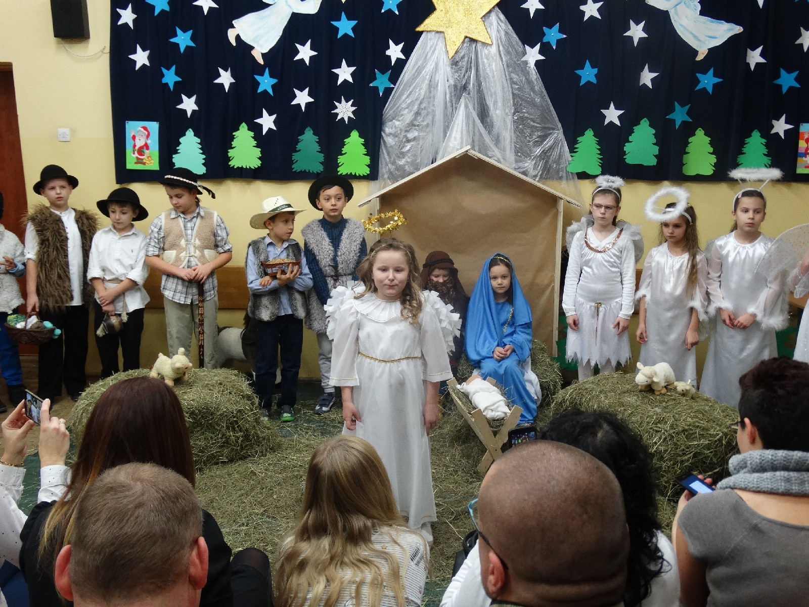 Święta Bożego Narodzenia to wyjątkowy okres w roku, na który długo czekają nie tylko dorośli, ale również dzieci. W piątek 16grudnia tradycyjnie, jak co roku odbyły się nasze klasowe Jasełka Bożonarodzeniowe. Przepiękna sceneria, nastrojowe kolędy, pastorałki i piosenki świątecznew wykonaniu dzieci stworzyły niepowtarzalny, radosny nastrój wprowadzający w atmosferę Świąt Bożego Narodzenia.Dzieci w specjalnie przygotowanych strojach z dużym zaangażowaniem i przejęciem odtwarzały swoje role. Po raz kolejny mogliśmy przeżyć historię narodzin Jezusa.Był św. Józef, Maryja, aniołowie,pasterze ze swoimi darami oraz Trzej Królowie, którzy oddali hołd małemu dzieciątku. Rodzicom występ bardzo się podobał, o czym świadczyły gromkie brawa. Na koniec zgodnie z tradycją były świąteczne życzenia i słodki poczęstunek.