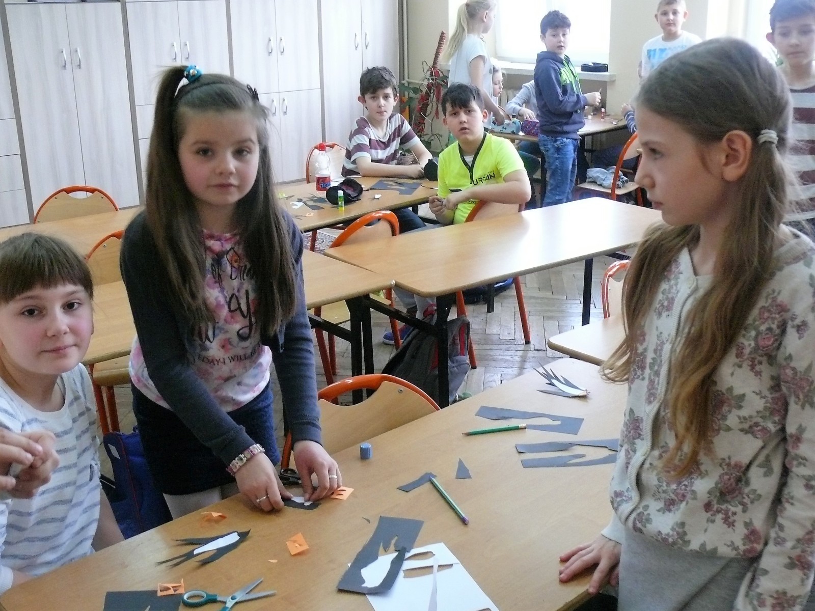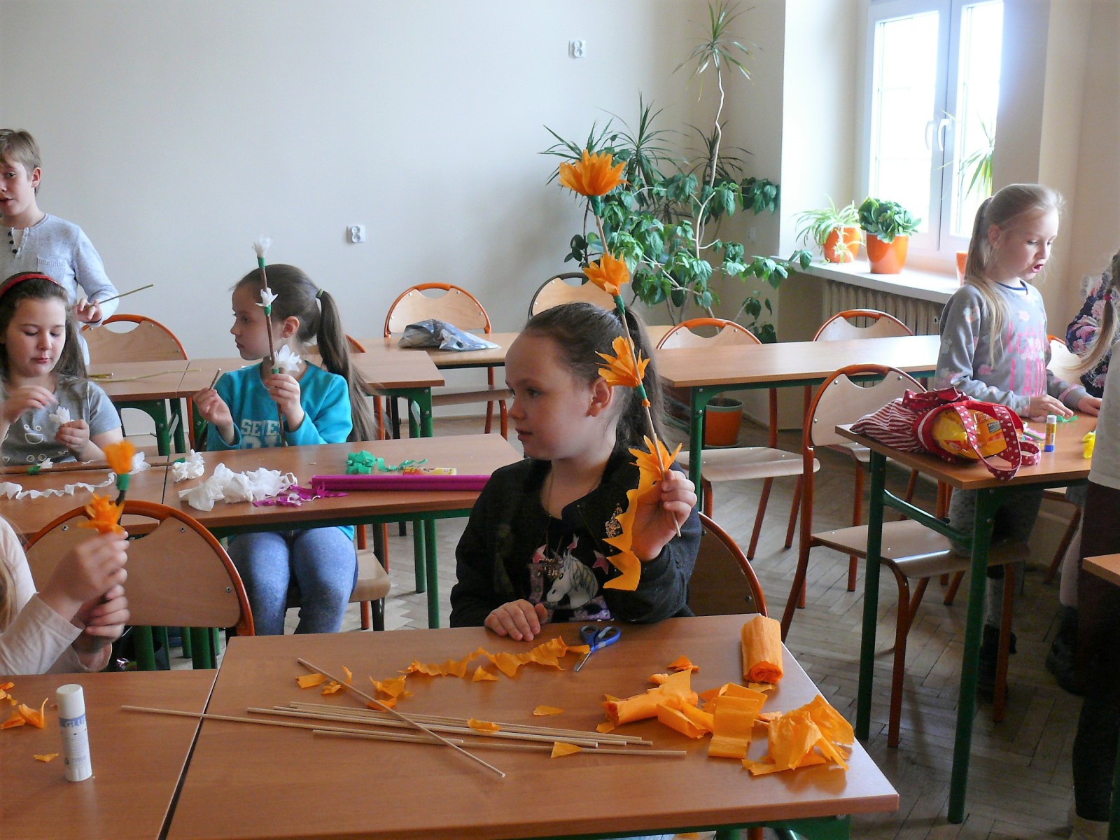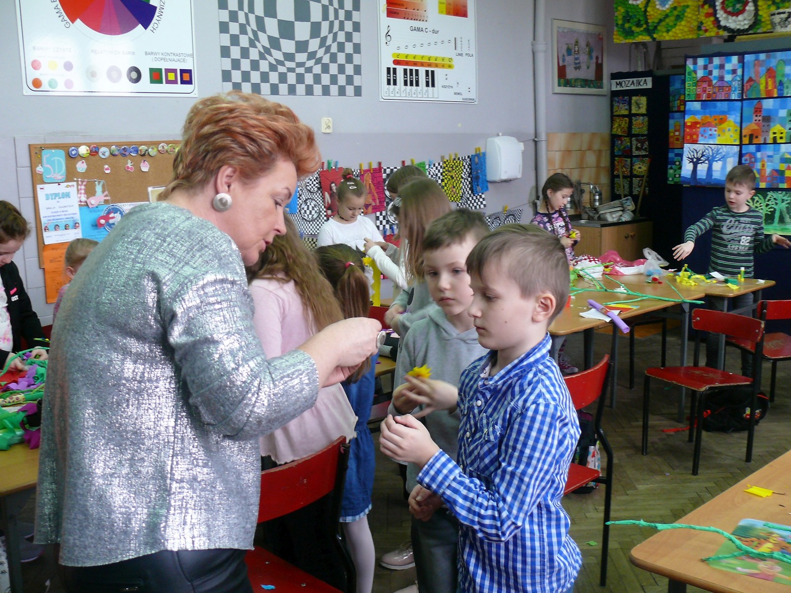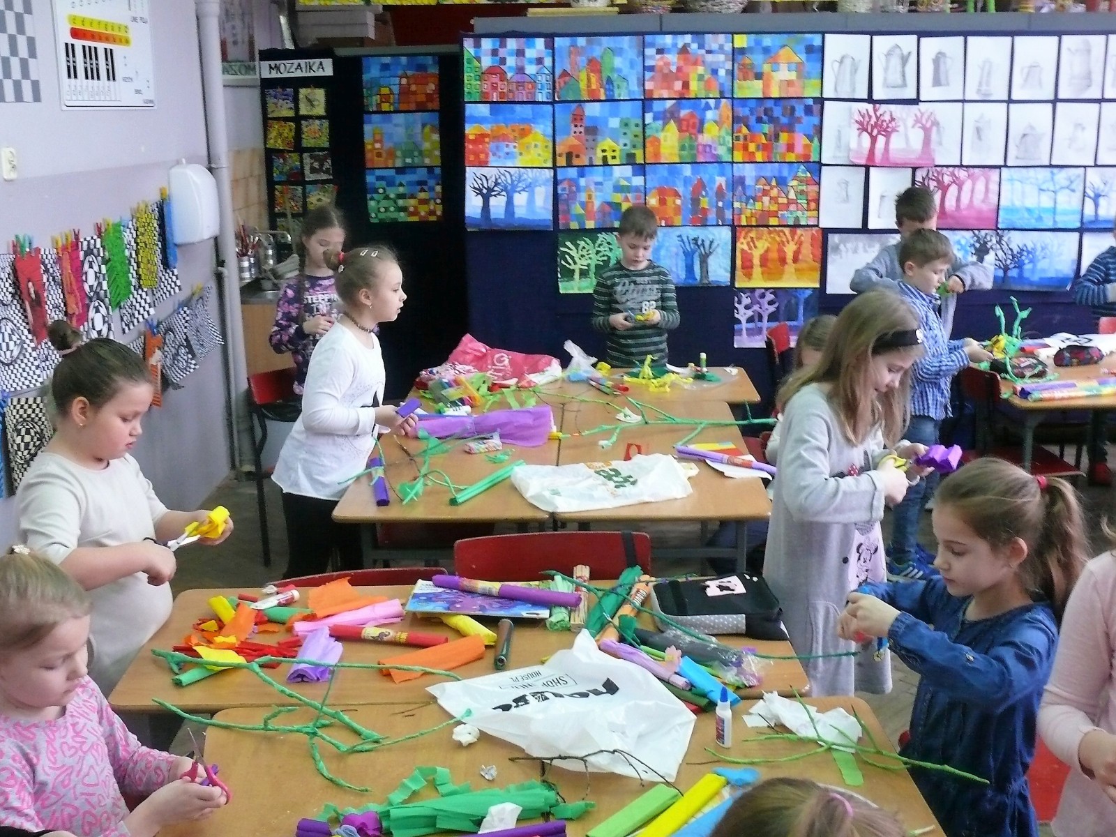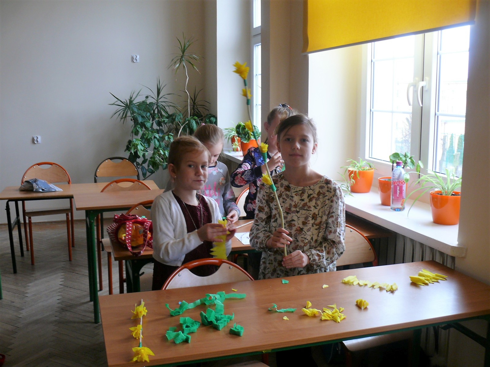 Ten szczególny dzień w roku dzieci rozpoczęły od wykonania prac plastycznych: płaskich i przestrzennych. Powstały piękne wiosenne gałązki, krajobrazy i radosne jaskółki. Atrakcją tego dnia było wyjście do kina na projekcję filmu ”Ostatni smok świata”. Święto Wiosny w naszej Jedyneczce upłynęło wszystkim radośnie i kolorowo.