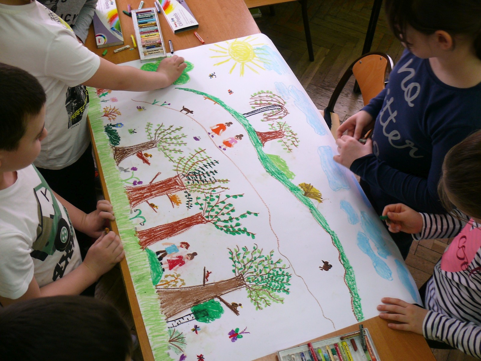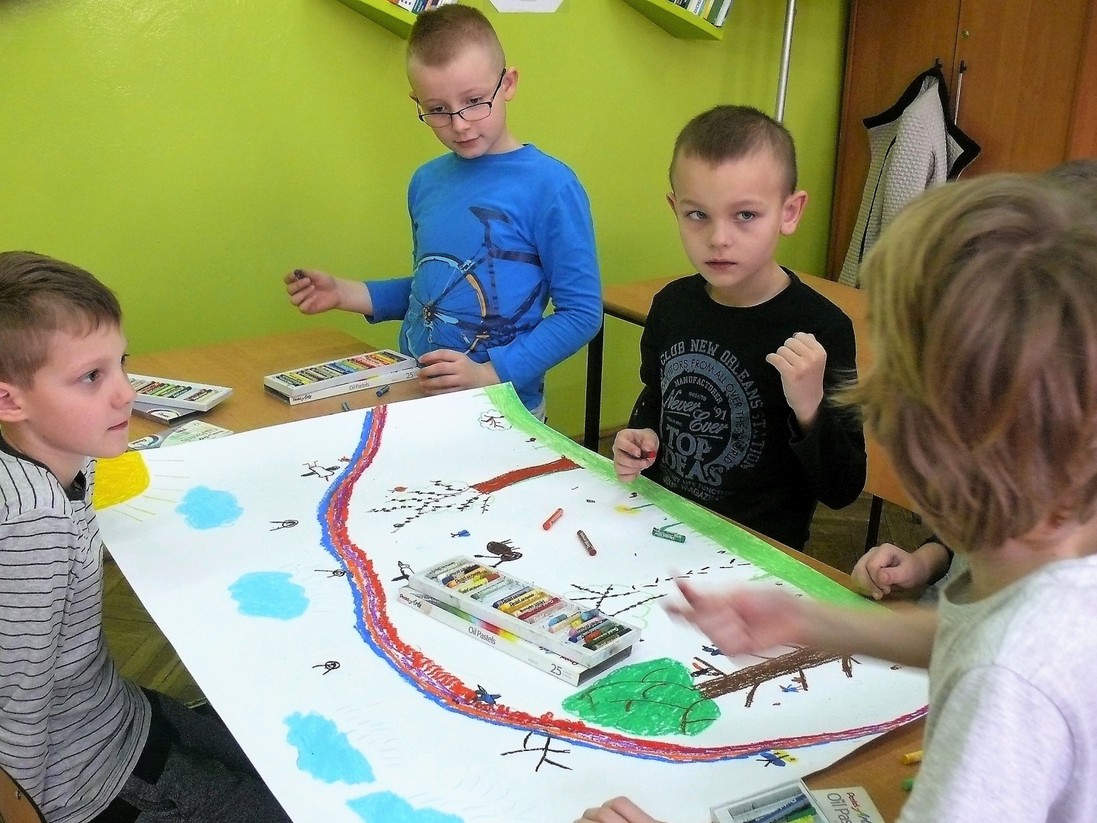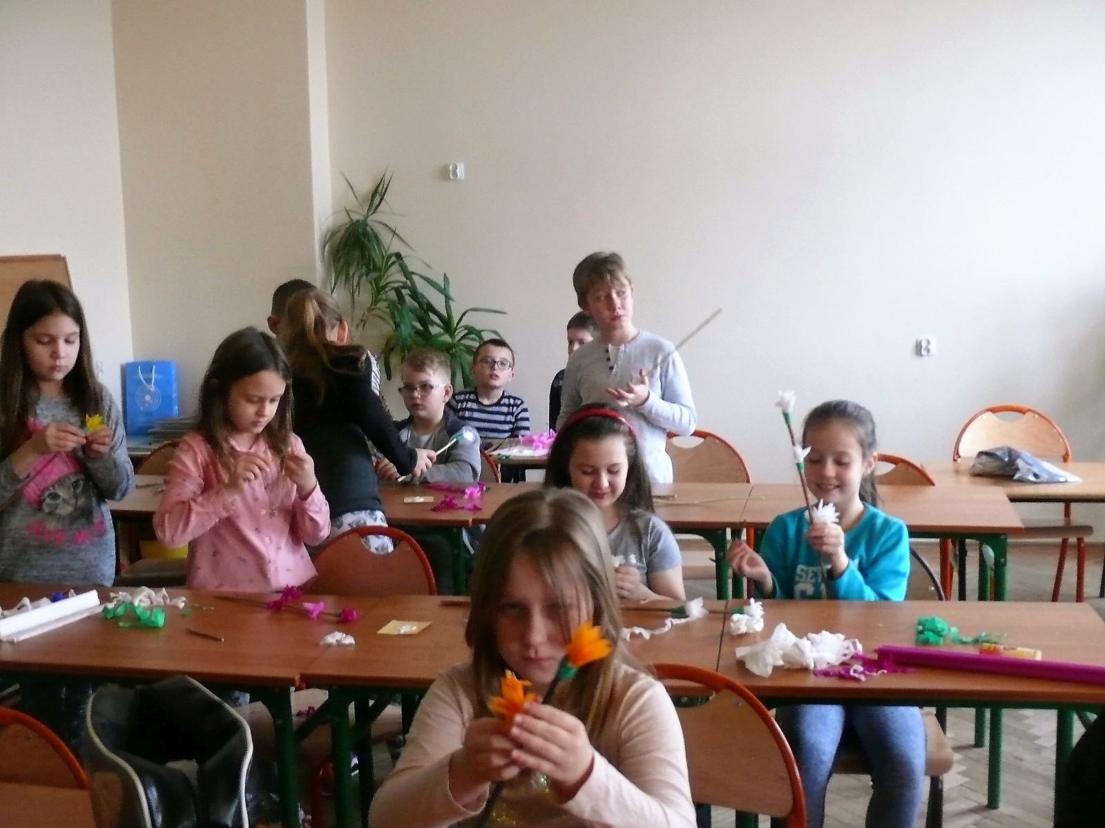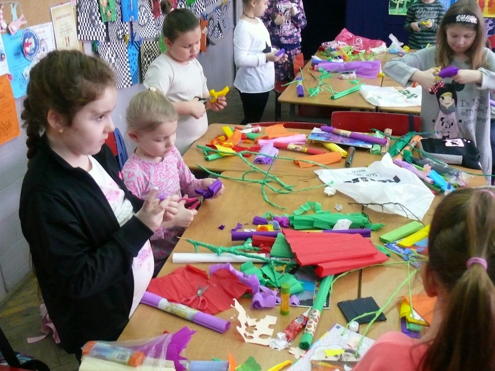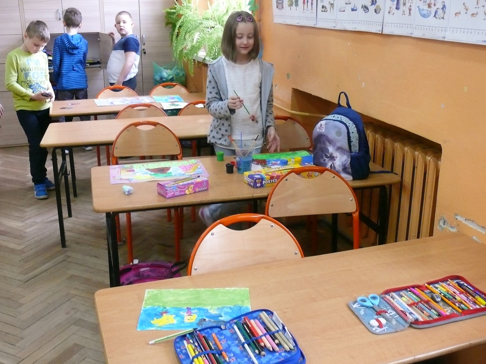 Ten szczególny dzień w roku dzieci rozpoczęły od wykonania prac plastycznych: płaskich i przestrzennych. Powstały piękne wiosenne gałązki, krajobrazy i radosne jaskółki. Atrakcją tego dnia było wyjście do kina na projekcję filmu ”Ostatni smok świata”. Święto Wiosny w naszej Jedyneczce upłynęło wszystkim radośnie i kolorowo.