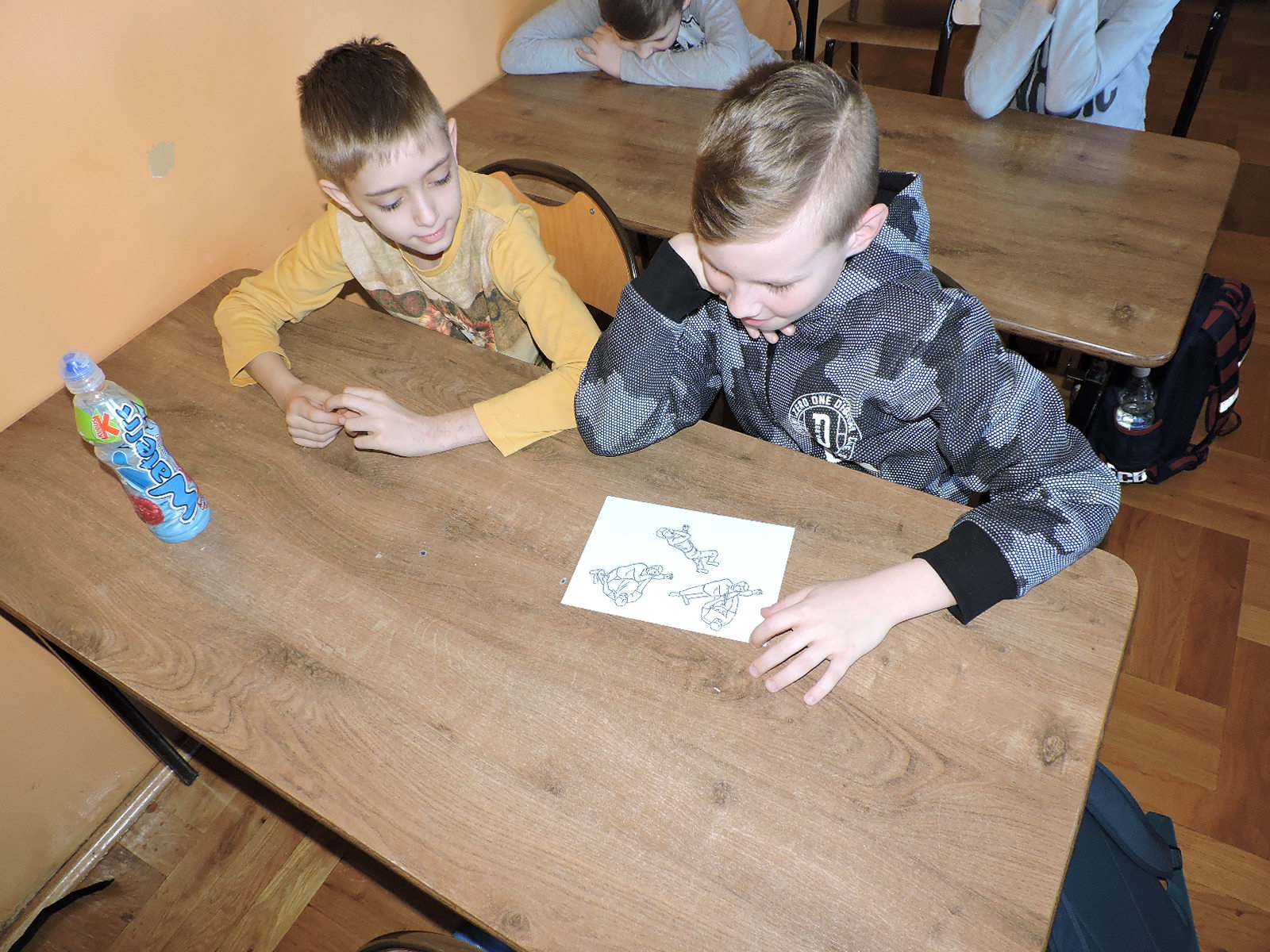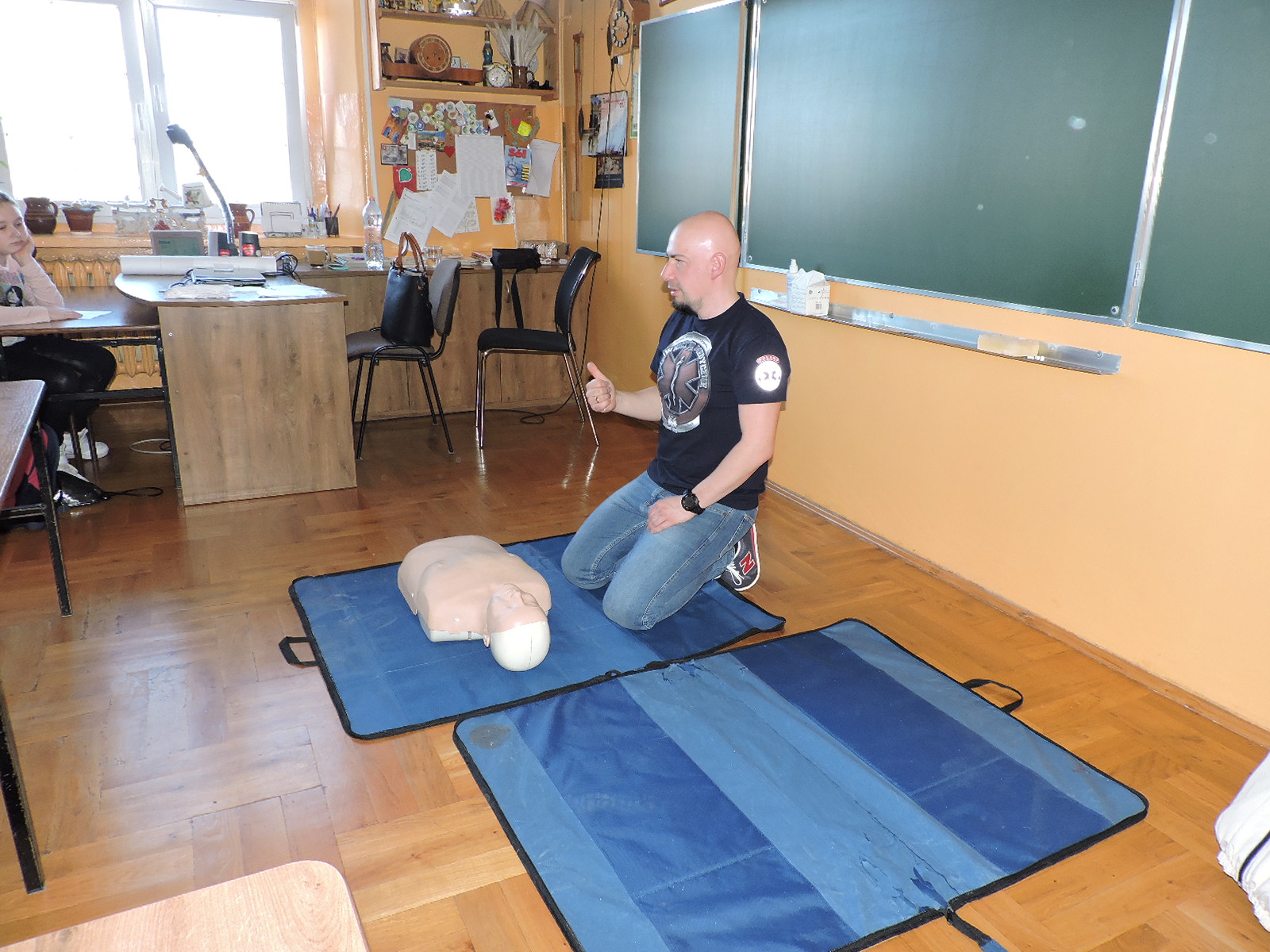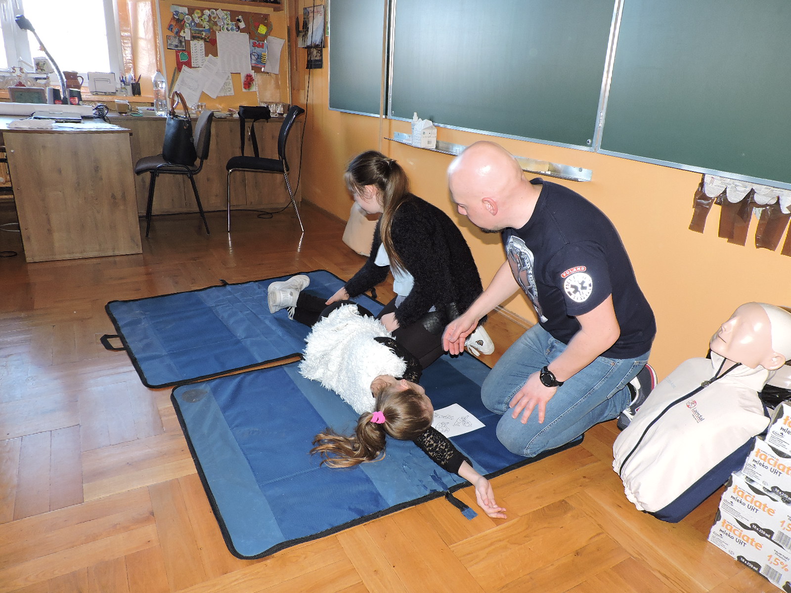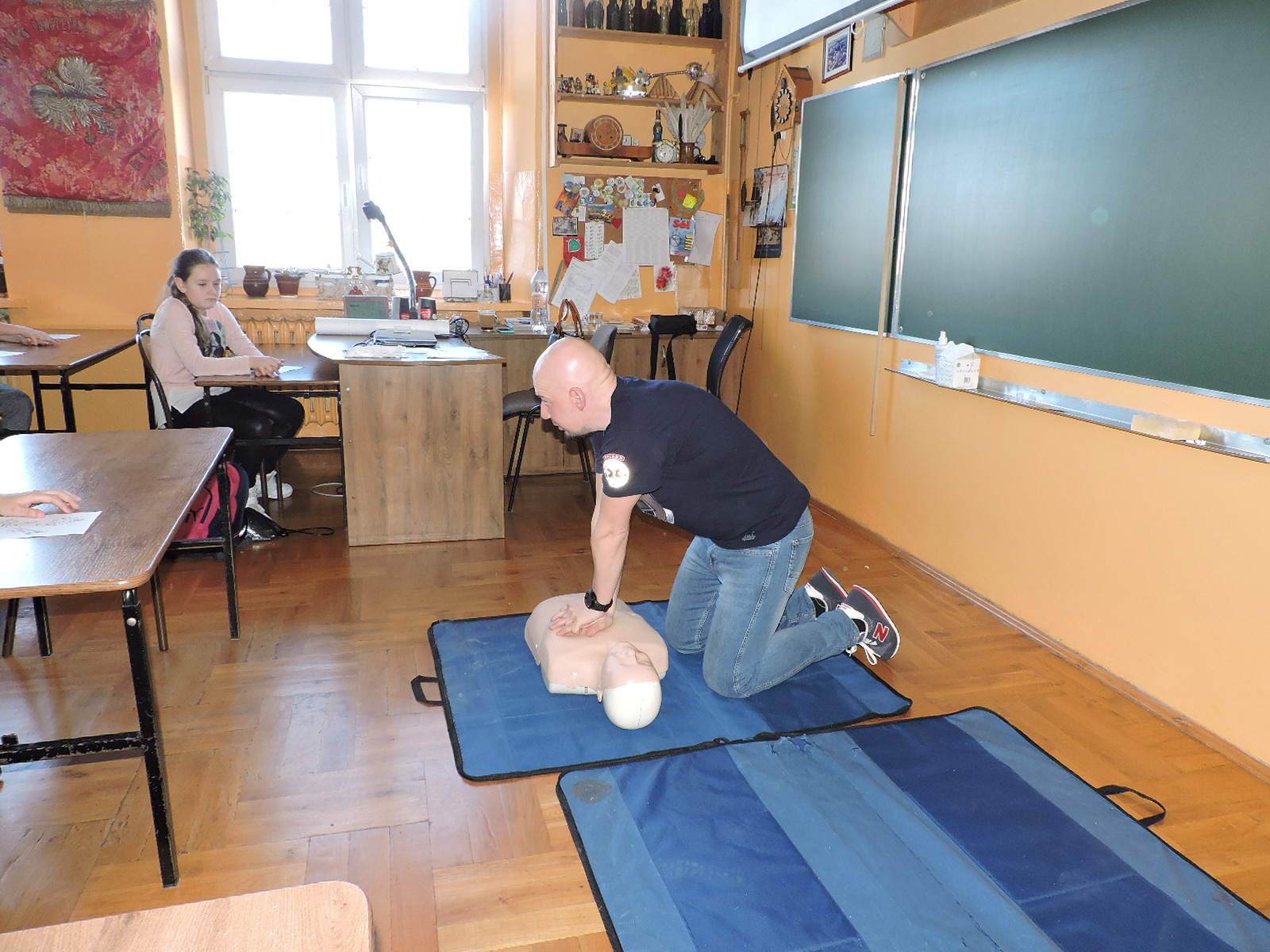 Dowiedzieliśmy się: jak postępować w sytuacji oparzenia, omdlenia, złamania czy zwichnięcia?, jak wygląda pozycja bezpieczna?, jak reanimować osobę nieprzytomną z brakiem oddechu?. Była to lekcja nie tylko teoretyczna, choć mieliśmy wiele pytań, ale również praktyczna. Wiemy już jak zachować się podczas wypadku oraz jak udzielić pierwszej pomocy osobie poszkodowanej.