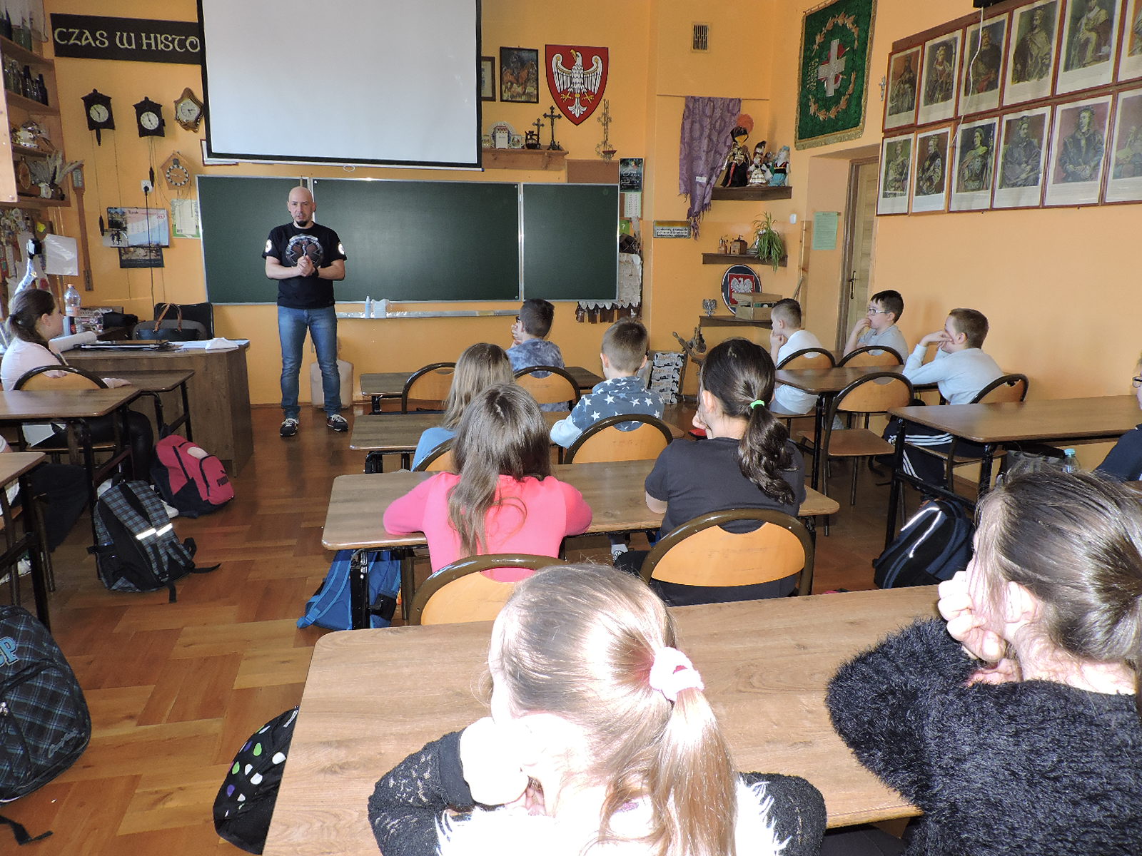 28 marca 2017 roku klasy 4a, 4b, 4c, 4d brały udział w zajęciach przyrodniczych z pierwszej pomocy. Nasze zaproszenie przyjął pan Łukasz Maciejewski – ratownik medyczny, pielęgniarz Wojewódzkiego Szpitala Zespolonego w Koninie. Pan Łukasz szkolił nas jak postępować w sytuacjach wypadków, które zdarzają się w domu jak i poza domem.