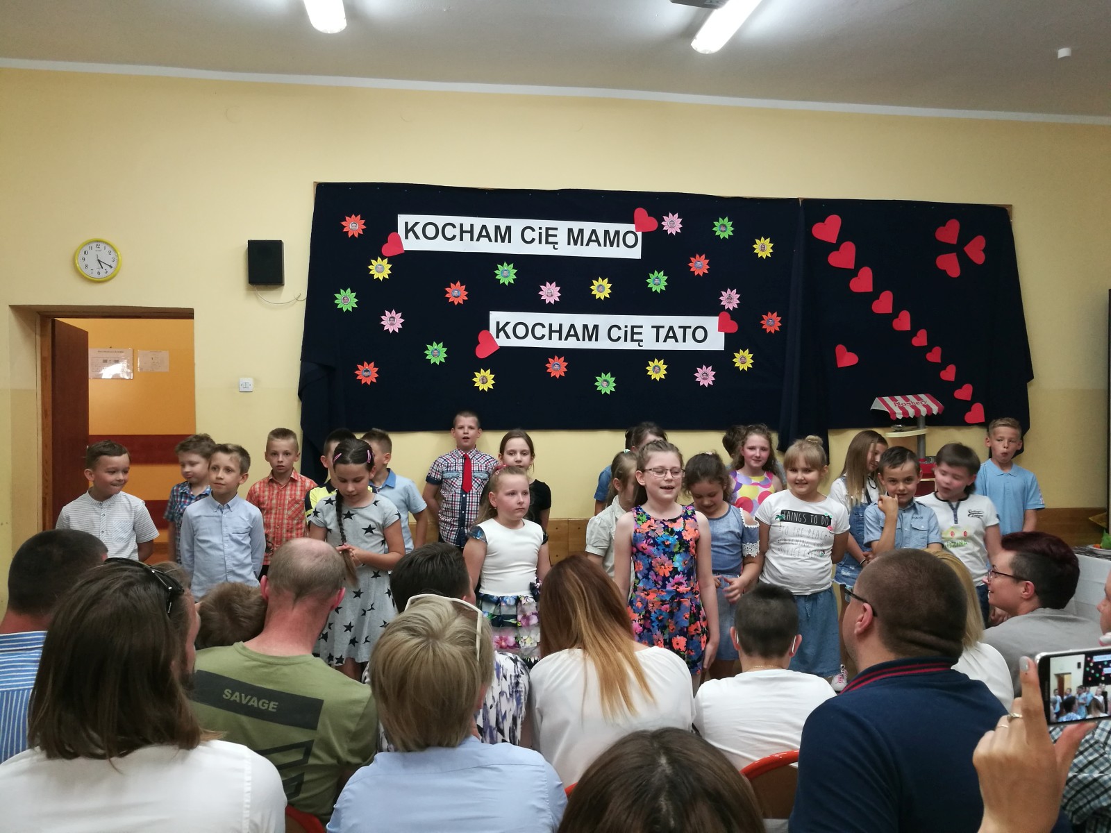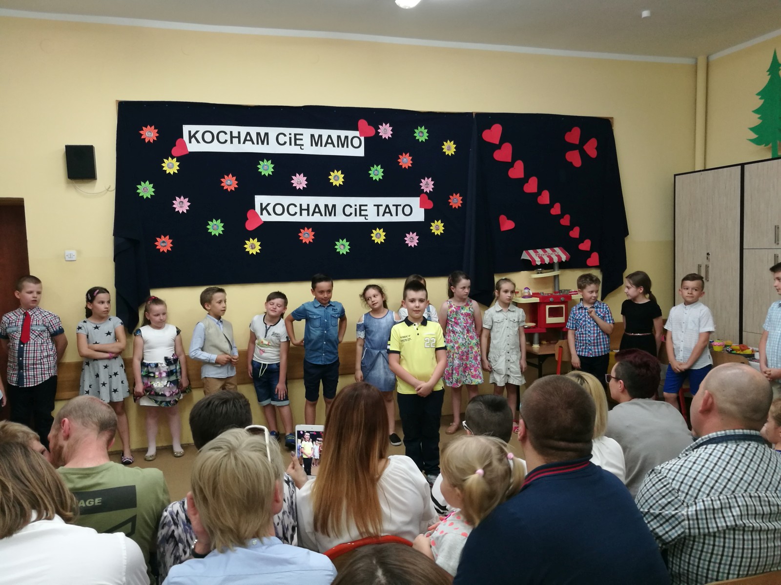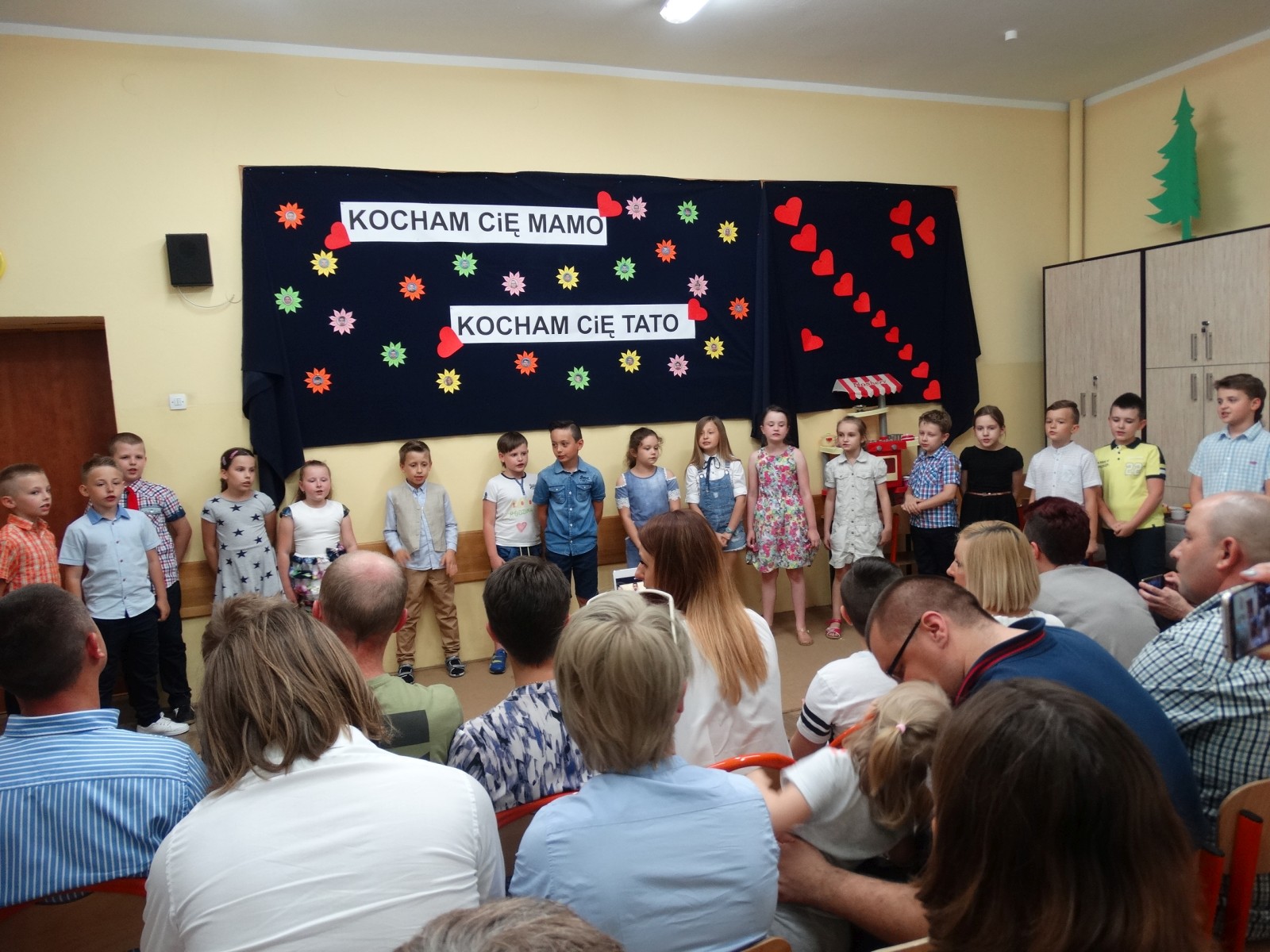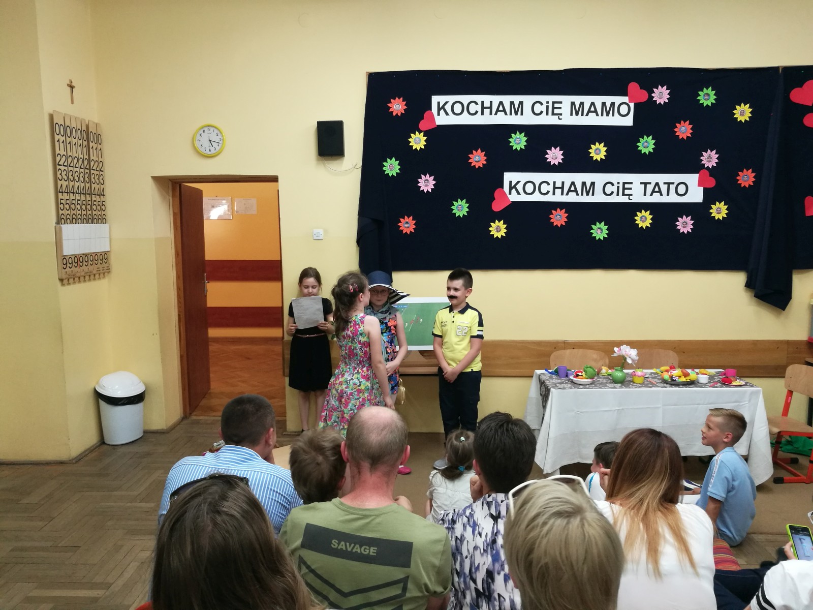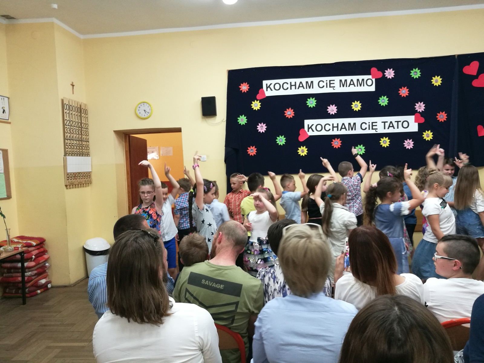 „KOCHAM CIĘ MAMO , KOCHAM CIĘ TATO” pod takim hasłem, w środę 31 maja w klasie 2e odbyła się uroczystość z okazji Dnia Mamy i Taty, na którą zostali zaproszeni rodzice. Uczniowie zaprezentowali się w montażu słowno-muzyczno-tanecznym. Wierszem, piosenką i tańcem podziękowali Rodzicom za dobroć, za miłość za to, że po prostu są. Na koniec uczniowie odegrali humorystyczną scenkę na temat „Rodzina na dobre i na złe” i wręczyli własnoręcznie przygotowane upominki. Po części artystycznej, na wszystkich gości i dzieci czekał słodki poczęstunek przygotowany przez mamy. Wspaniała uroczystość mogła się odbyć dzięki zaangażowaniu rodziców i uczniów.