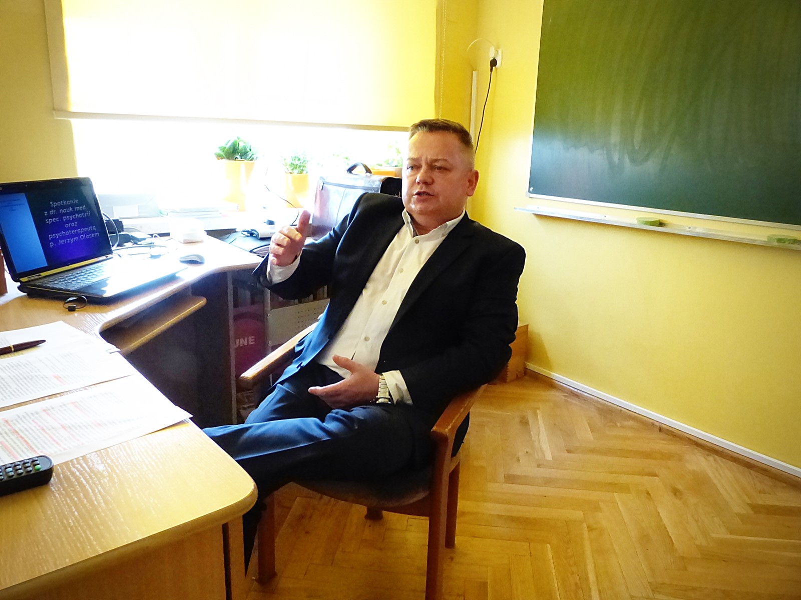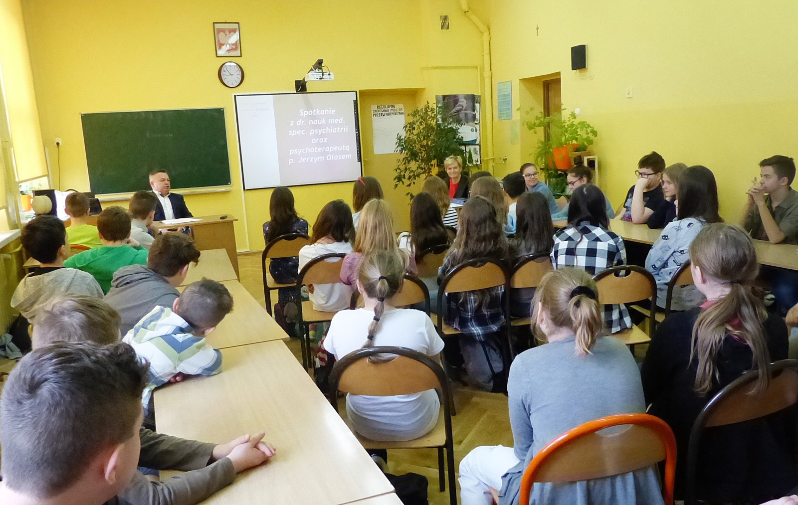 12 maja gościem w naszej szkole był dr nauk medycznych specjalista psychiatrii oraz psychoterapeuta Jerzy Olas, który prowadzi cykliczne warsztaty na tematy zdrowia psychicznego. W ostatnim spotkaniu uczestniczyli uczniowie klas szóstych wraz z nauczycielami. Tematem była depresja. Pan dr Jerzy Olas wprowadził w tajniki depresji, pomógł zrozumieć czym jest to zaburzenie i jak je rozpoznać. Uczniowie teraz już wiedzą, że częste bóle brzucha, zawroty głowy, zły nastrój, mogą być objawem depresji i powodem do zgłoszenia się do lekarza psychiatry. Pan doktor wskazał, że ważna w utrzymaniu równowagi psychicznej jest aktywność fizyczna i uregulowany rytm biologiczny.