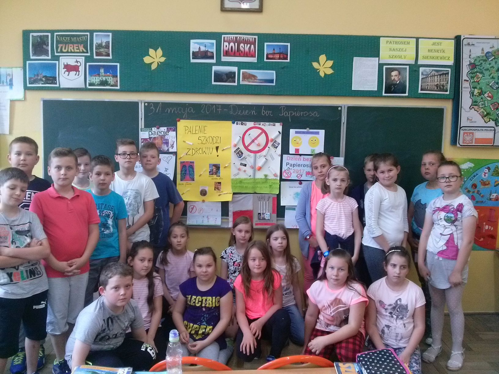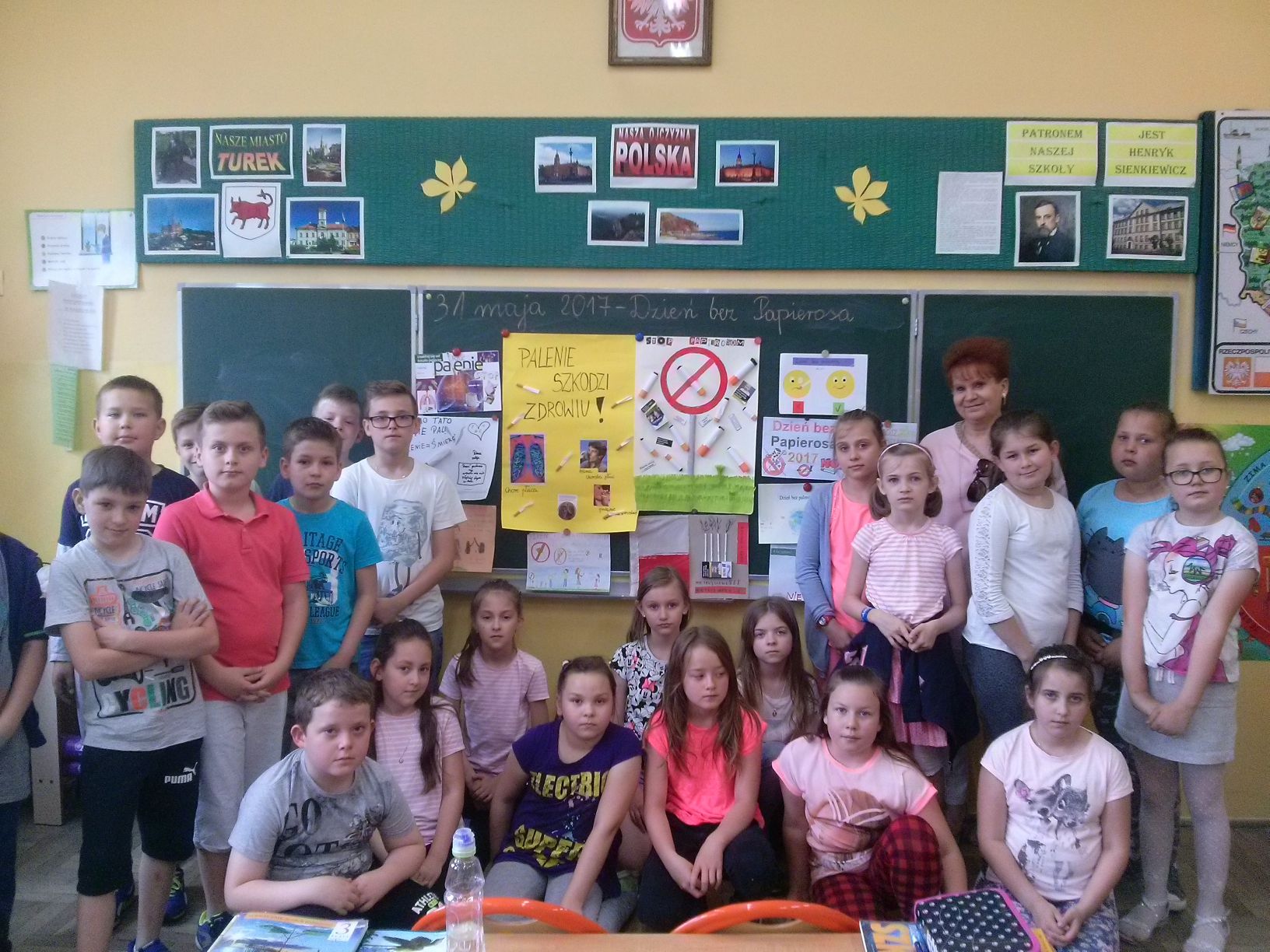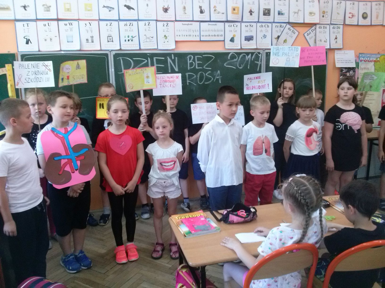 2 czerwca obchodziliśmy w naszej szkole Dzień bez Papierosa. Celem akcji było poszerzenie świadomości uczniów na temat zagrożeń związanych z paleniem papierosów. W klasach 1-3 odbyły się zajęcia, podczas których czytano wiersze, przeprowadzono pogadanki i rozdano ulotki tematyczne. Uczniowie aktywnie dzielili się spostrzeżeniami, a ich przemyślenia na temat szkodliwości palenia znalazły swój wyraz w interesujących pracach plastycznych, które zostały wyeksponowane na korytarzach. Każdy rodzic, odwiedzający naszą szkołę, może podziwiać prace i zastanowić się nad potrzebą rzucenia palenia.