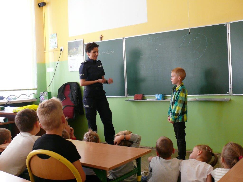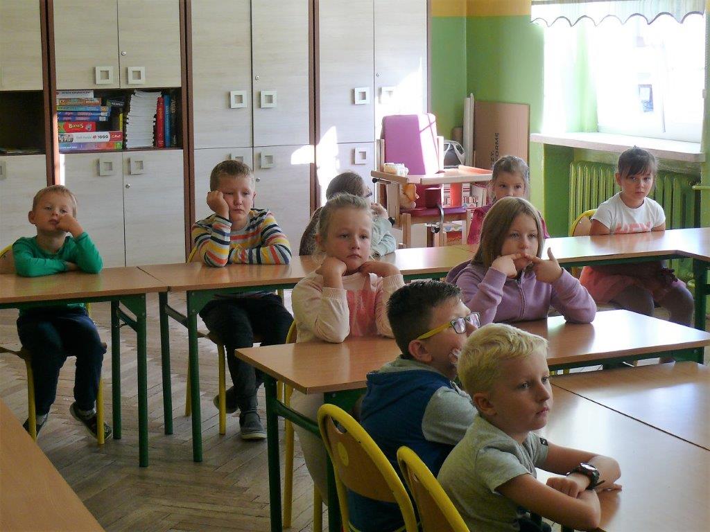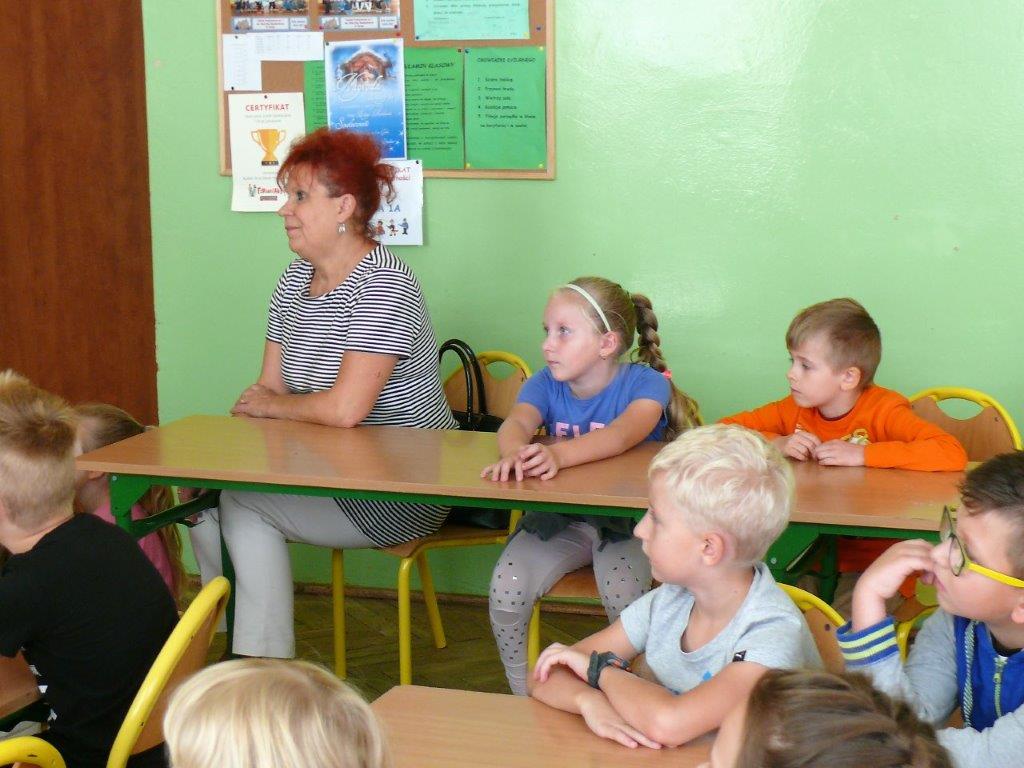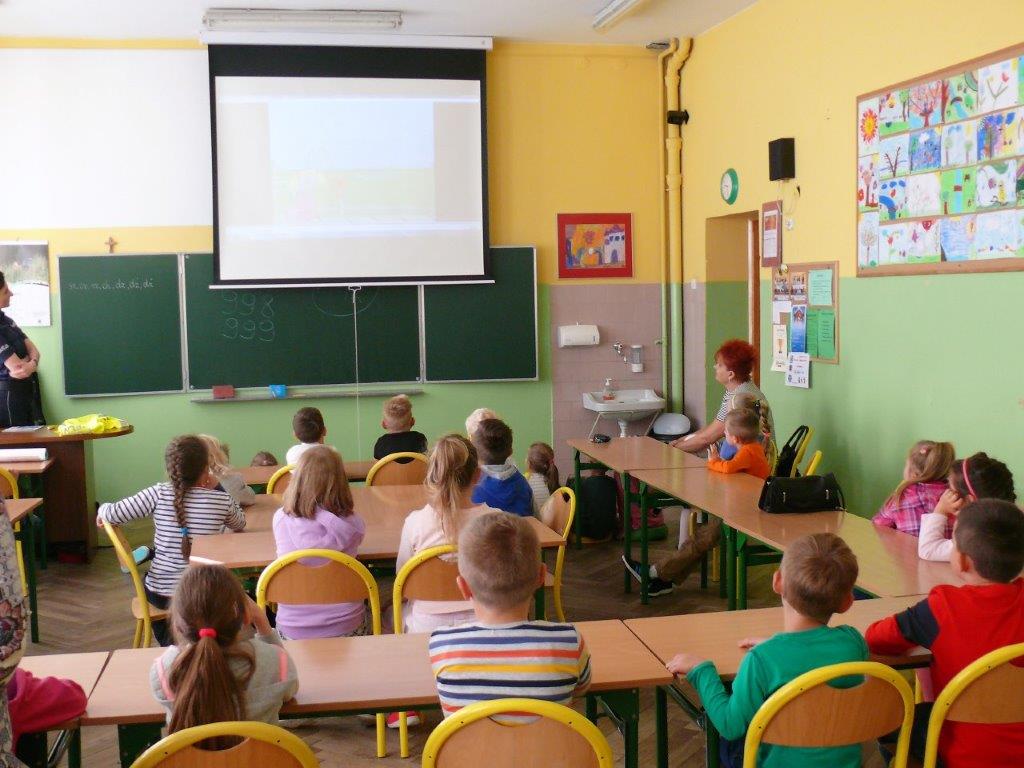 Natomiast w dniu 19 września 2017r. asp. Dorota Grzelka przeprowadziła wśród uczniów klas pierwszych pogadankę na temat „Bezpieczeństwo dzieci w szkole i poza szkołą”. Pierwszaki obejrzały również film , który ukazywał prawidłowe i nieprawidłowe zachowania dzieci. Po tych zajęciach pierwszoklasiści są bardziej świadomi i wiedzą jak się zachować w rozmaitych sytuacjach. Koordynatorem zajęć był pedagog szkolny Bogumiła Frątczak.
