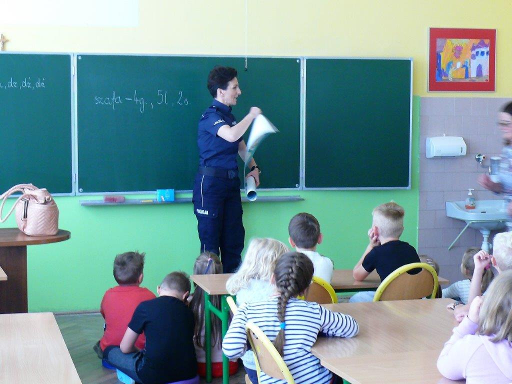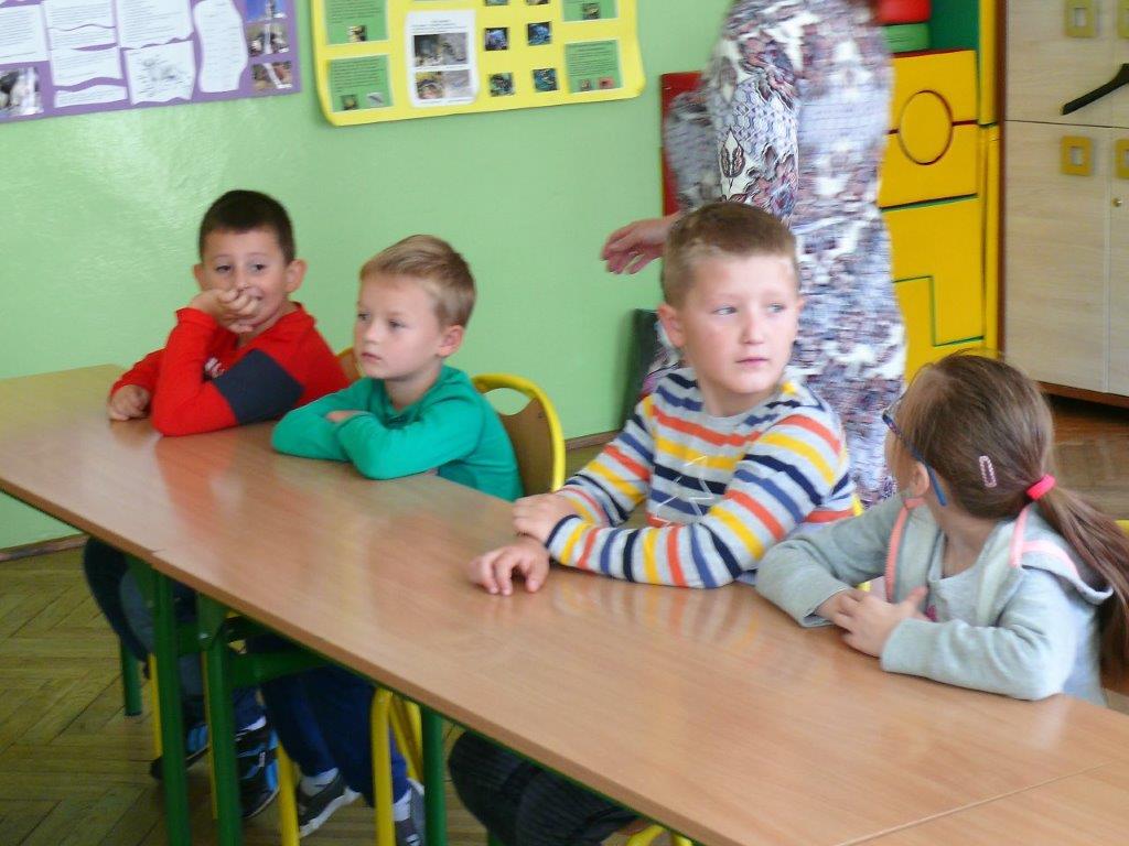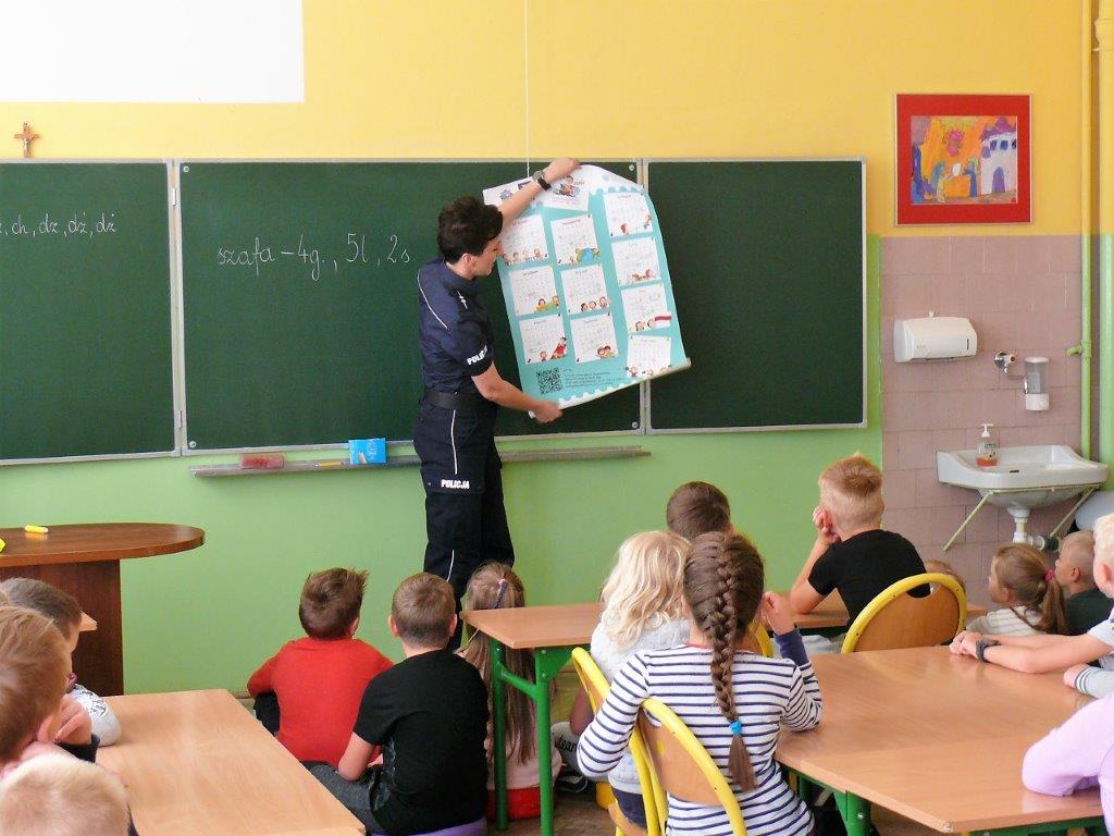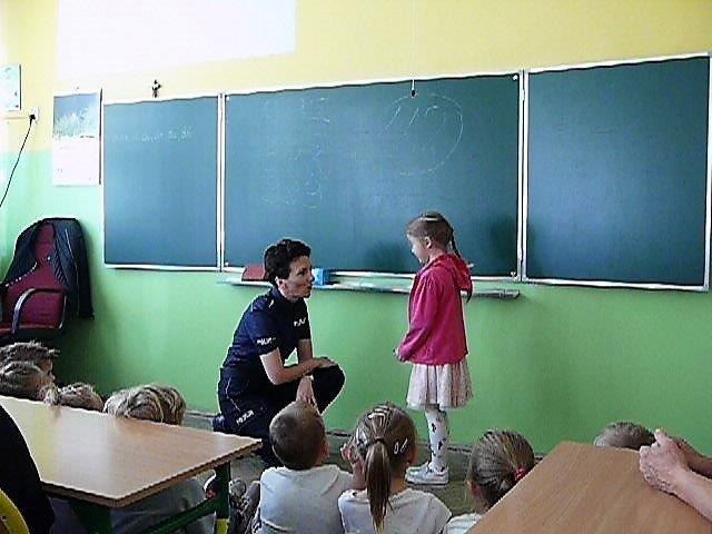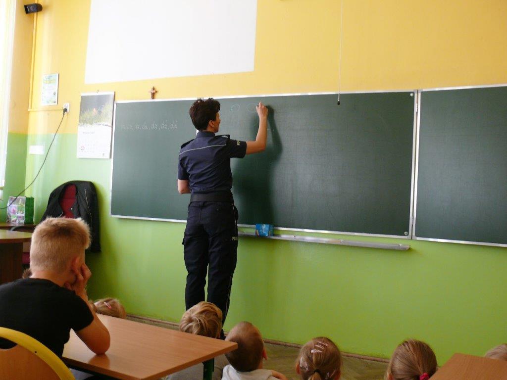 Natomiast w dniu 19 września 2017r. asp. Dorota Grzelka przeprowadziła wśród uczniów klas pierwszych pogadankę na temat „Bezpieczeństwo dzieci w szkole i poza szkołą”. Pierwszaki obejrzały również film , który ukazywał prawidłowe i nieprawidłowe zachowania dzieci. Po tych zajęciach pierwszoklasiści są bardziej świadomi i wiedzą jak się zachować w rozmaitych sytuacjach. Koordynatorem zajęć był pedagog szkolny Bogumiła Frątczak.