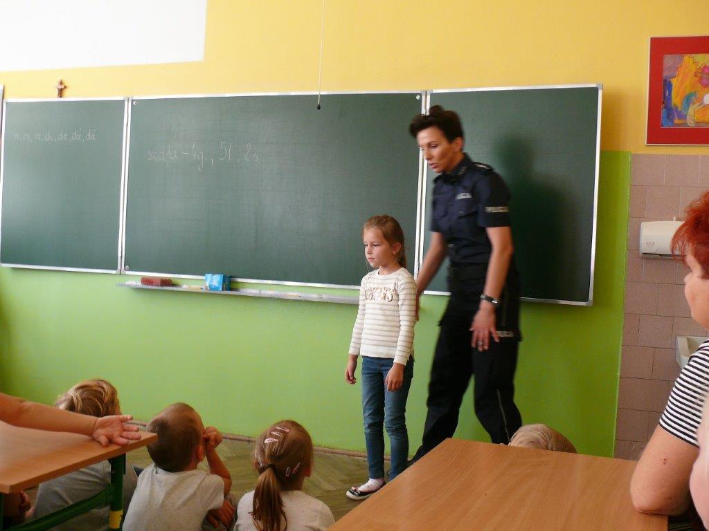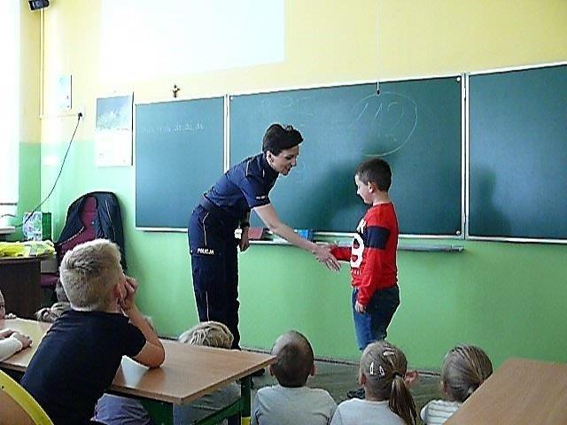 Ponadto policjanci st.asp. Bartłomiej Białas, mł.asp. Marzena Kwaśny i mł.asp. Robert Rojak przeprowadzili wśród pierwszaków quiz na temat wiedzy z zakresu bezpieczeństwa. Dzieci po odgadnięciu pytań otrzymywały nagrody w postaci elementów odblaskowych.