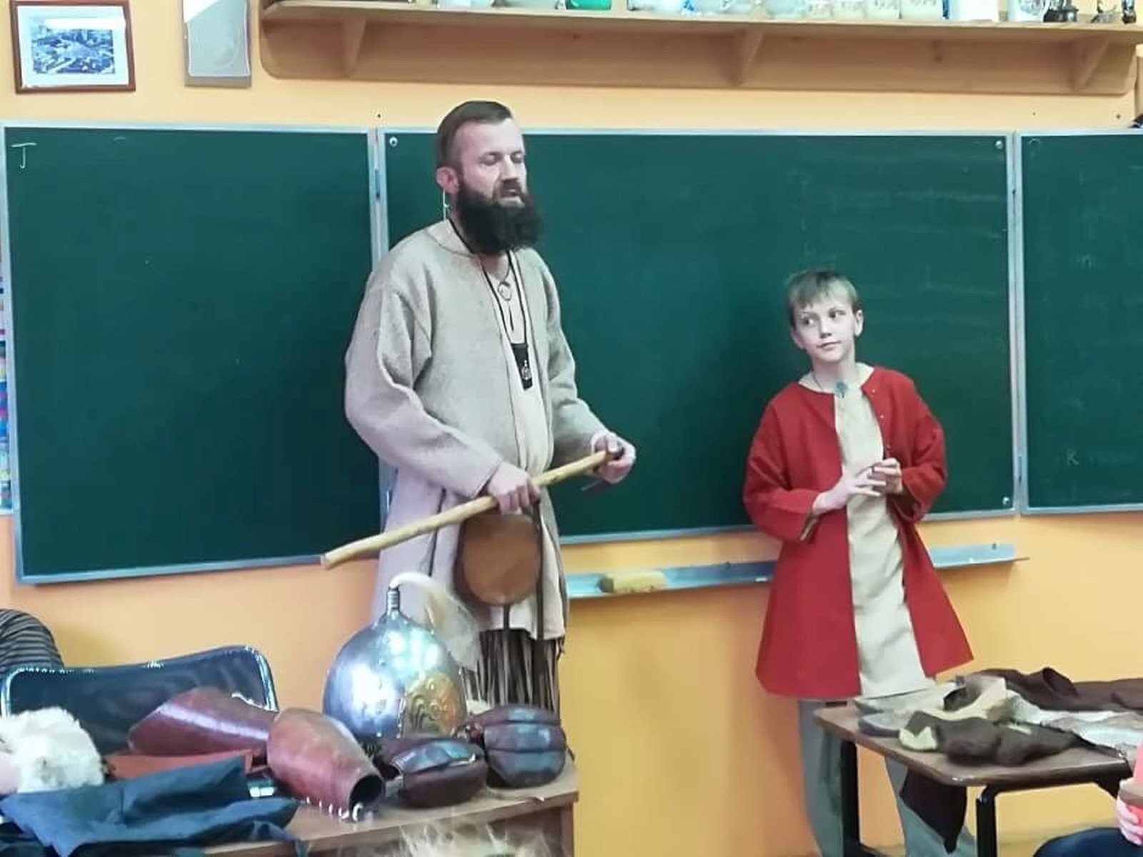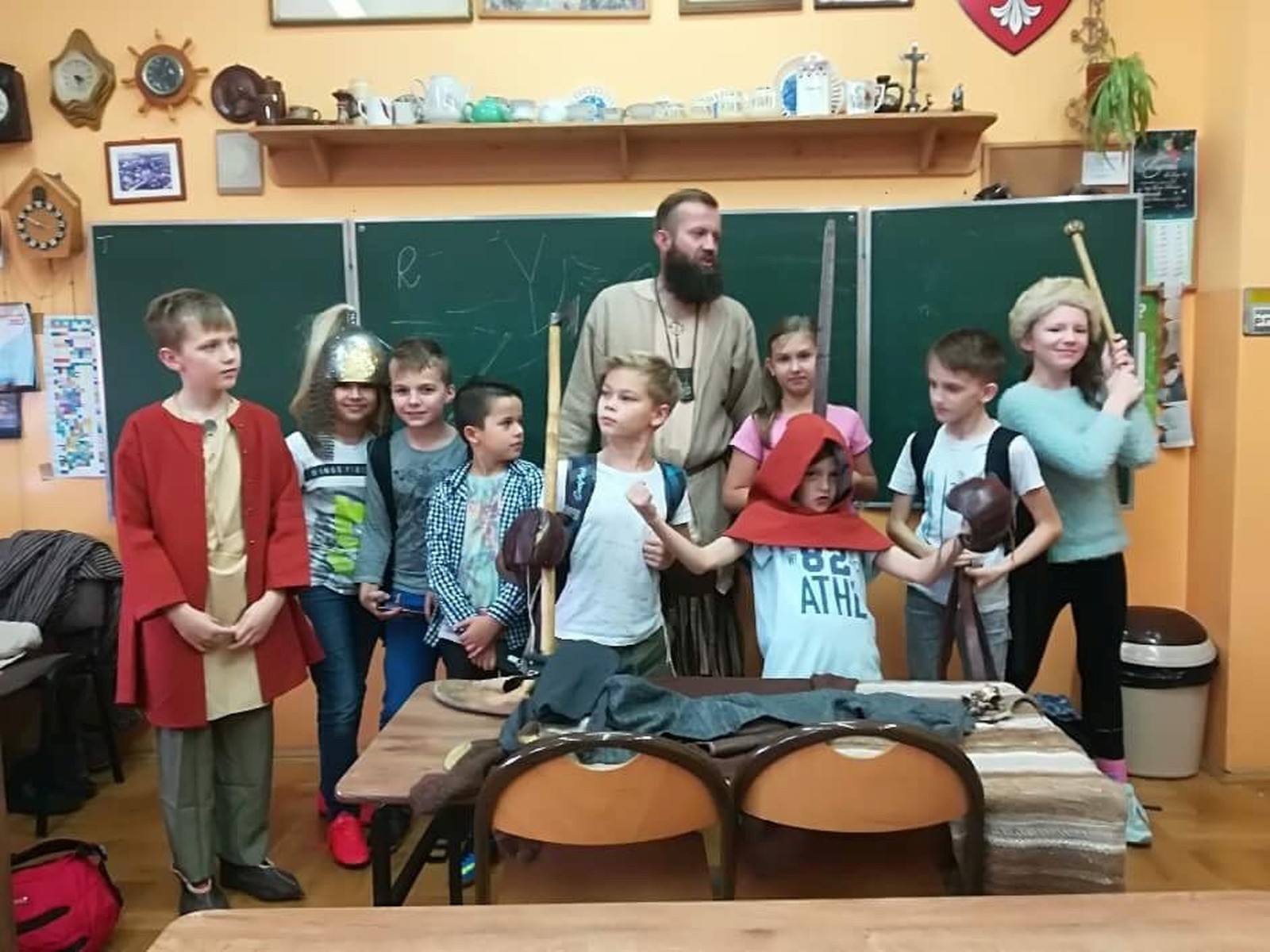 Dnia 20 października 2017 roku klasa 4b Szkoły Podstawowej nr 1 w Turku przeniosła się do czasów wczesnego średniowiecza. Pan Miłosz Rabiega przedstawił uczniom życie codzienne w czasach pierwszych Piastów. Wraz ze swoim synem omówili więzi rodzinne jakie panowały w tamtych czasach, a także pokazali dzieciom jakie ubrania nosili ludzie średniowiecza. Uczniowie mieli okazję zobaczyć i dotknąć lnianą koszulę, skórzany pasek, a także przymierzyć trzewiki. Dzieci również obejrzały broń i narzędzia ówczesnych czasów. Byli też śmiałkowie, którzy bardzo chcieli rozpalić ogień krzemieniem;) Była to bardzo ciekawa lekcja historii, przedstawiająca korzenie naszej polskości.